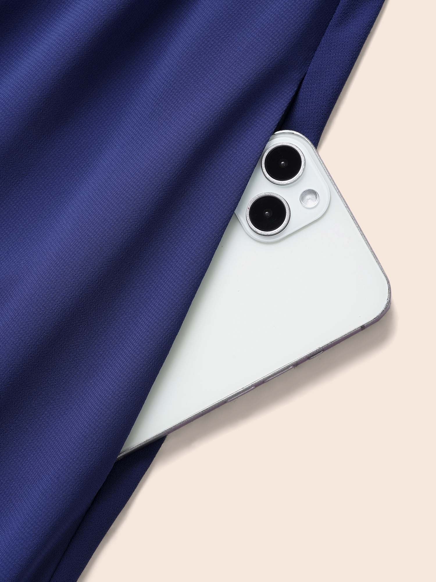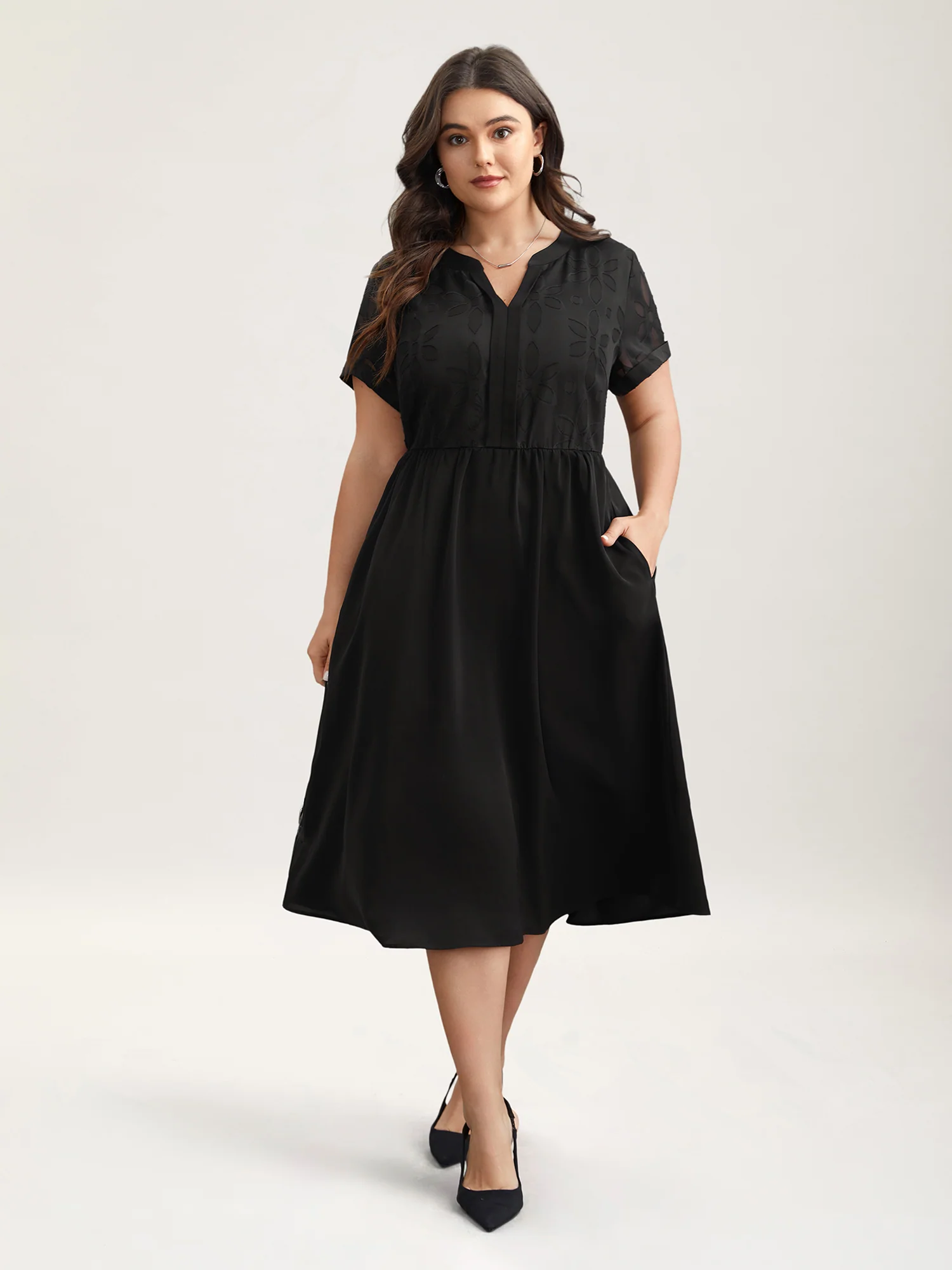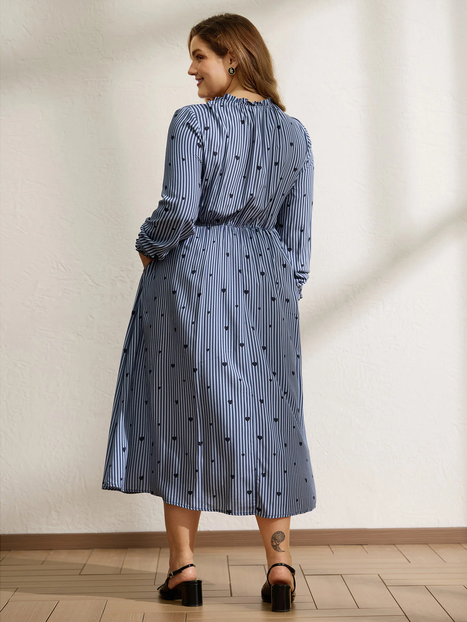 Stretchy Waist Frill Trim Pockets Midi Dress