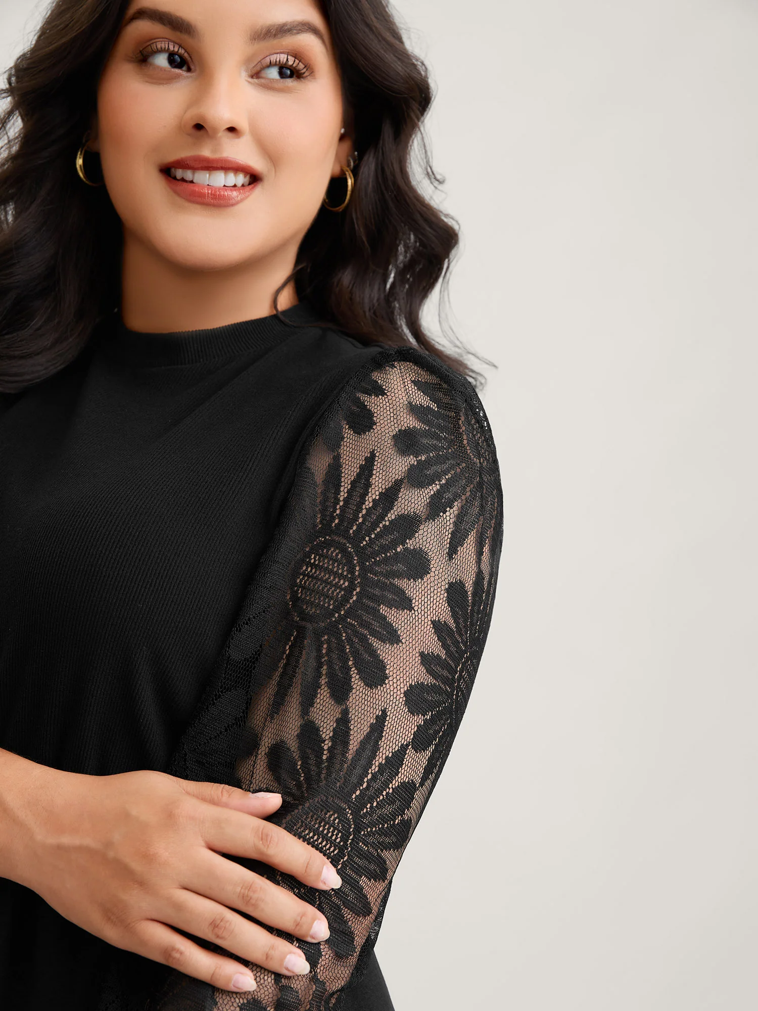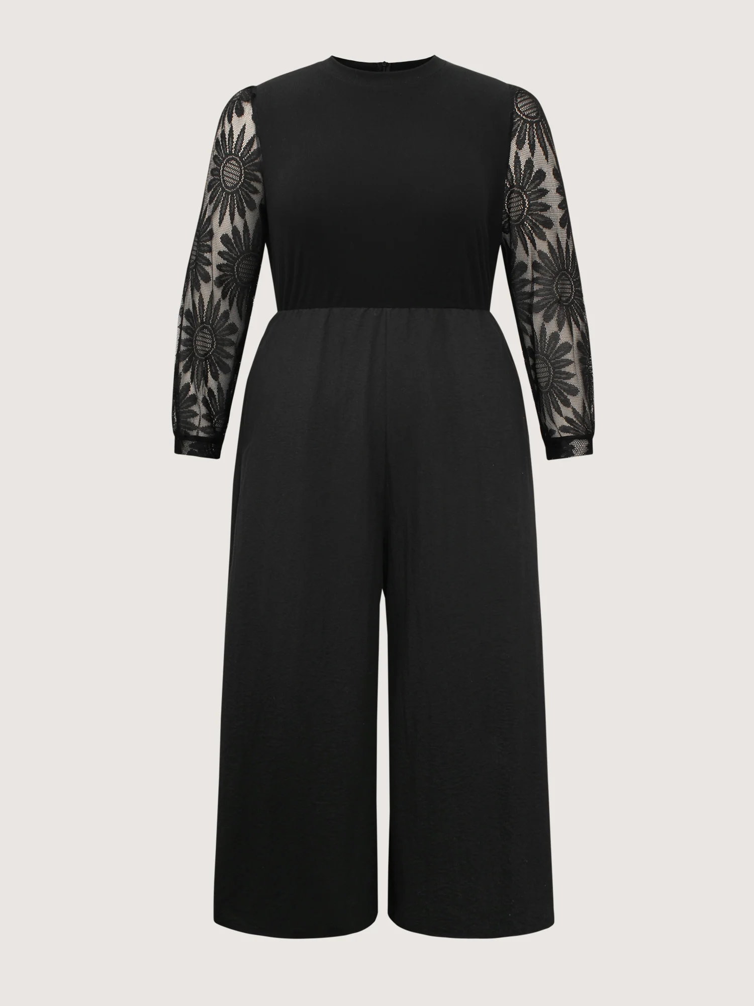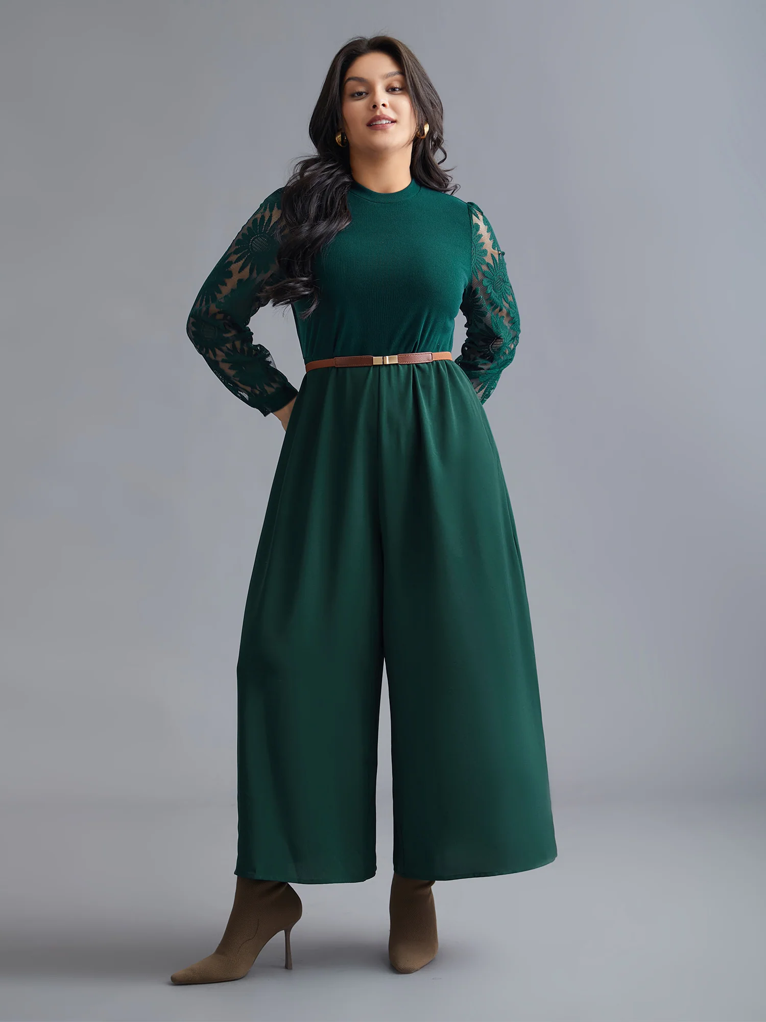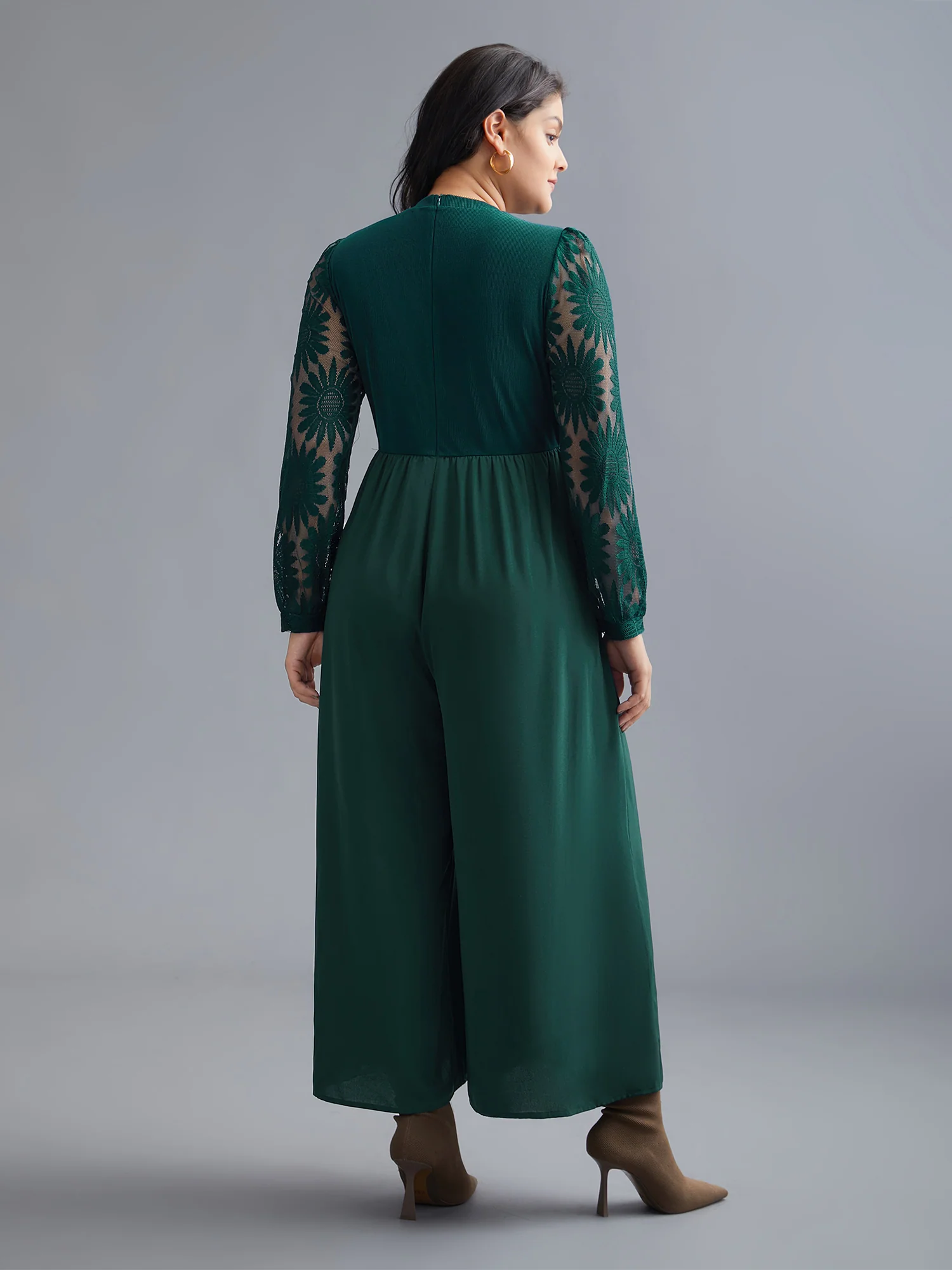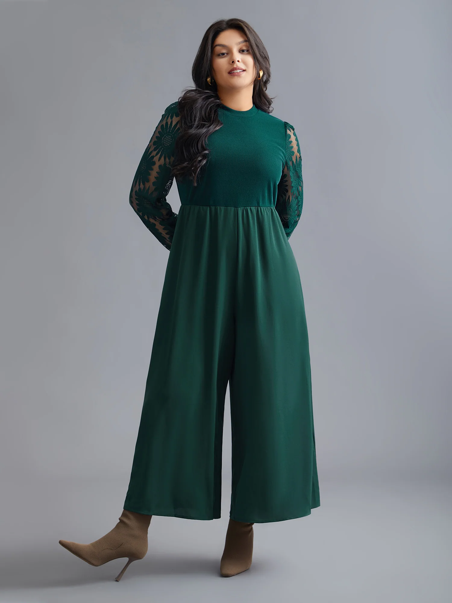 Crochet Lace Mesh Mock Neck Jumpsuit