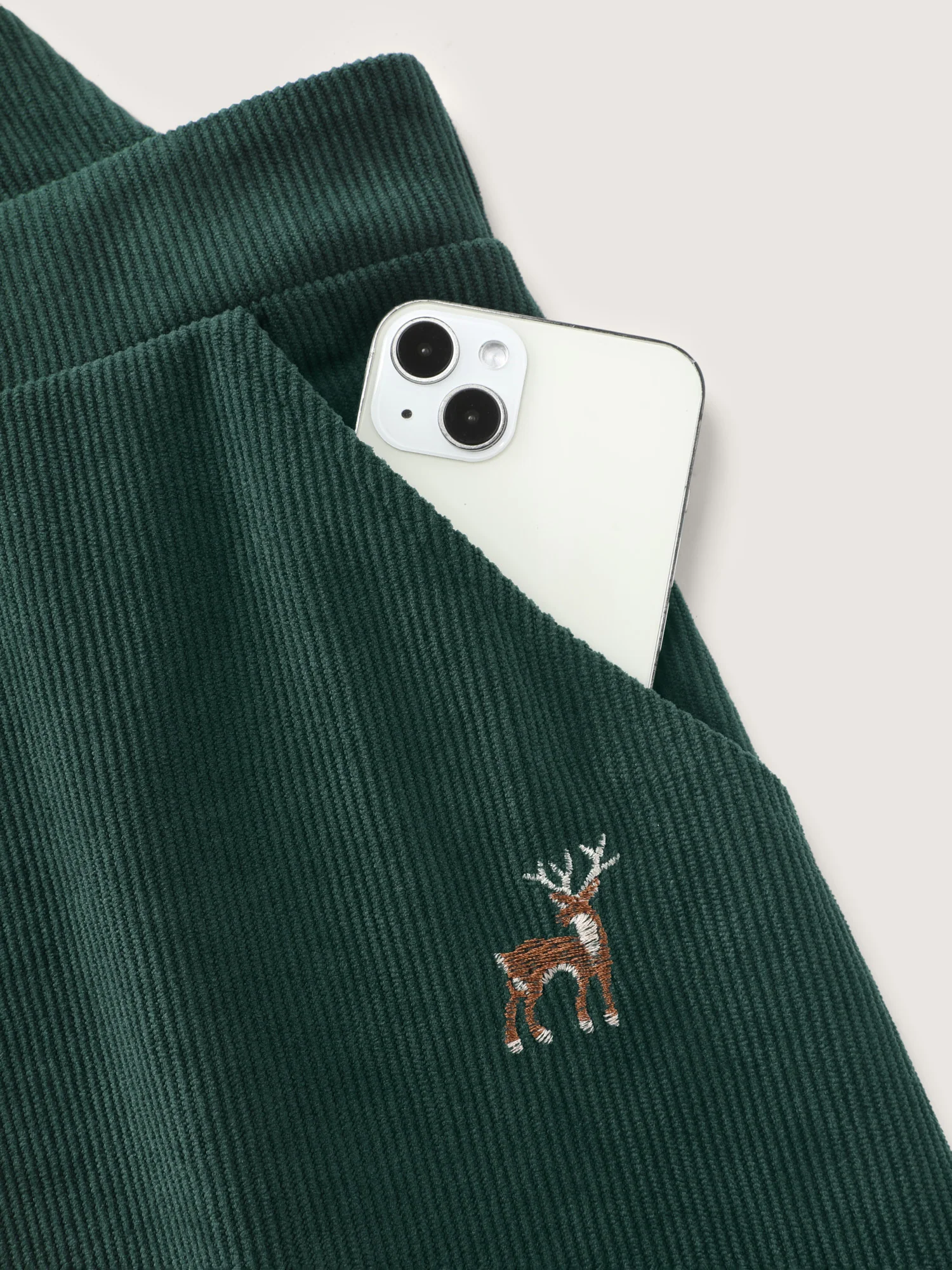 Corduroy Embroidered Adjustable Straps Knee Dress