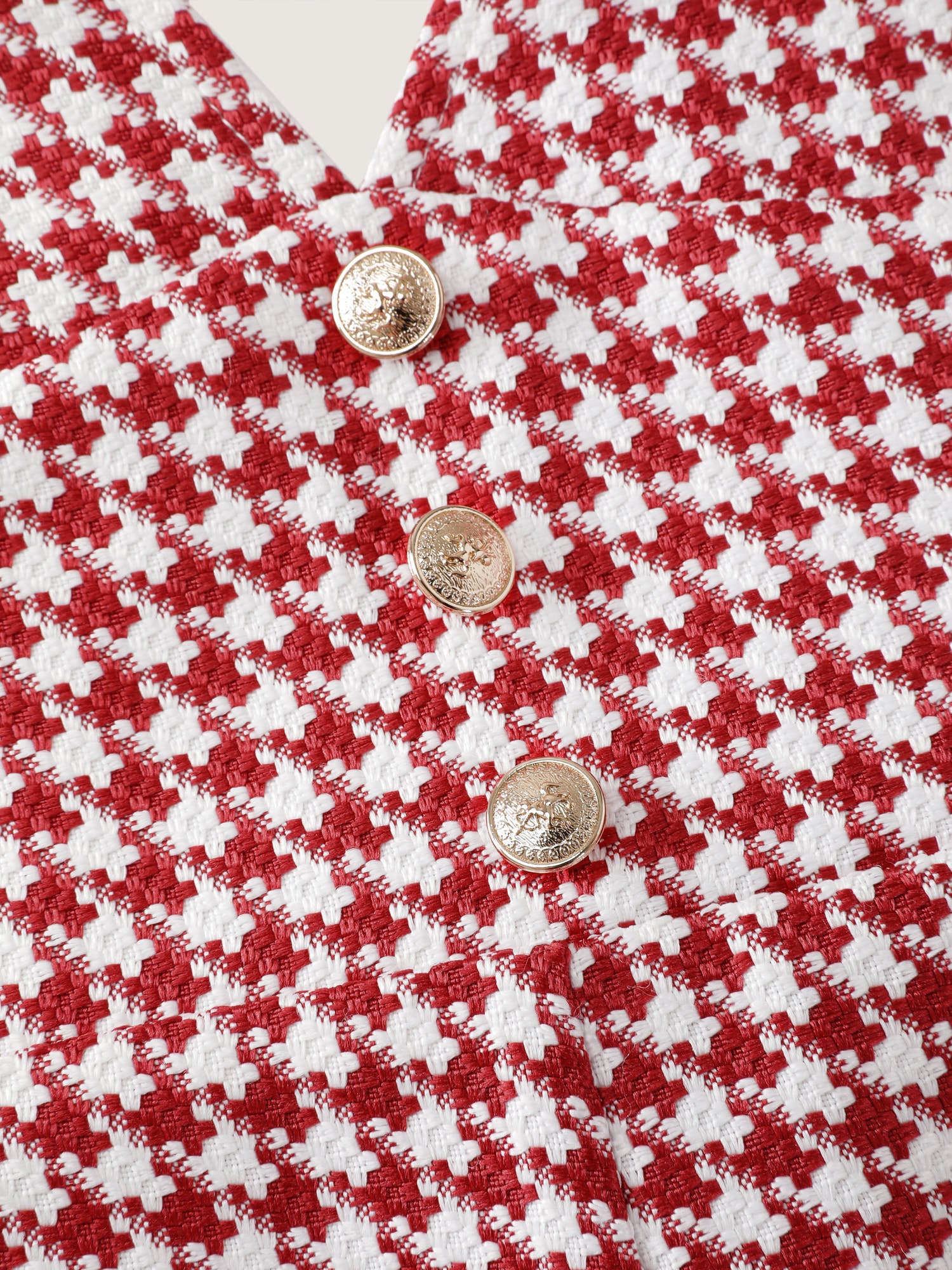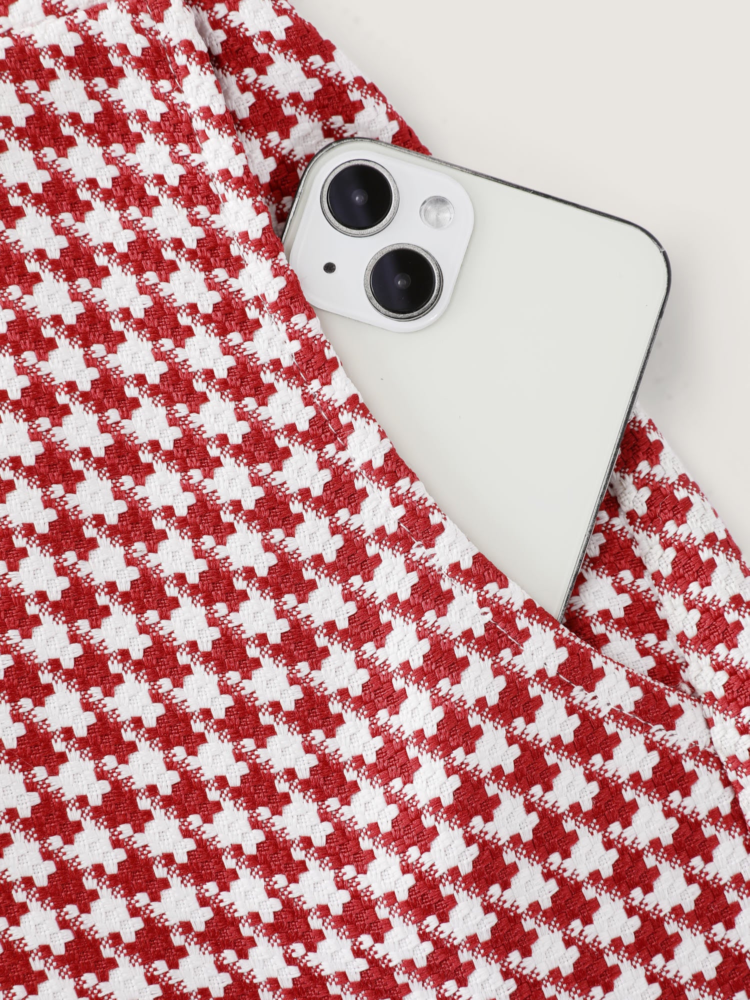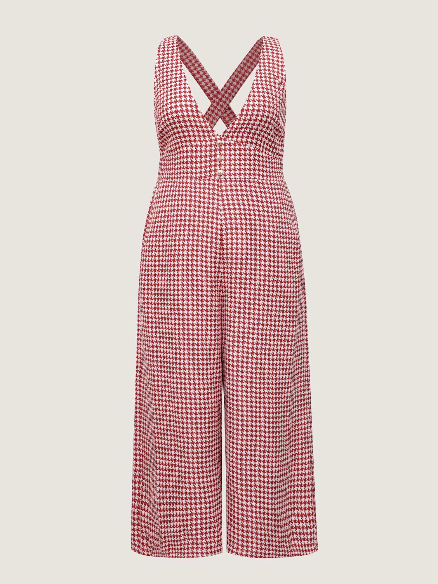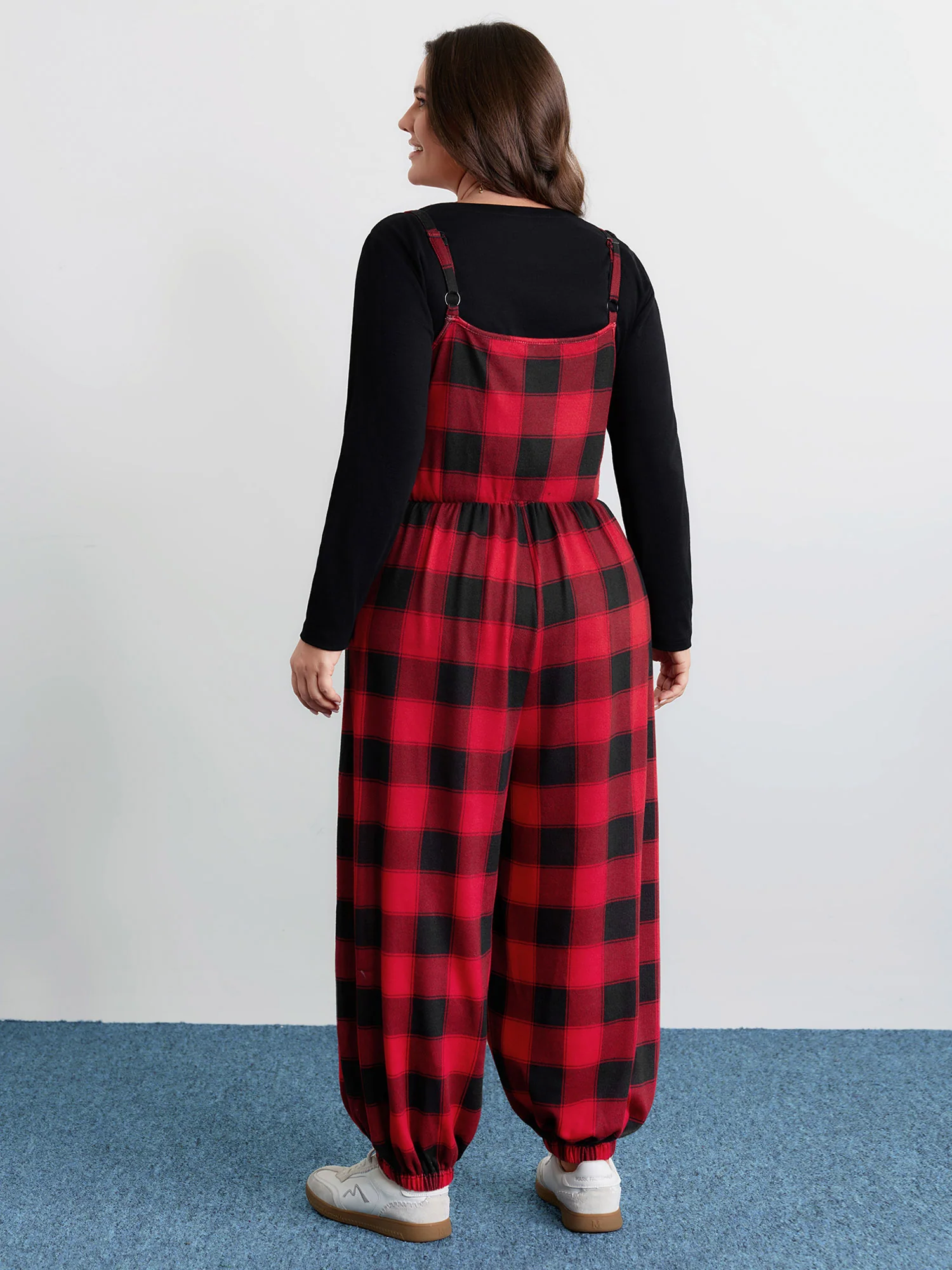 Checkered Shirred Drawstring Pockets Jumpsuit