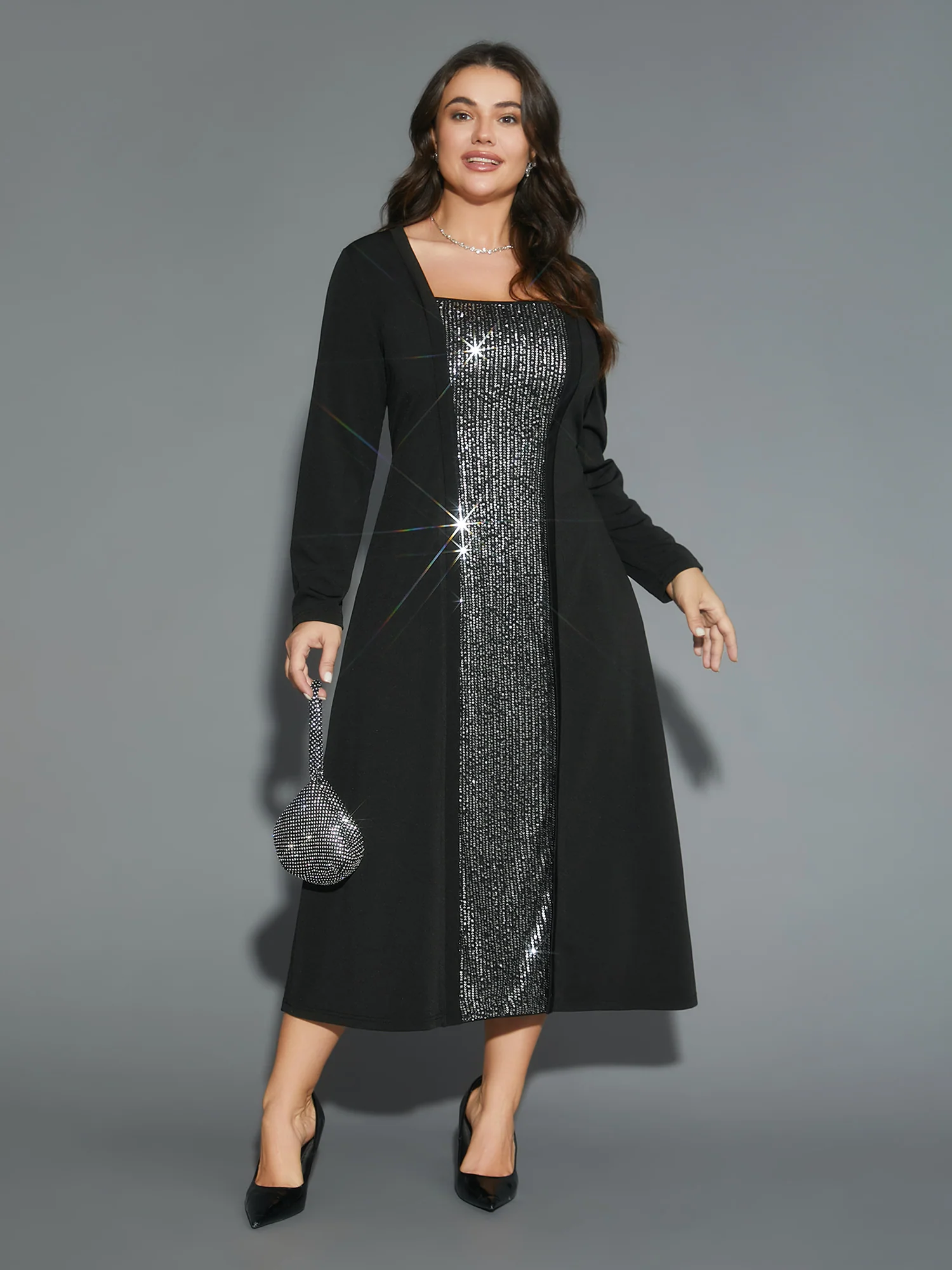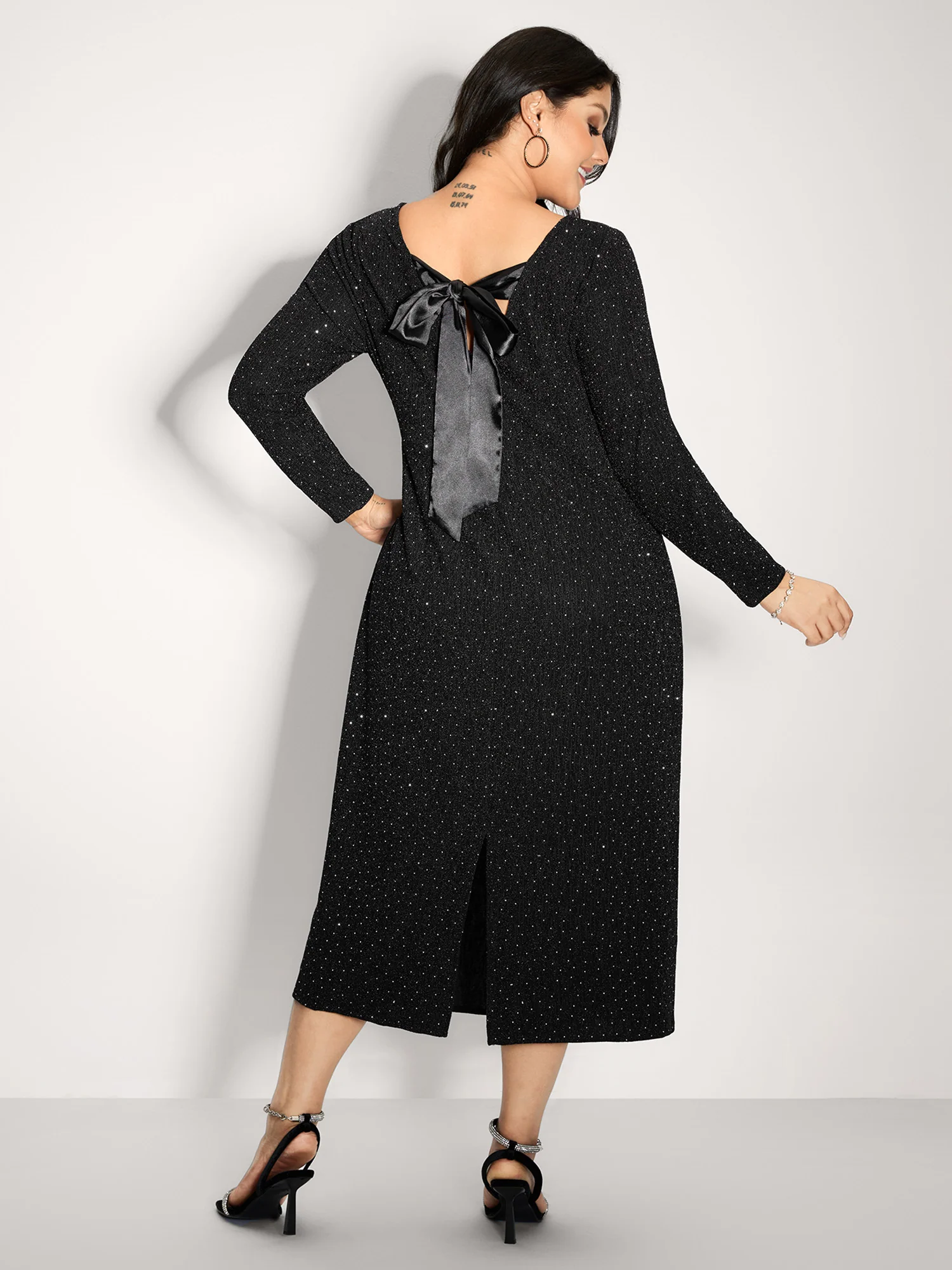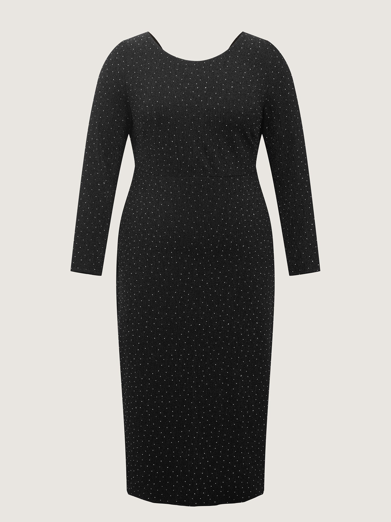 Shimmery Hotfix Rhinestone Layered Midi Dress