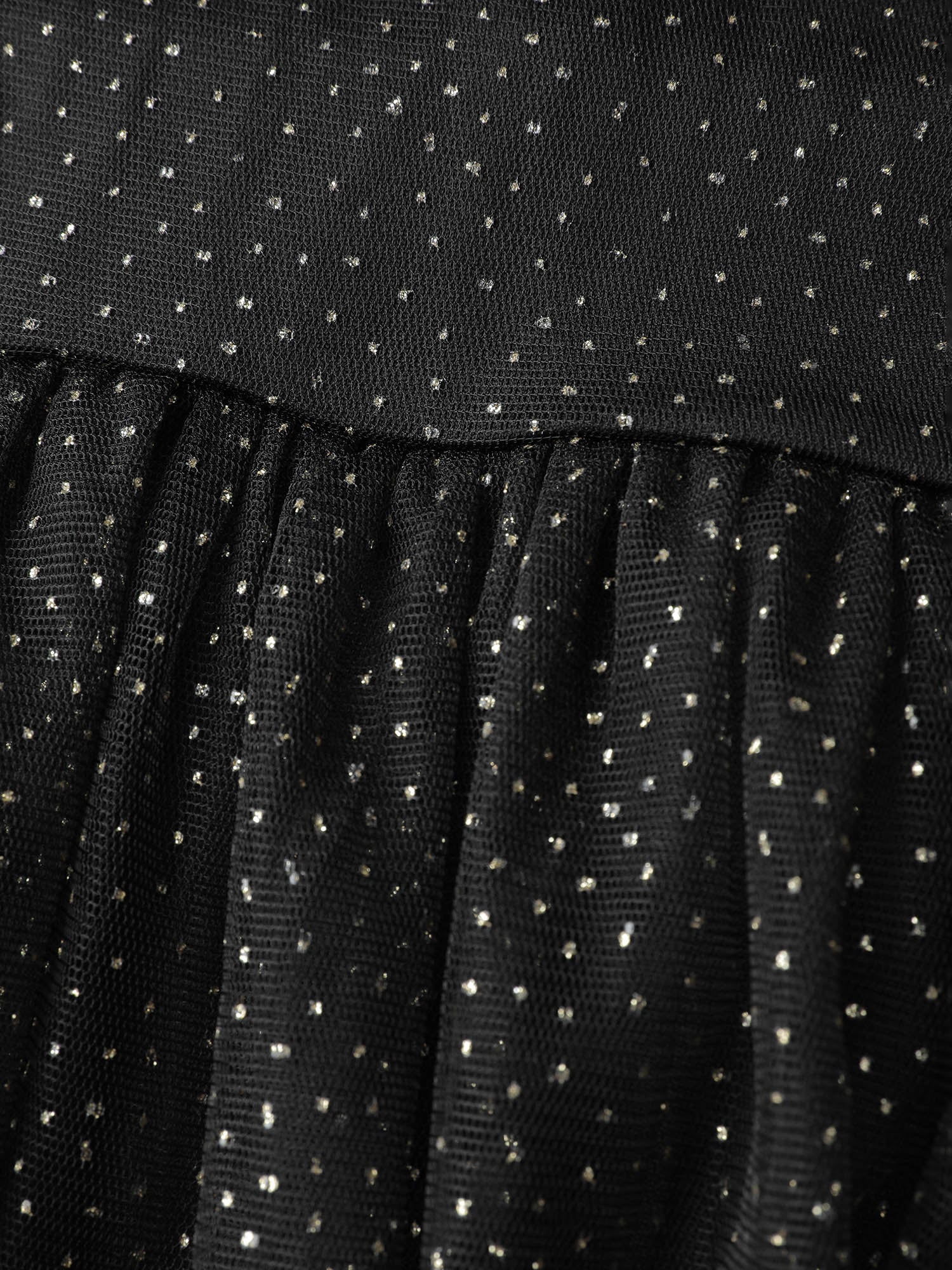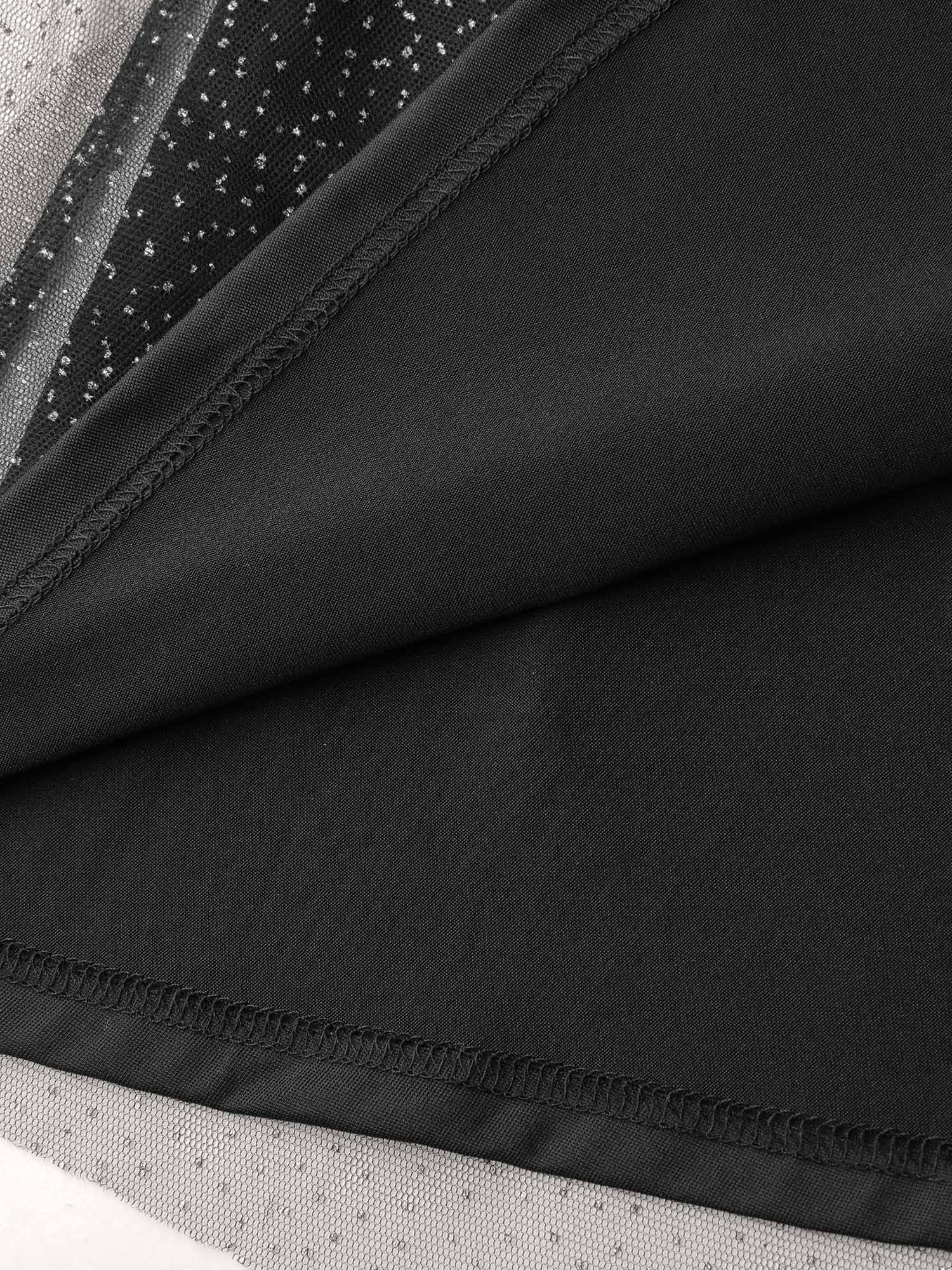 Rhinestone Ruffle Sleeve Mesh Patchwork Dress