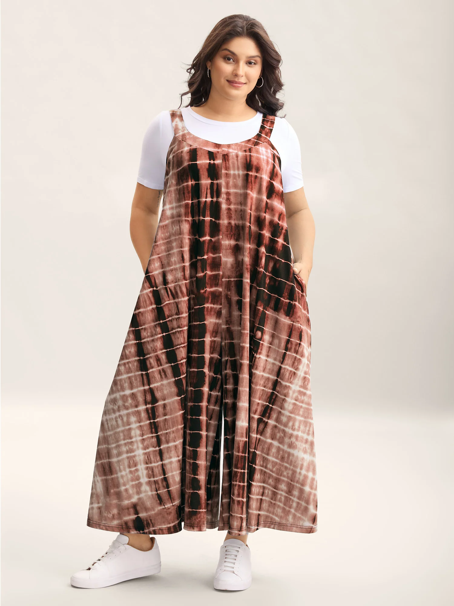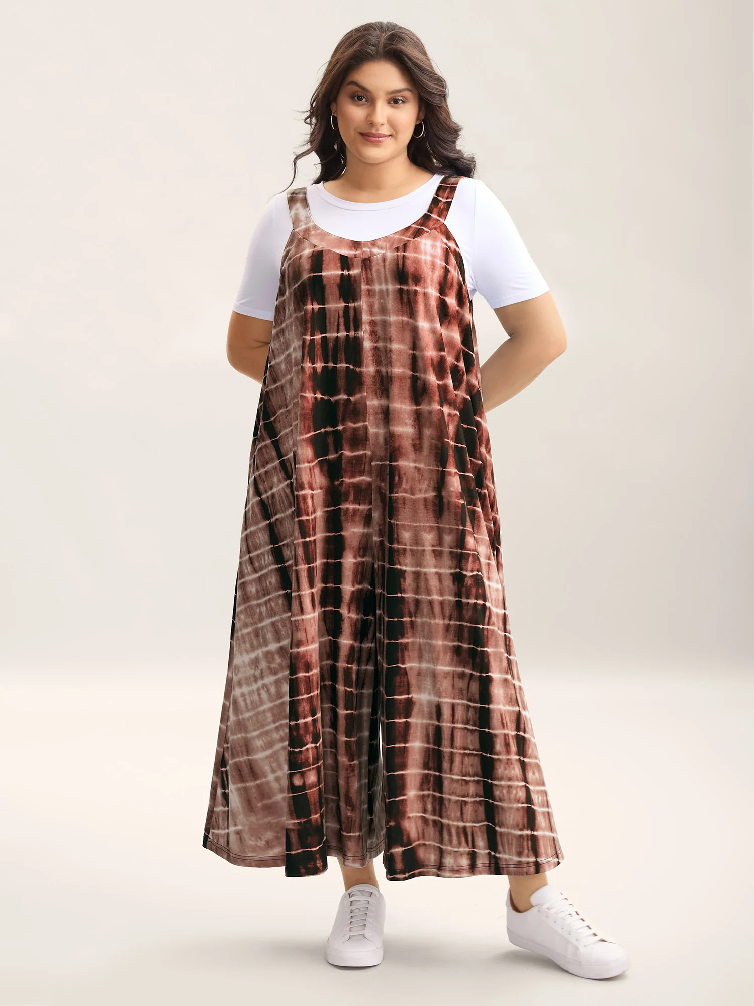 Rayon Damask Print Stretchy Waist Jumpsuit