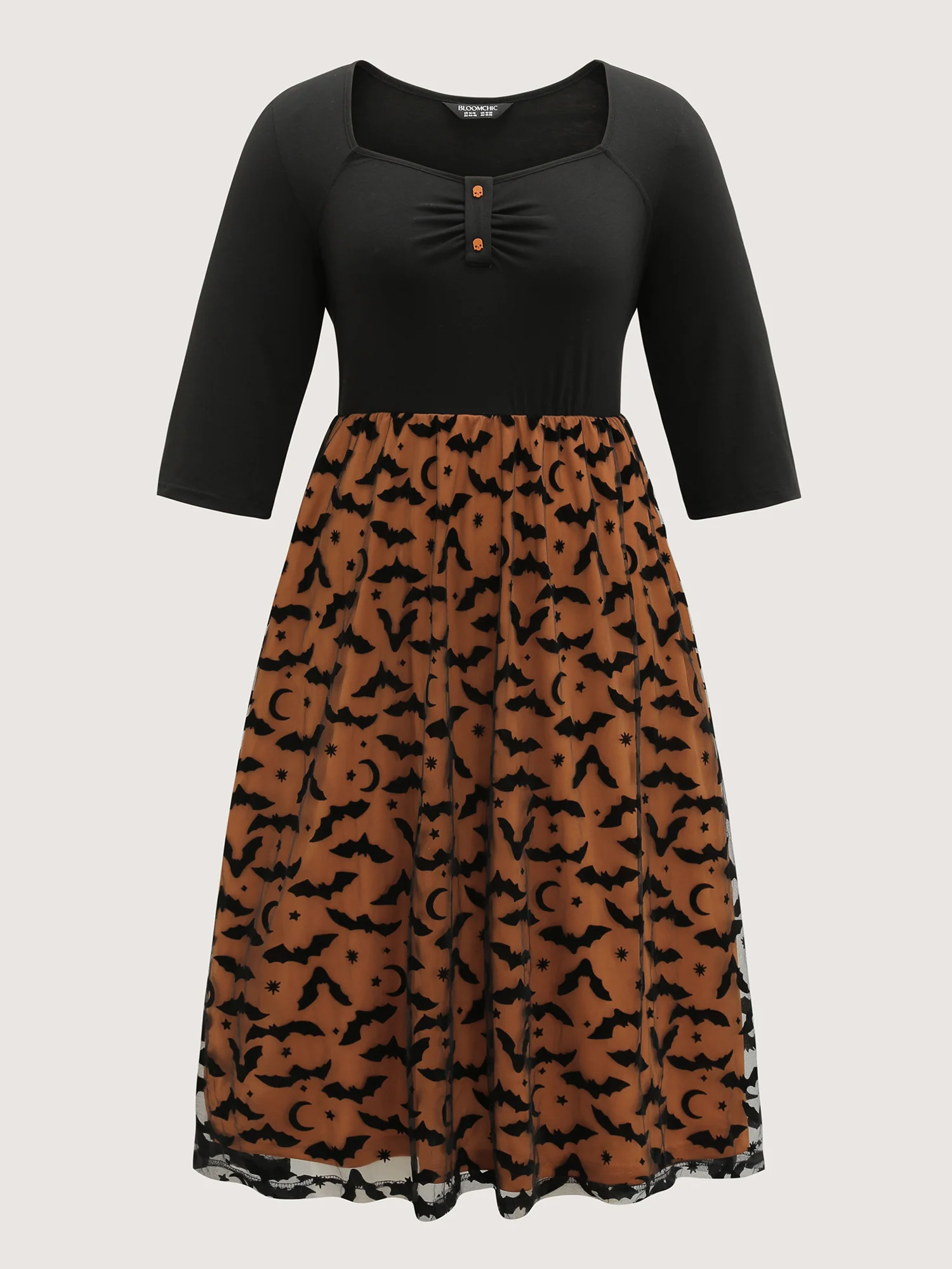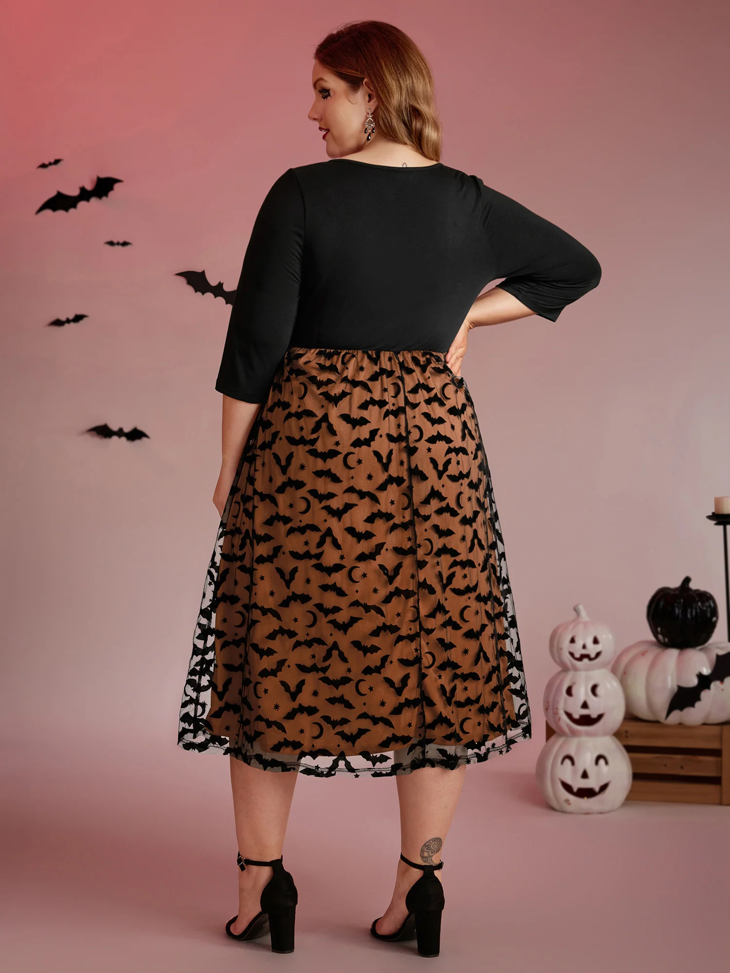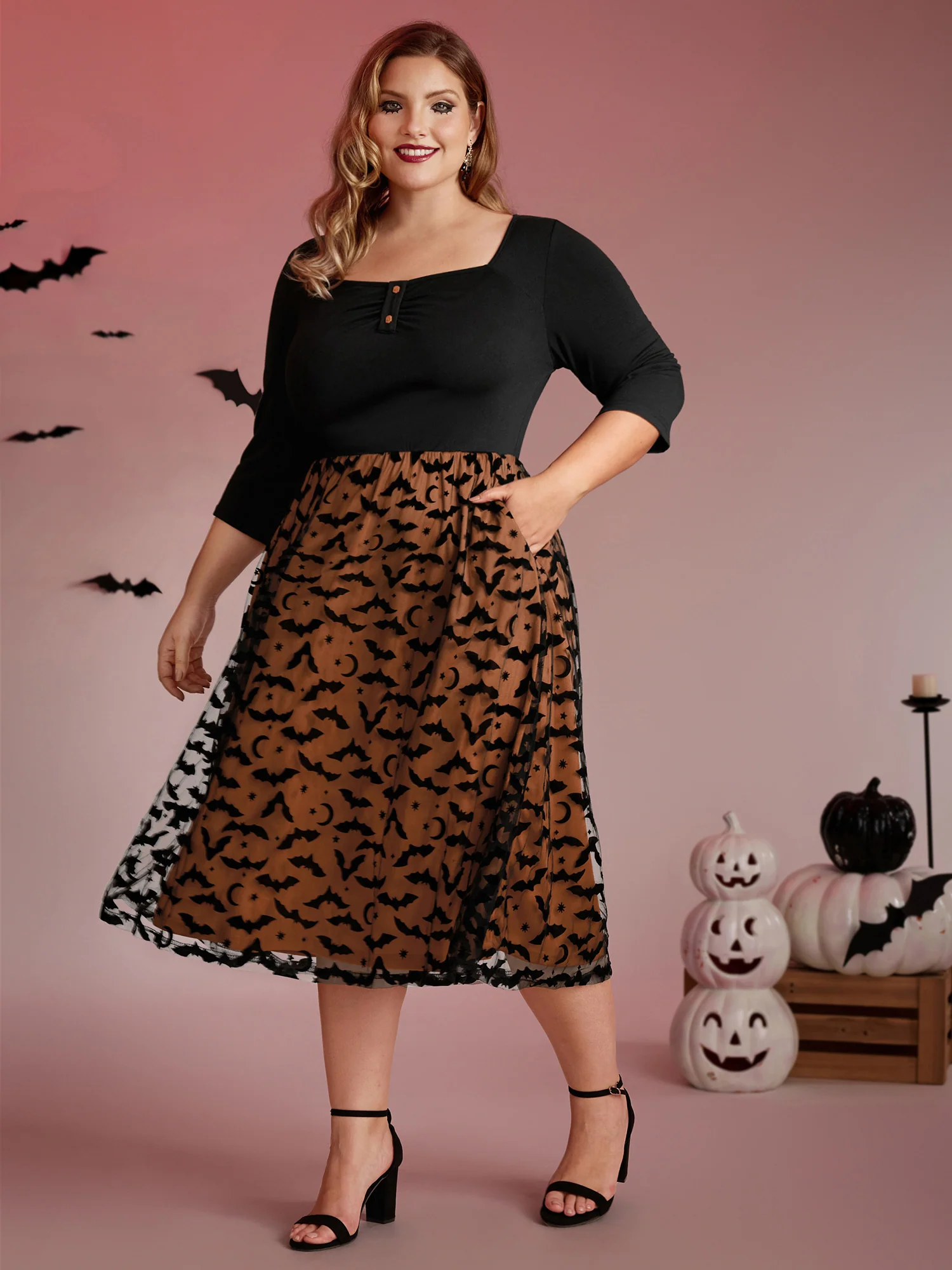 Bats Print Halloween Sheer Pockets Maxi Dress
