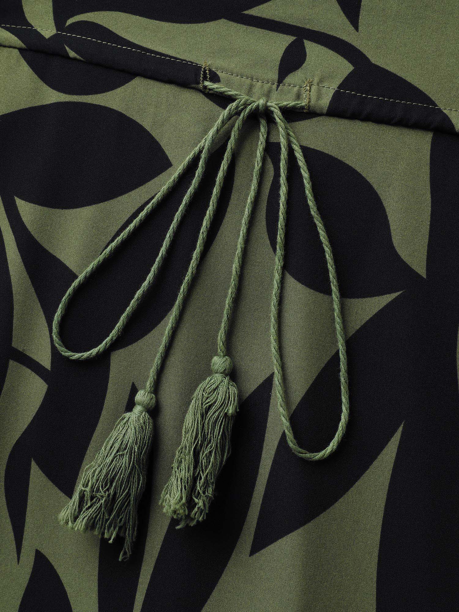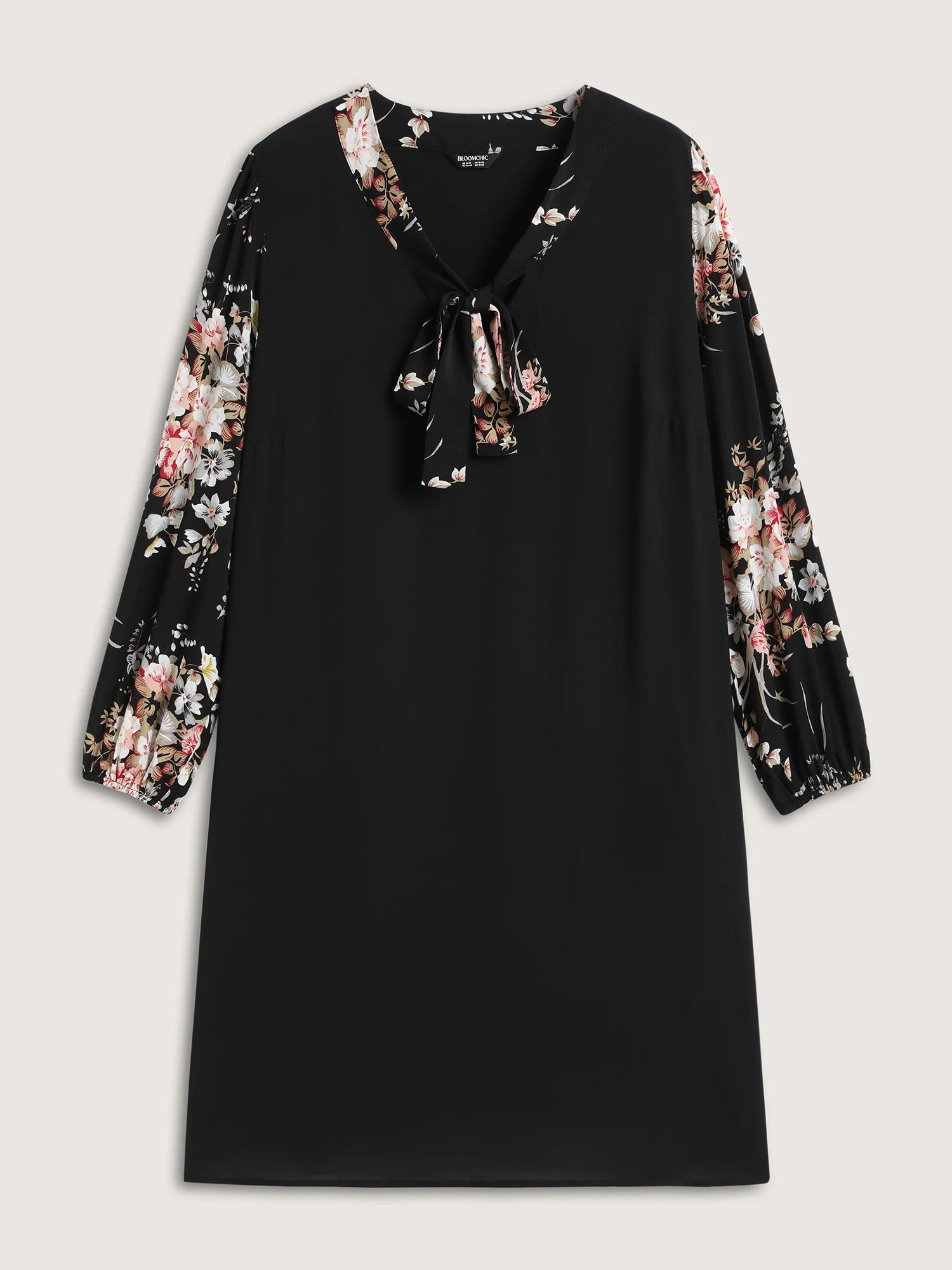 Boho Print Tie Knot Shirred Lantern Sleeve Dress