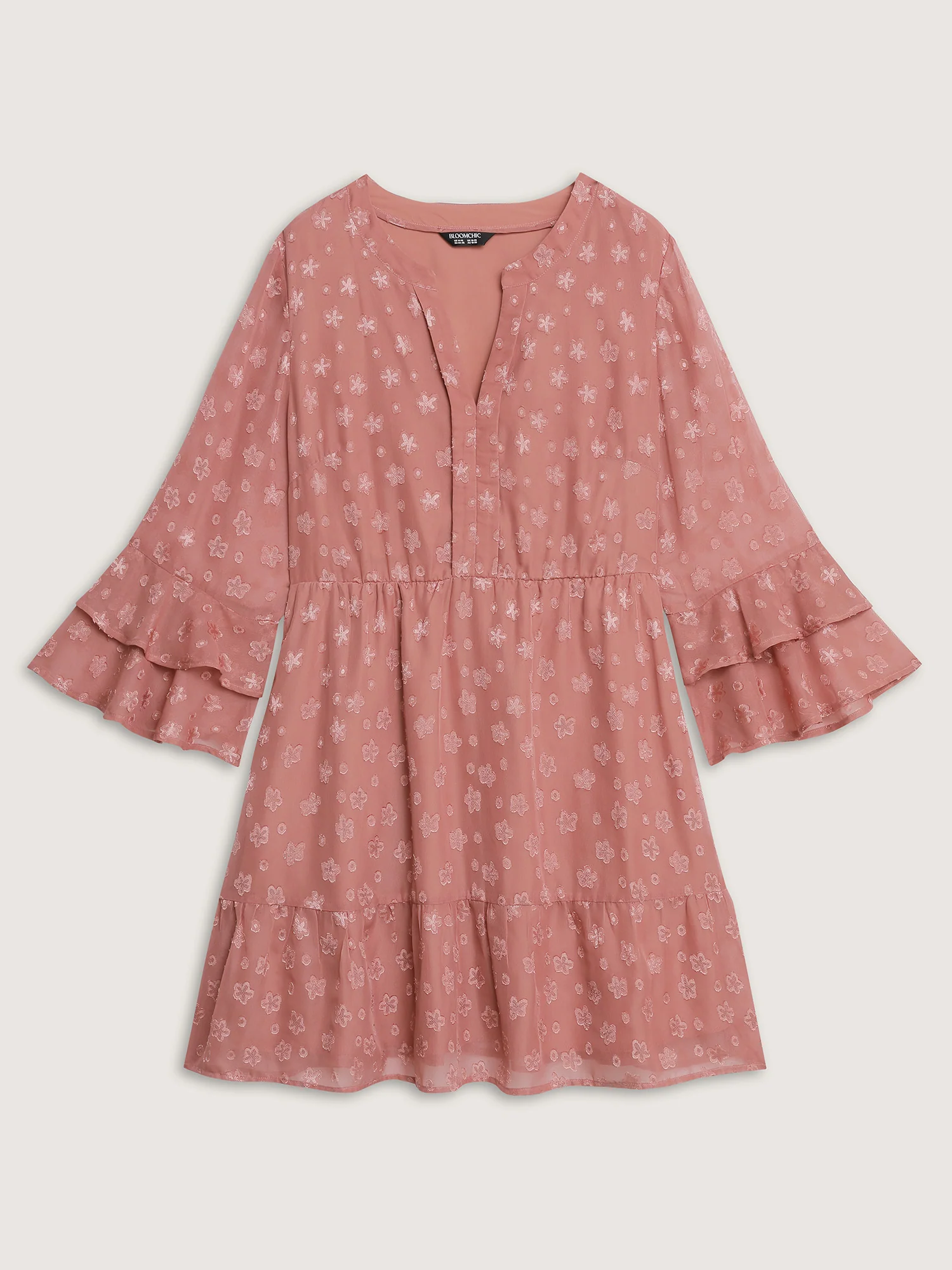 Floral Textured Layered Sleeve Sheer Mini Dress