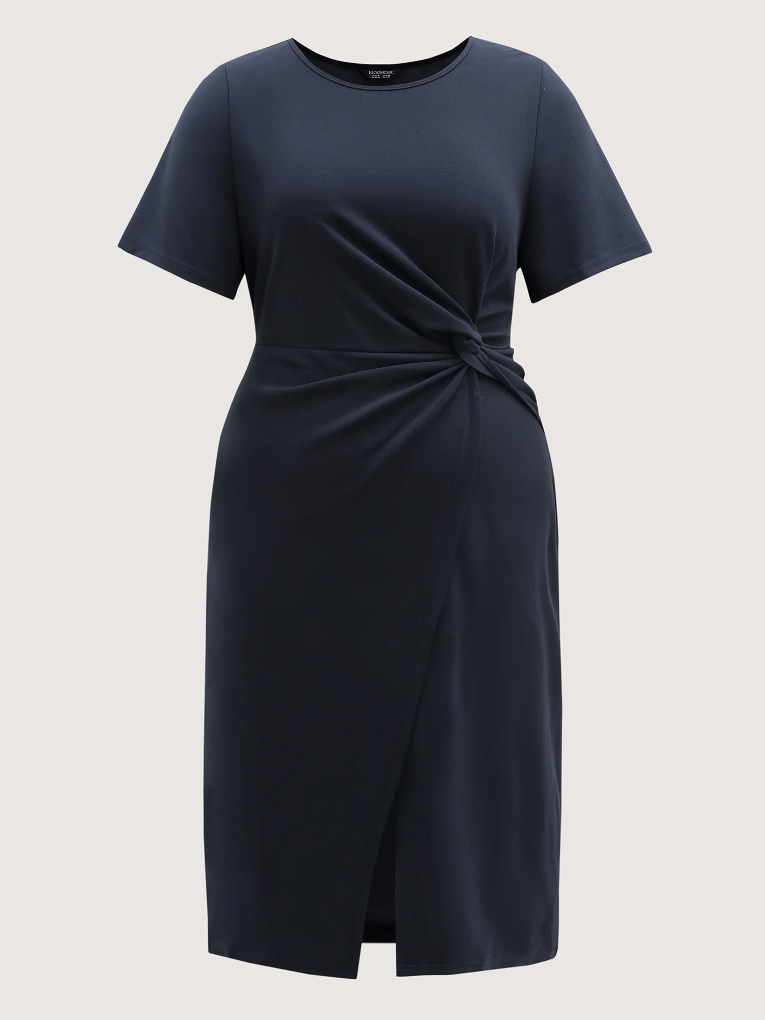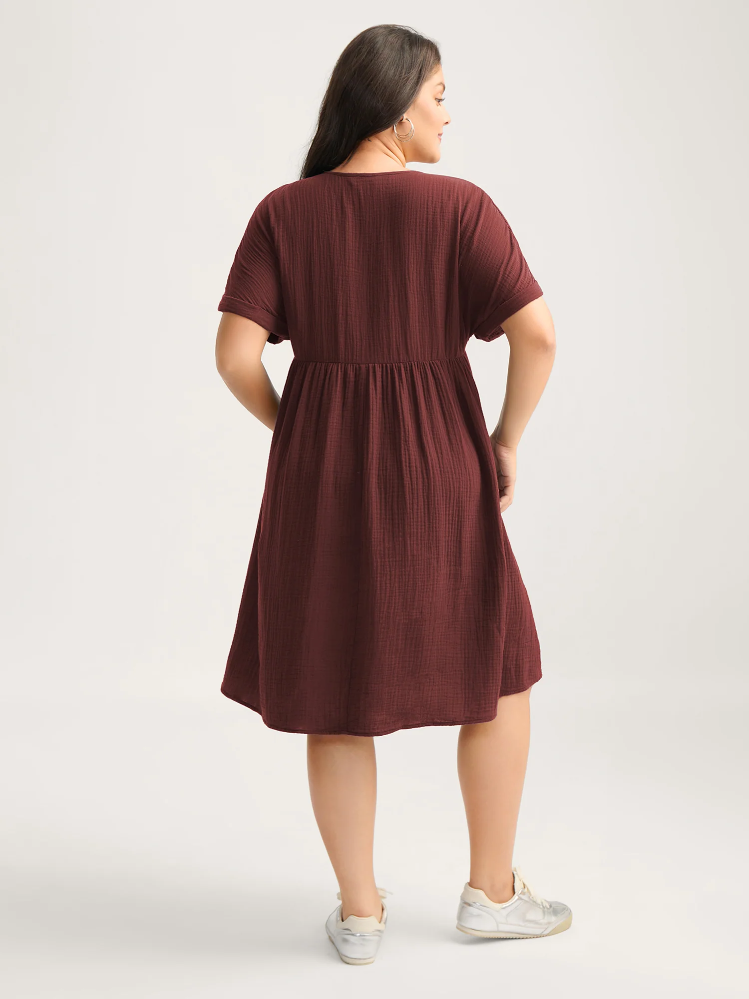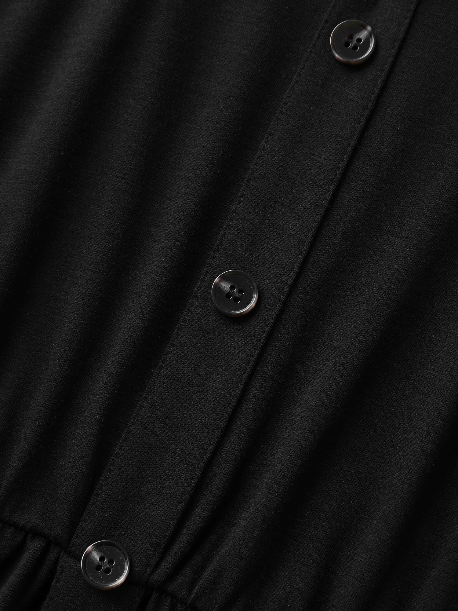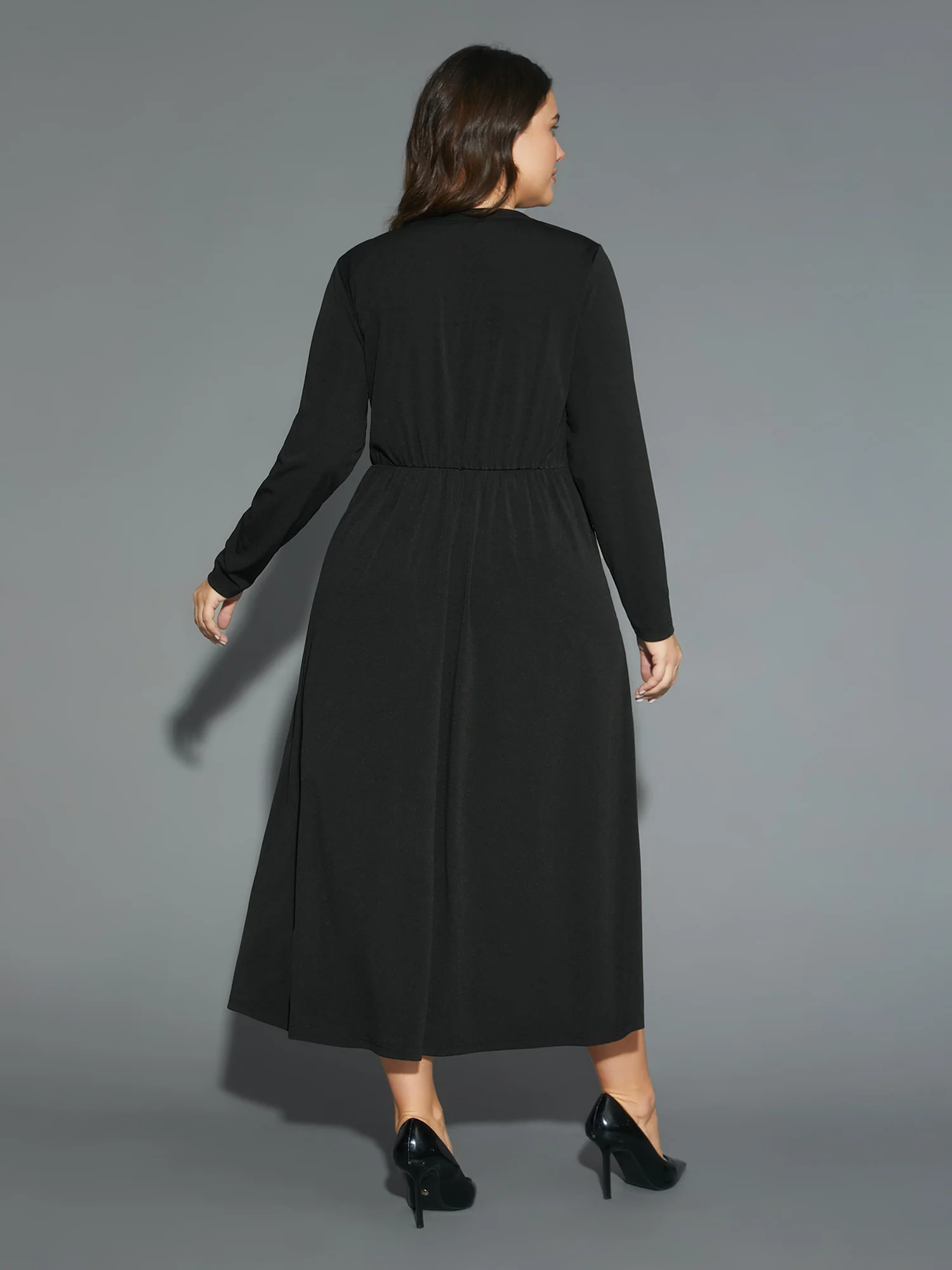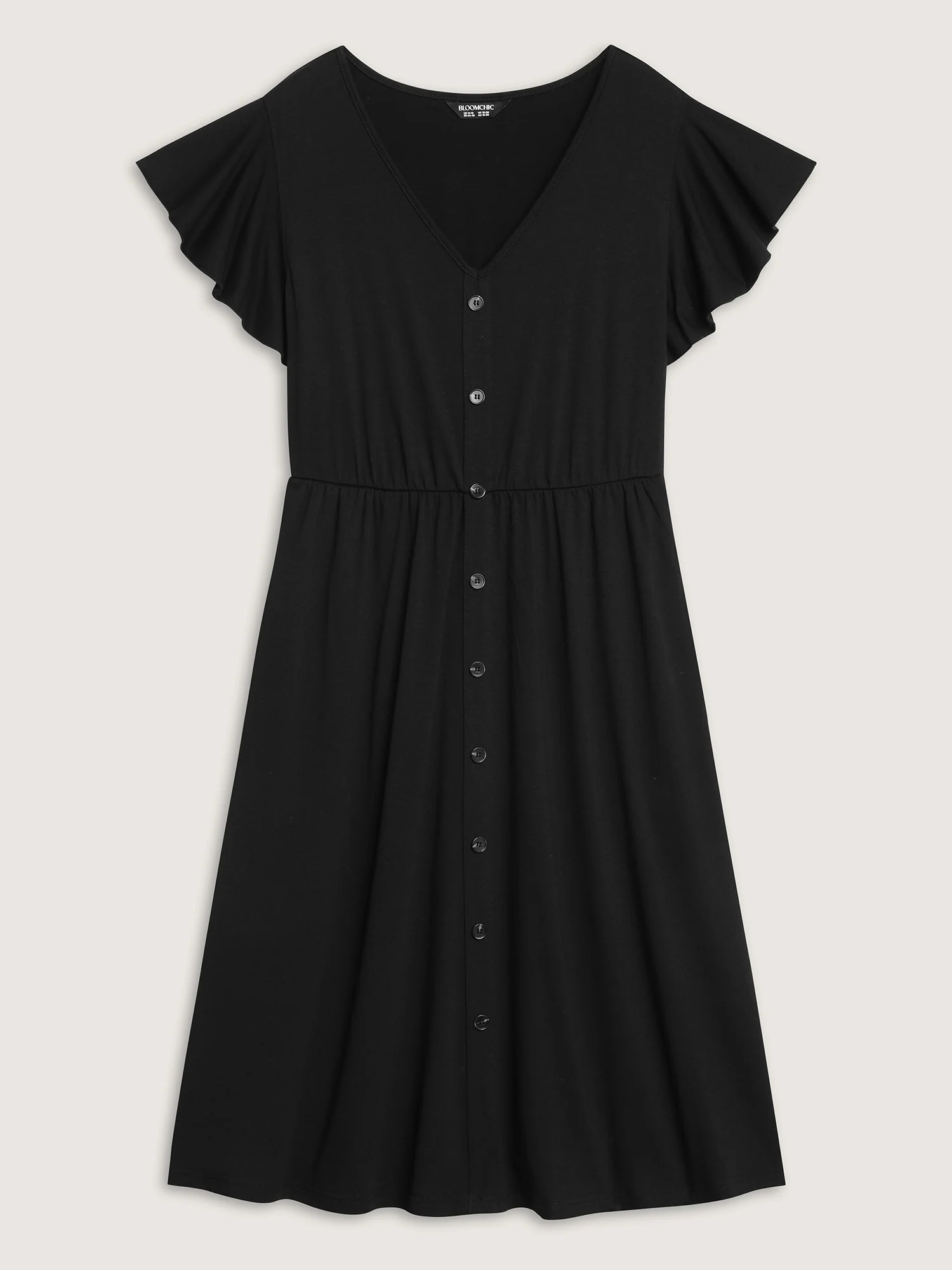 Supersoft Button Detail Deep V-Neck Midi Dress
