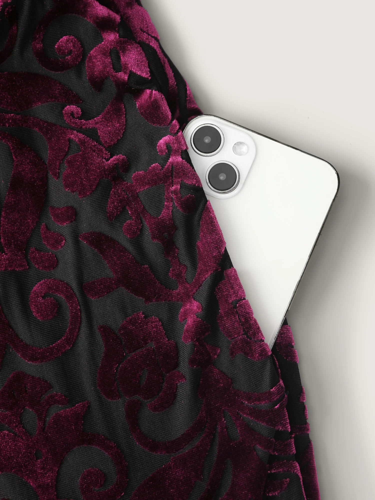 Velvet Laser Cut Lined Wide-Leg Jumpsuit