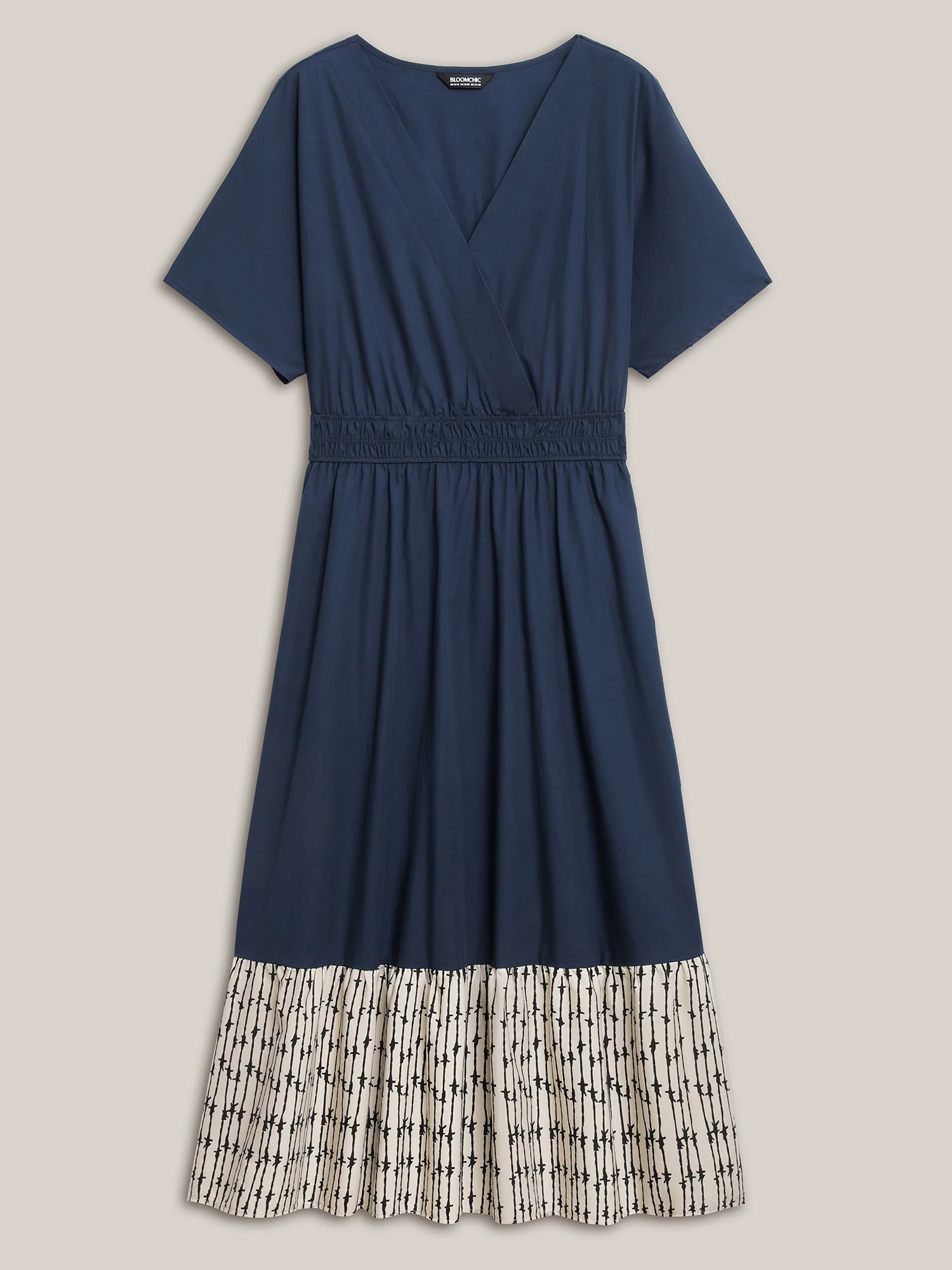 Cotton Color Block Cinched-Waist Spliced Maxi Dress
