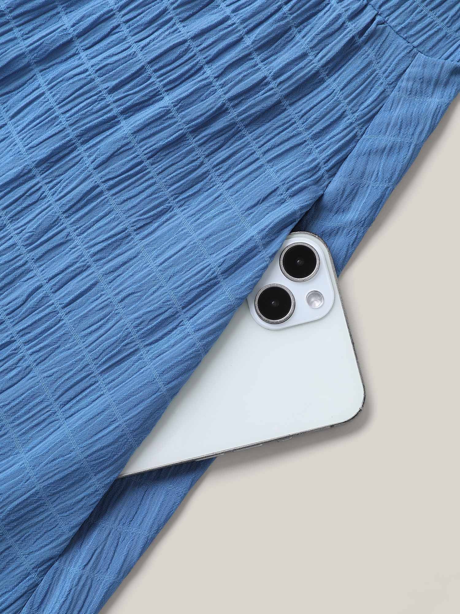 Shimmery Lined Shirred Waist Pockets Maxi Dress