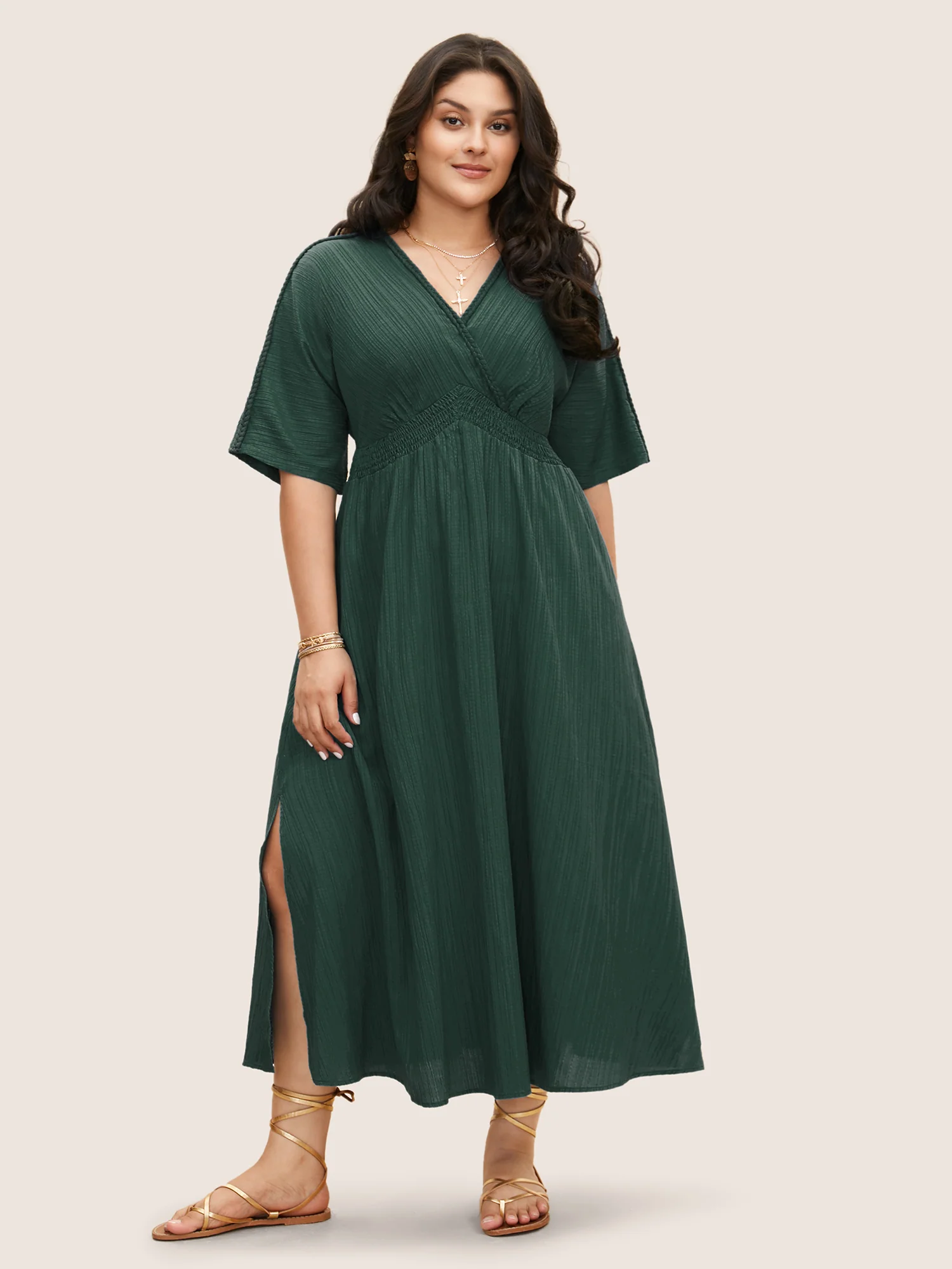 Wrap Neck Flowy Sleeve Sheer Midi Dress