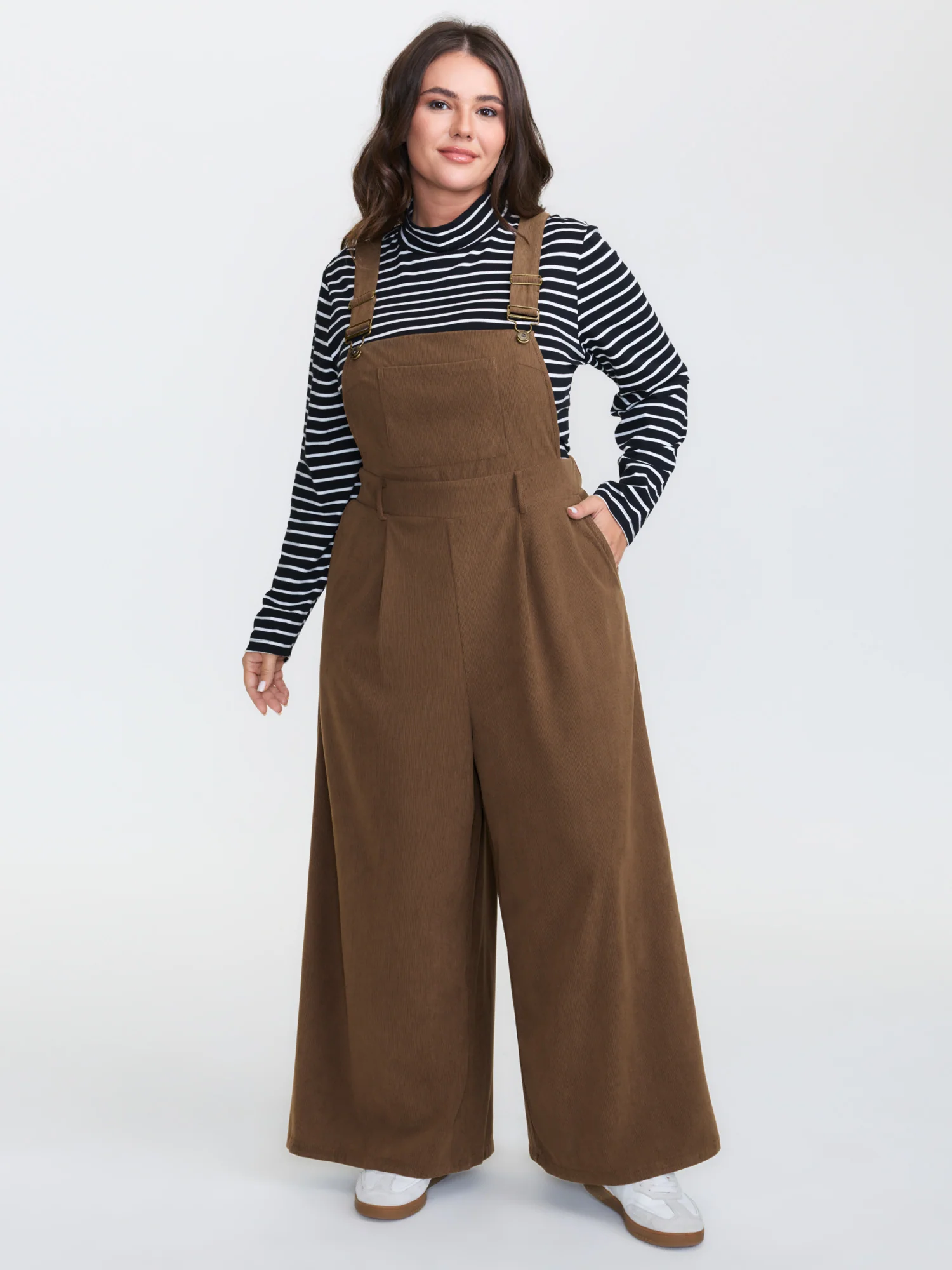 Corduroy Adjustable Shoulder Strap Jumpsuit