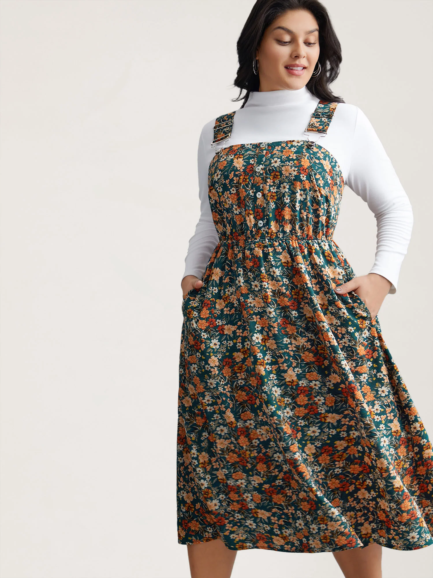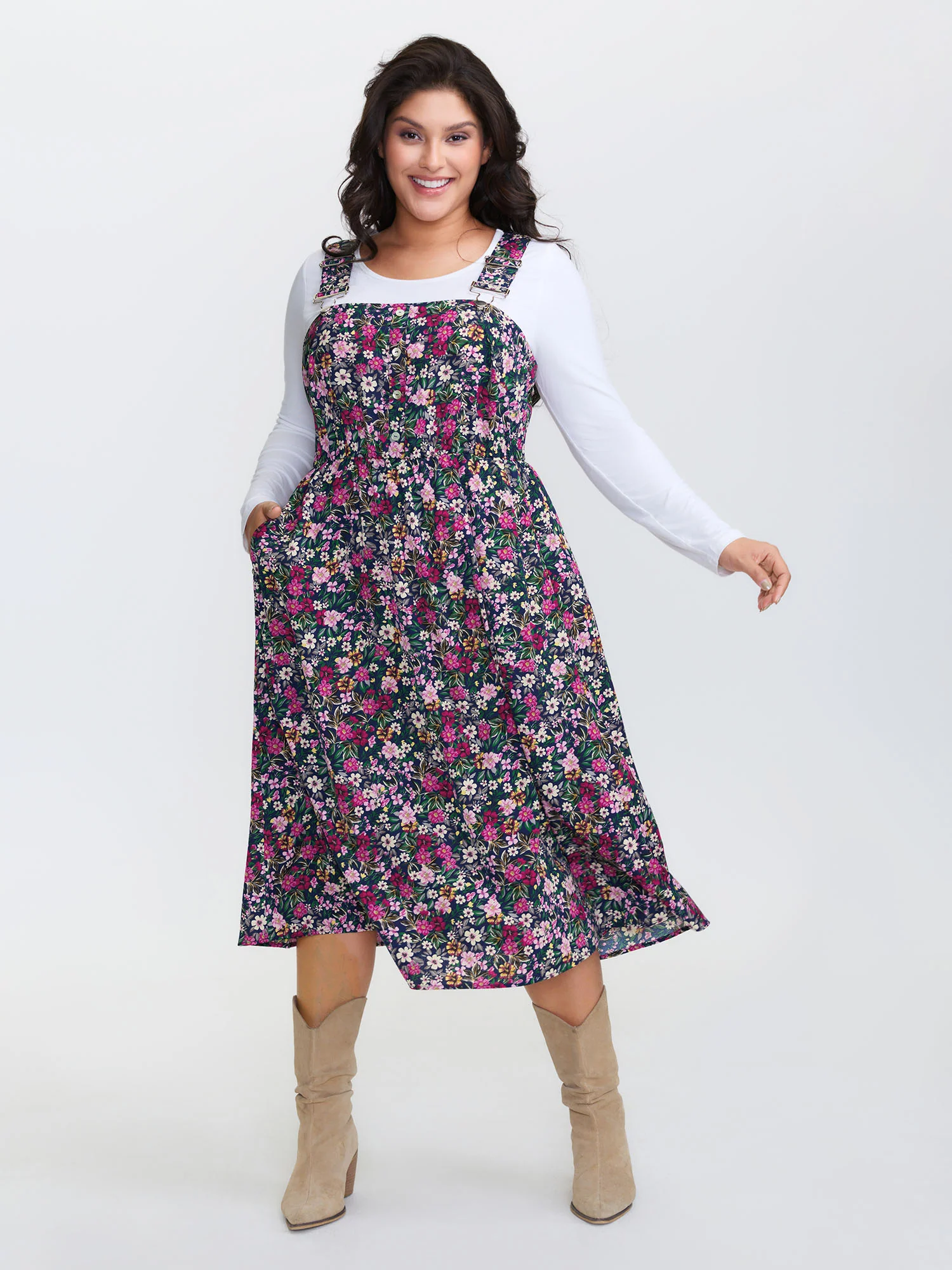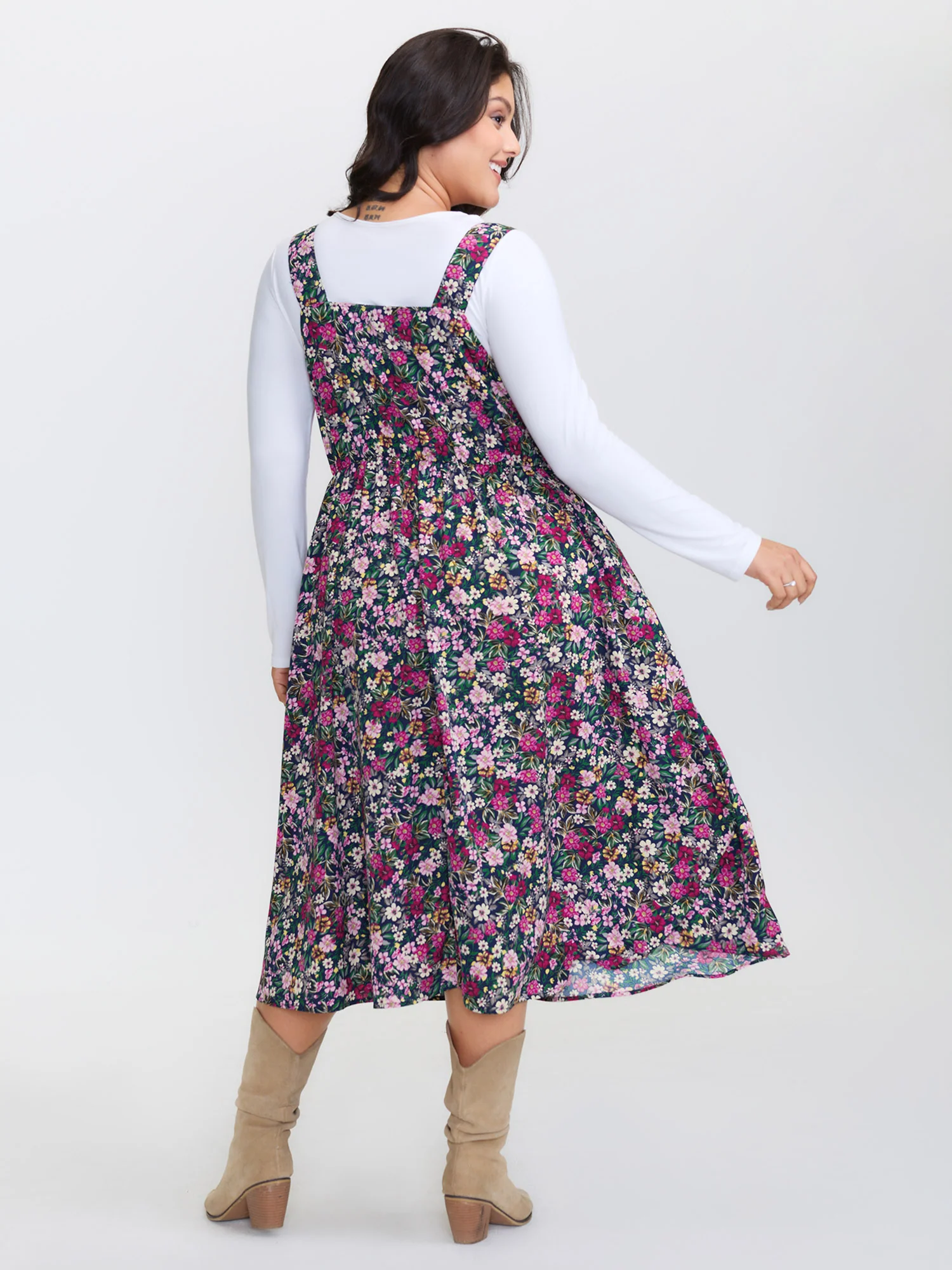Ditsy Floral Adjustable Straps Elastic Waist Dress