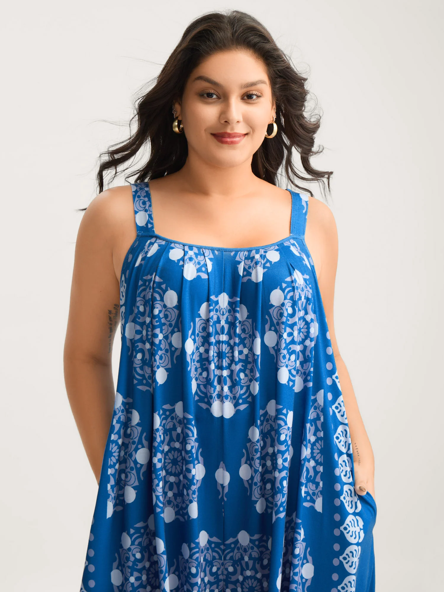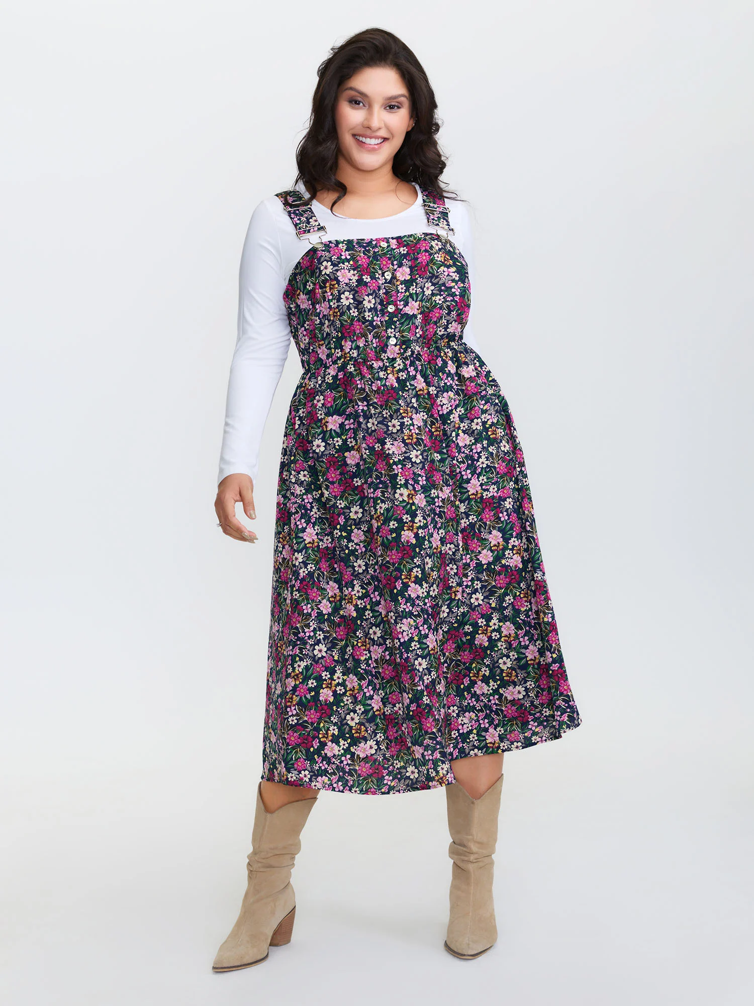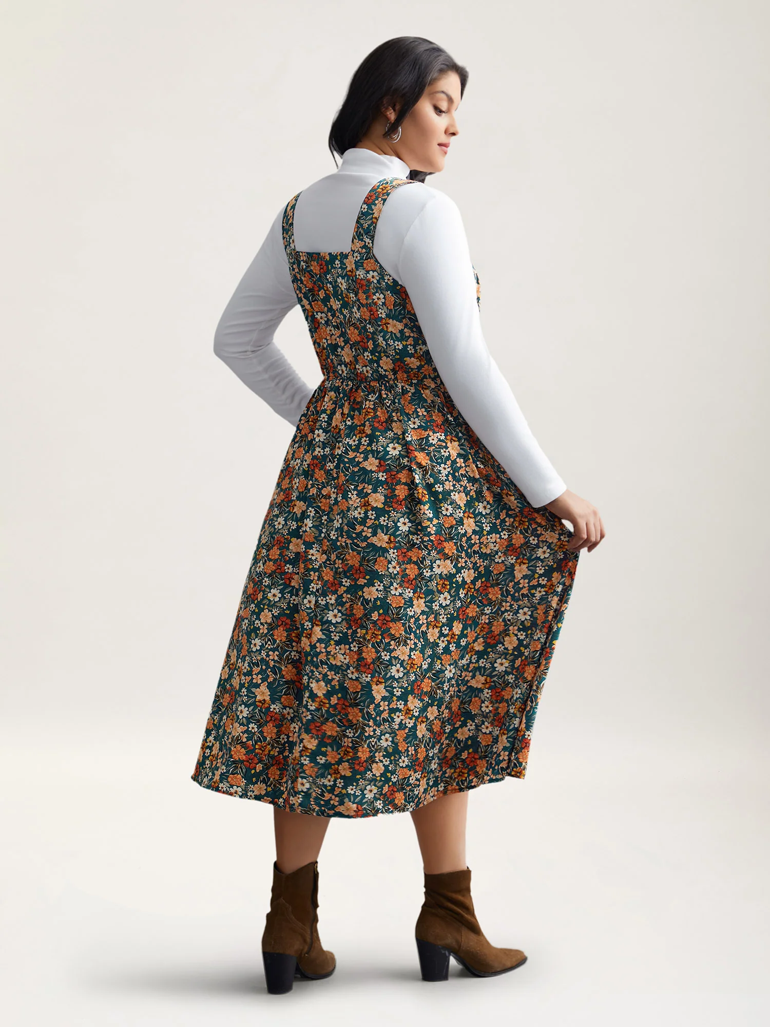 Ditsy Floral Adjustable Straps Elastic Waist Dress