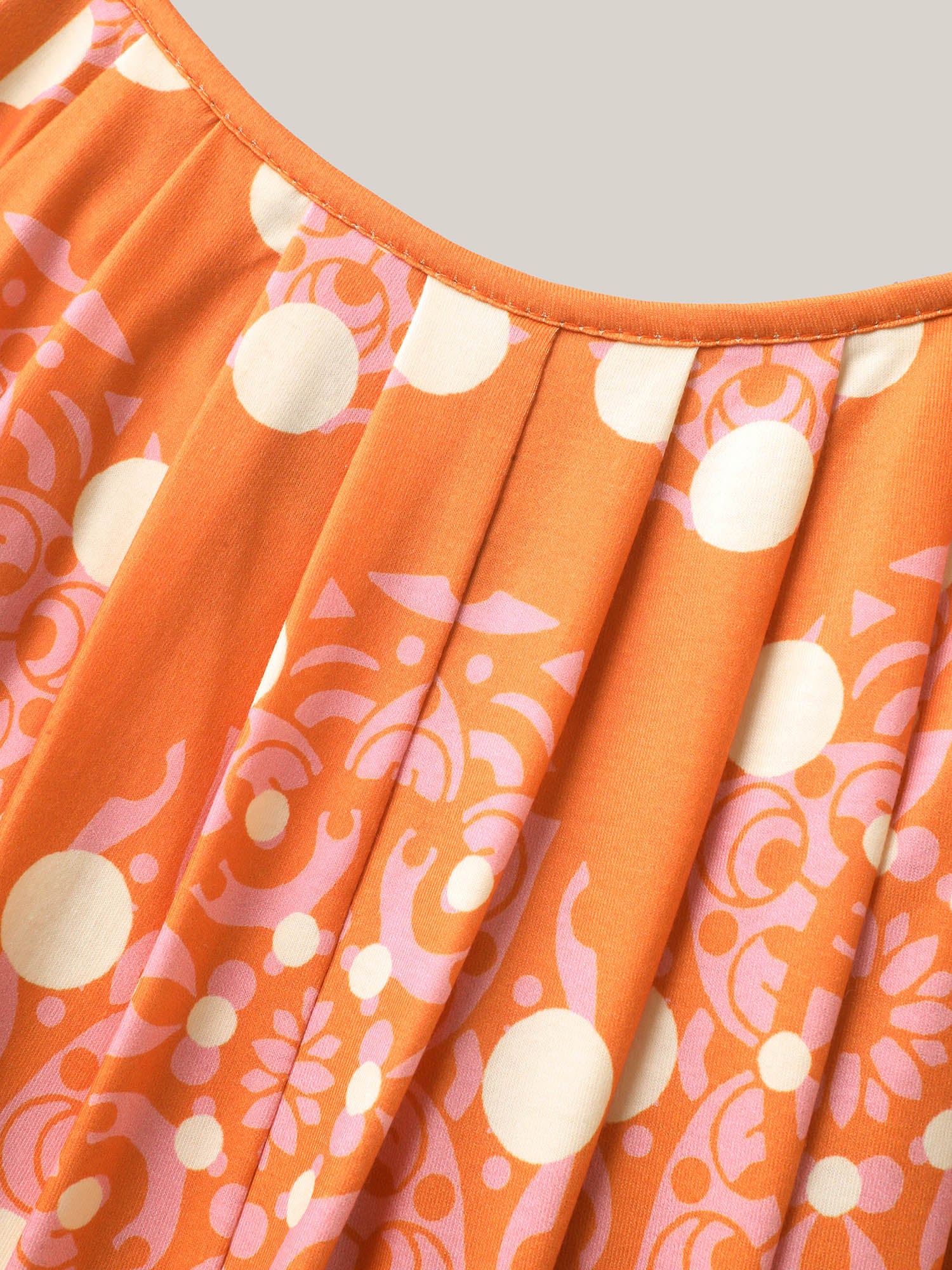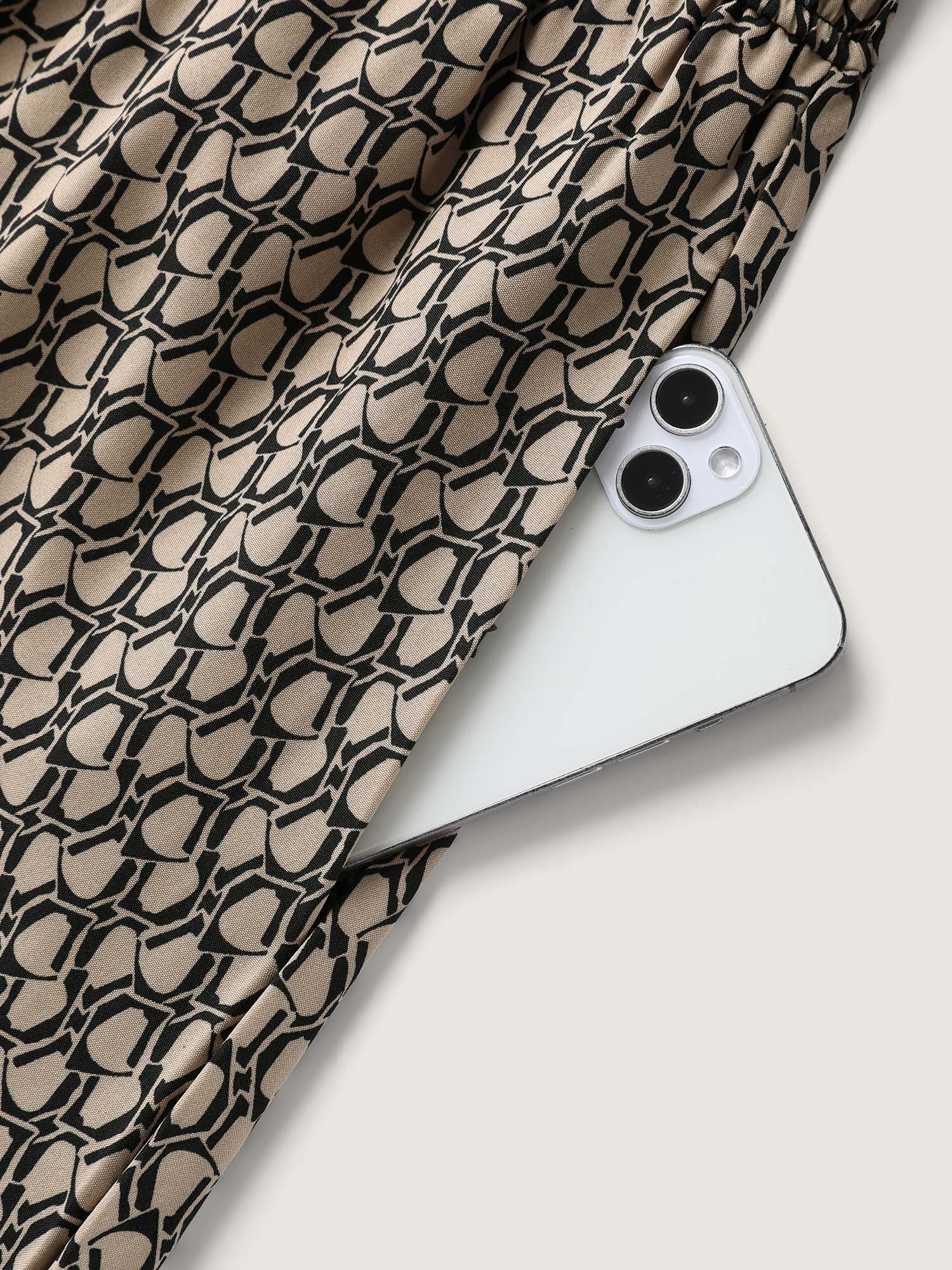 Geometric Print Waist-Cinched Tiered Midi Dress