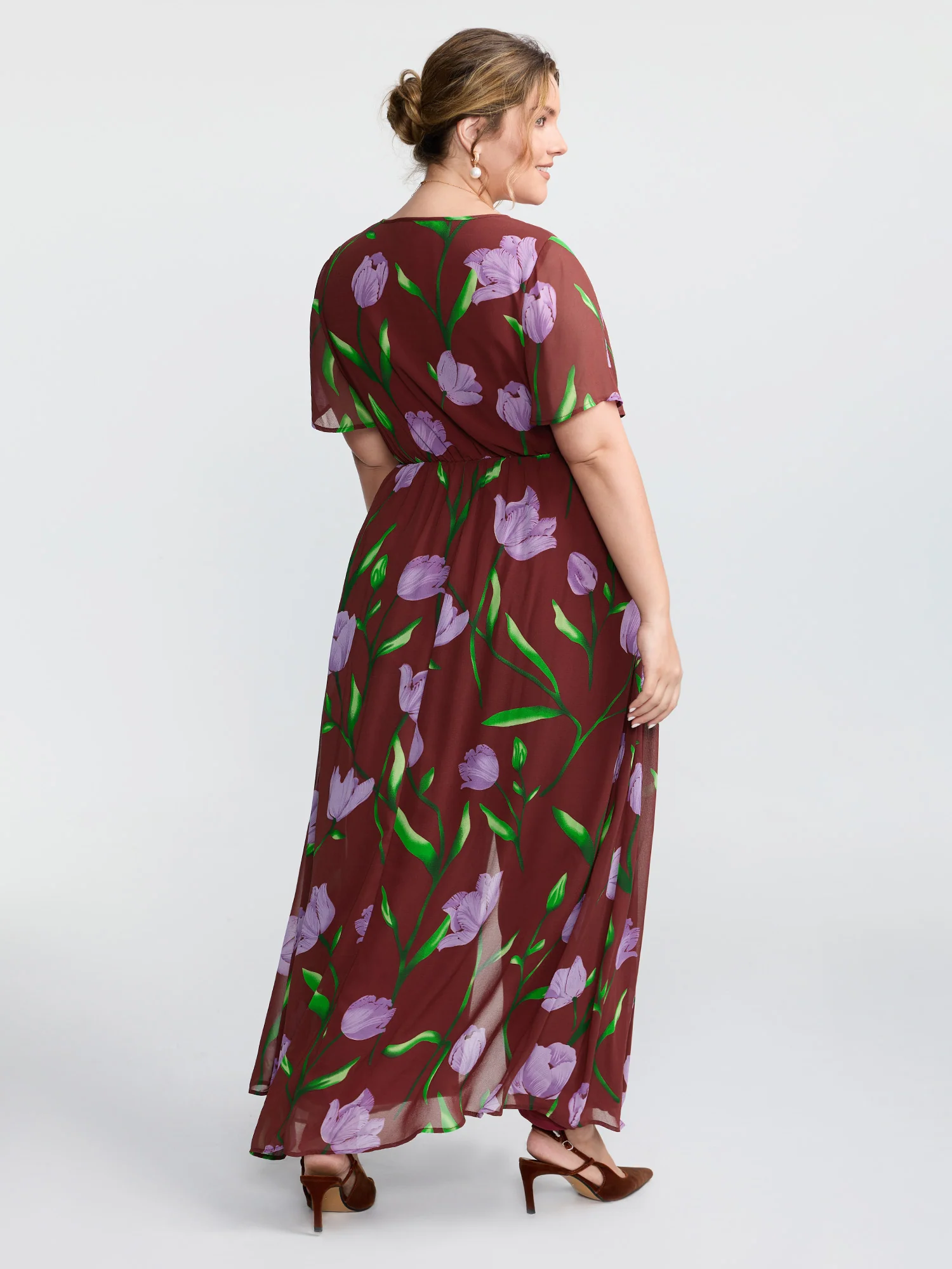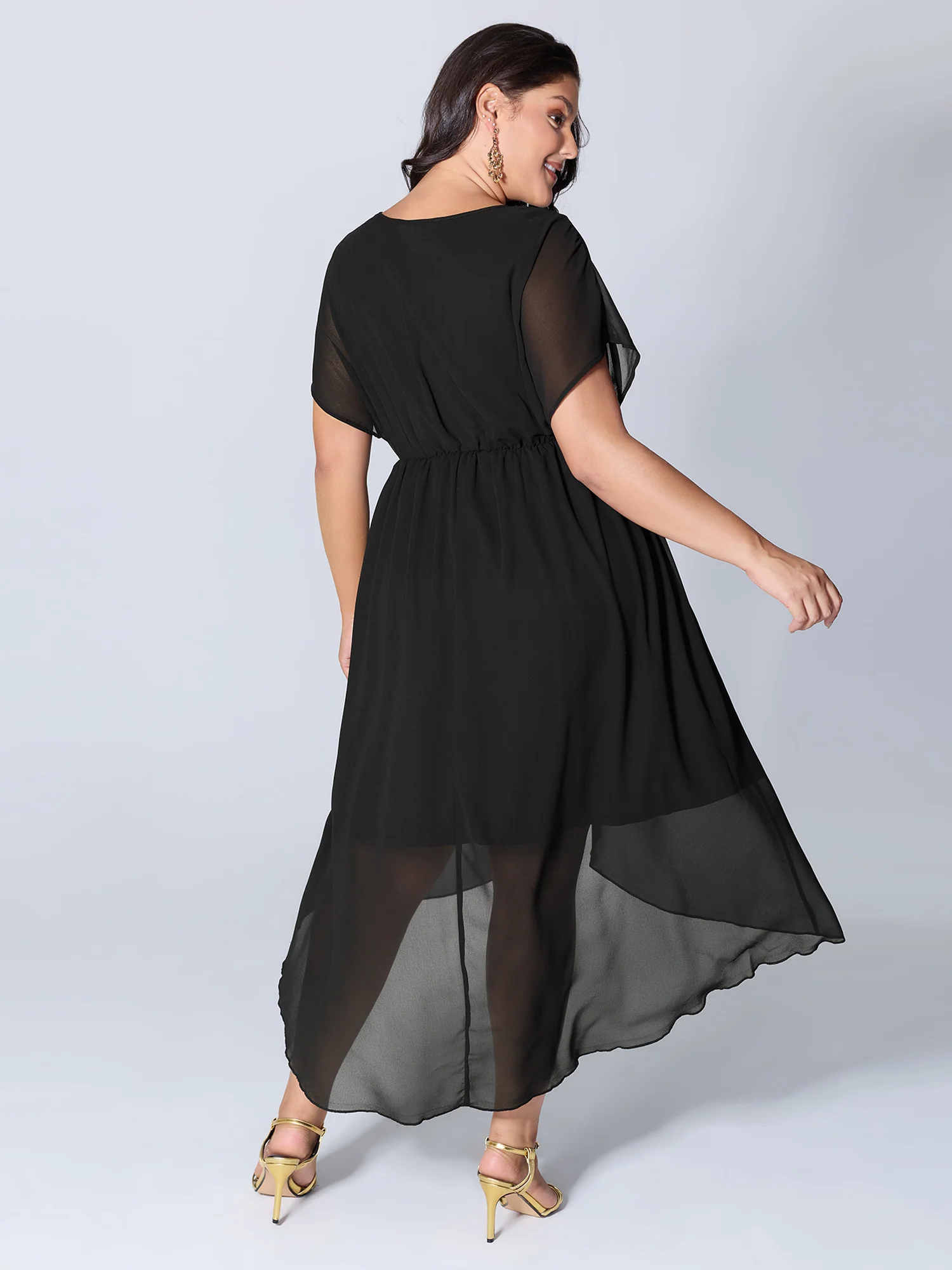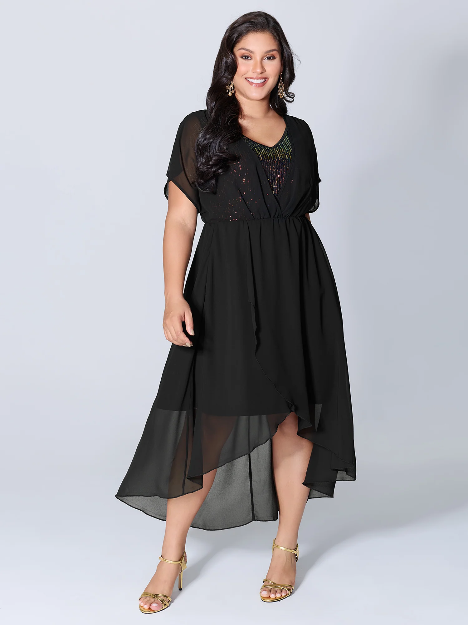 2-in-1 Sheer Sparkly Wrap Midi Dress