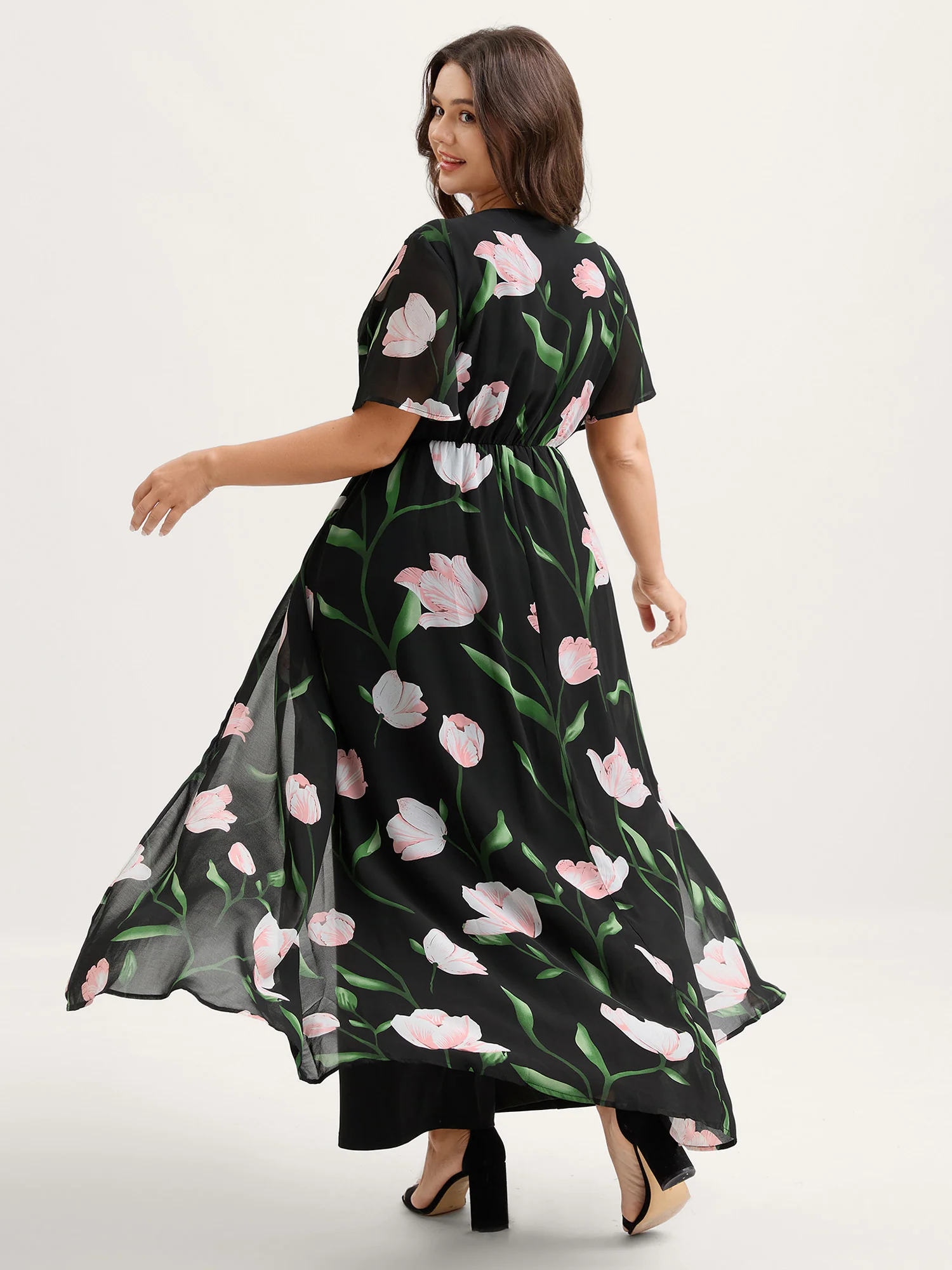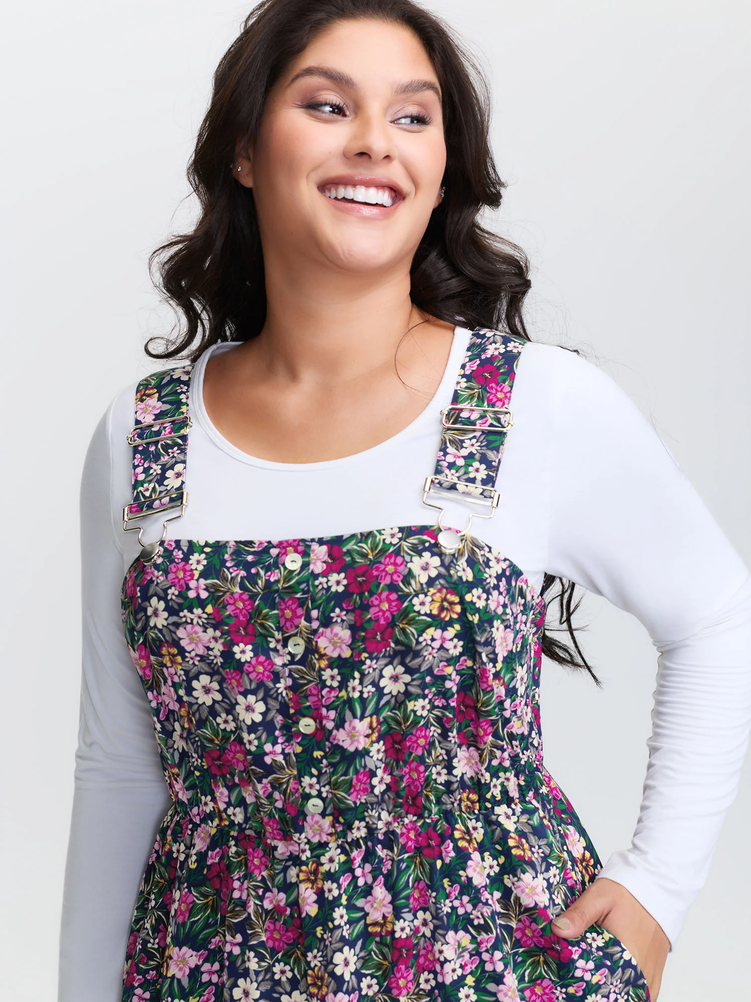 Hidden Zipper Floral Layered Pockets Jumpsuit