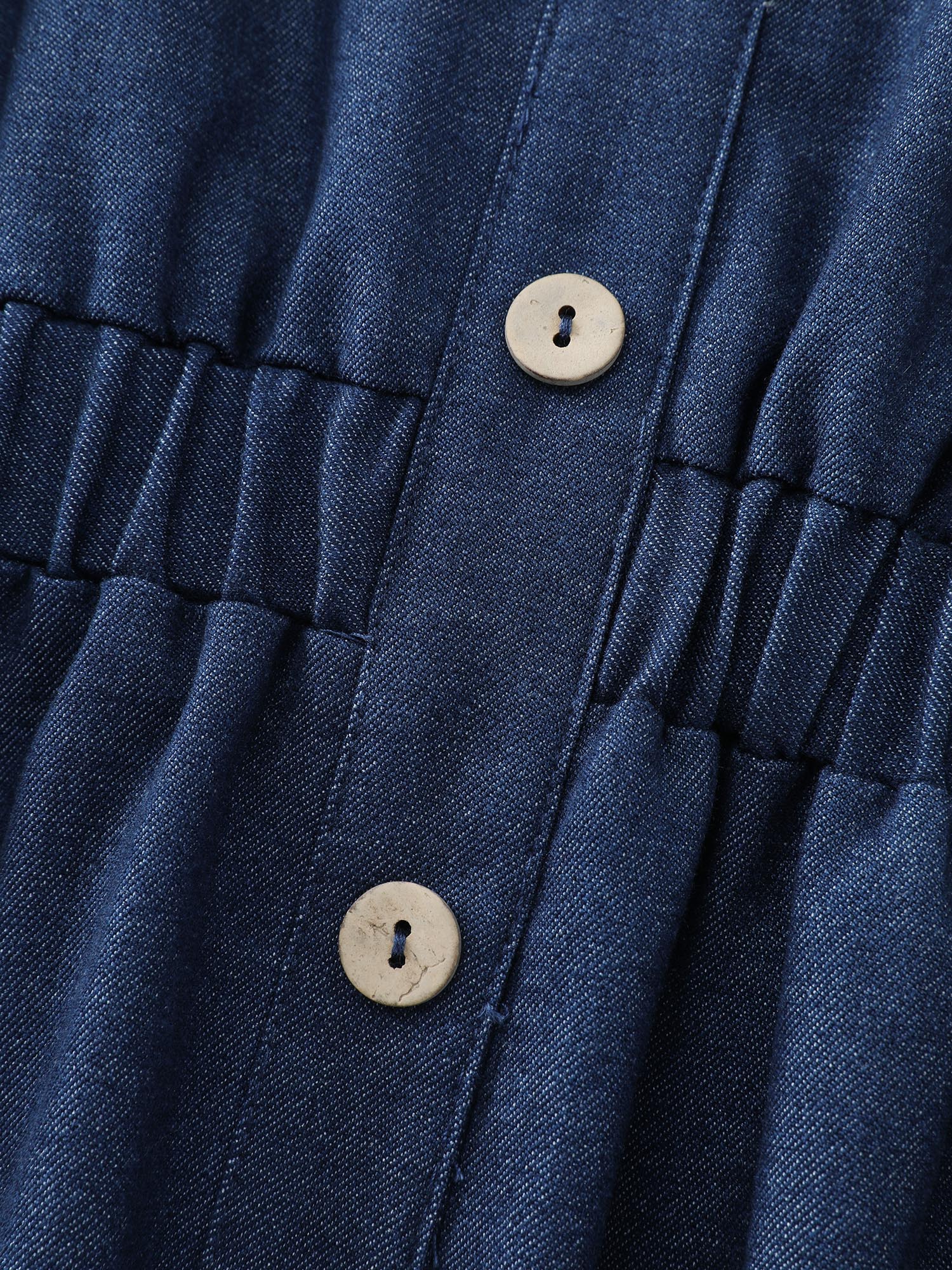 Cotton Relaxed-Fit Side Button Overall Denim Jumpsuit