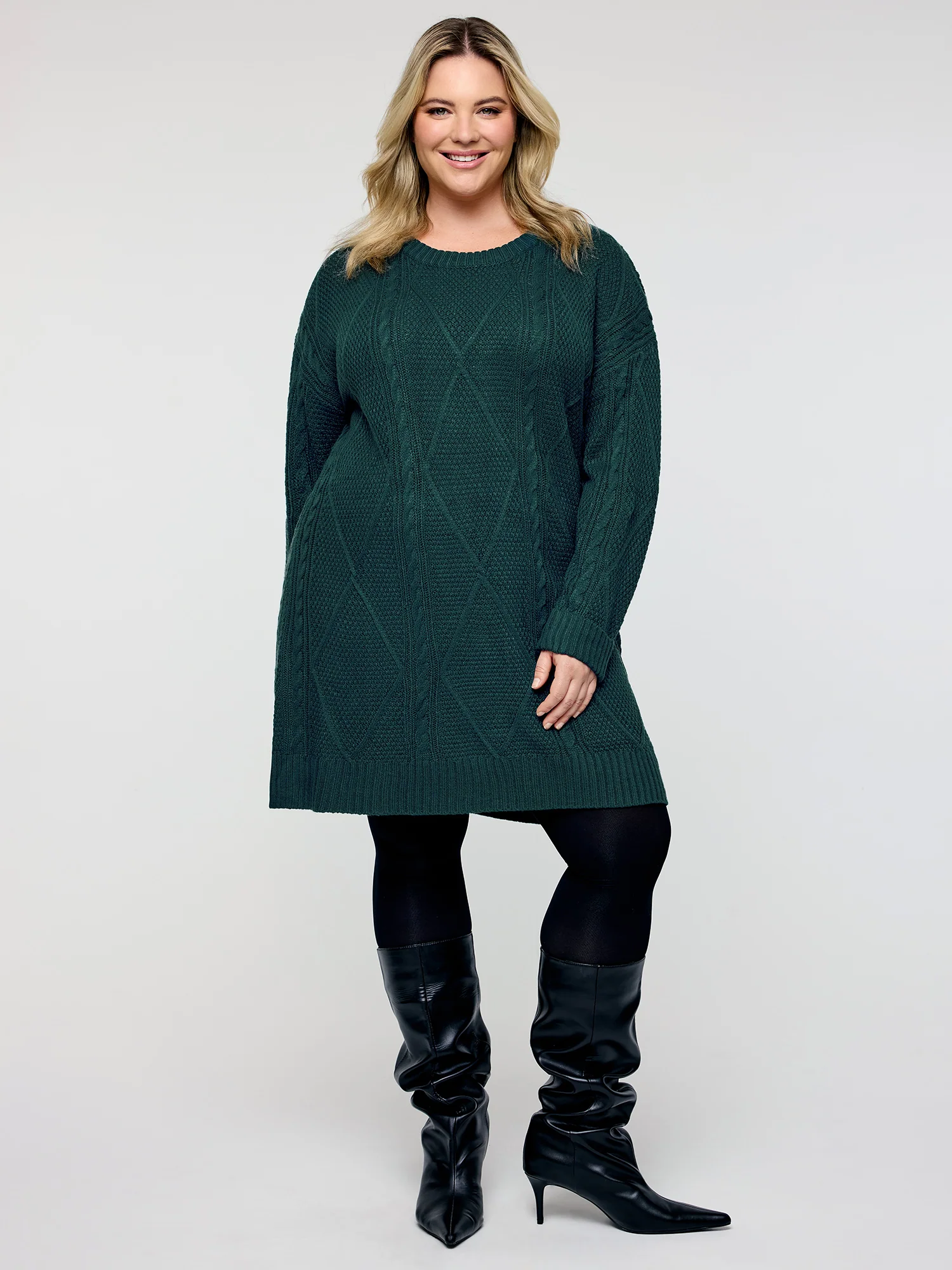 Cable Knit Fit-and-Flare Midi Sweater Dress