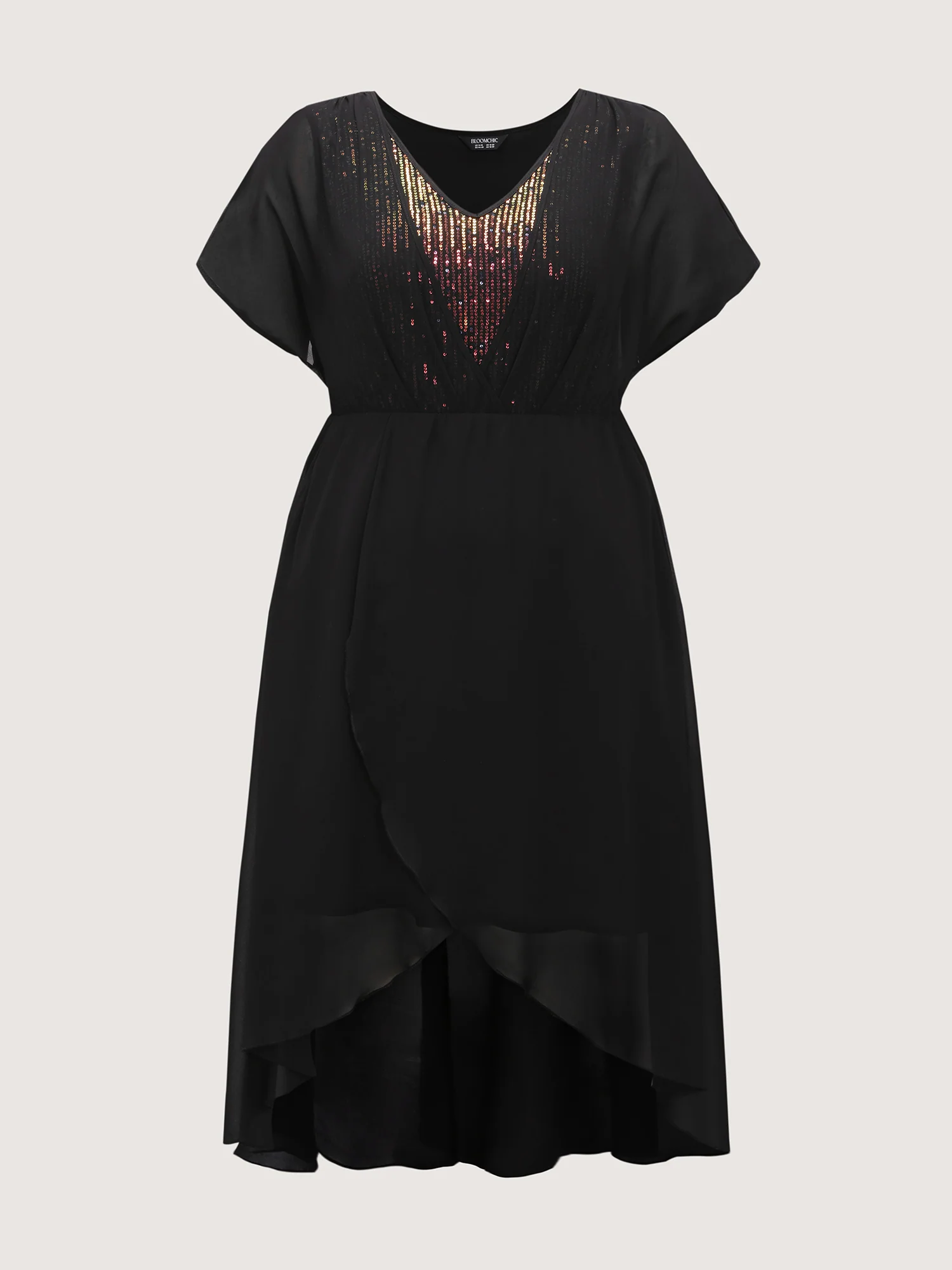 Sequin Surplice Neckline Sleeveless Midi Dress