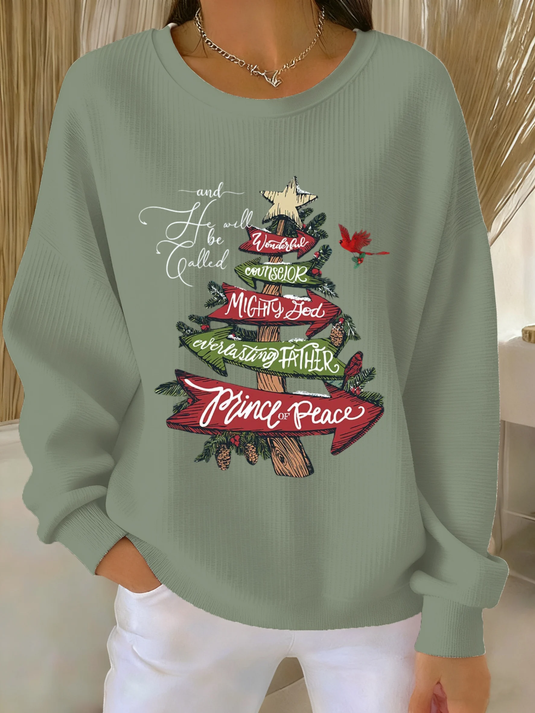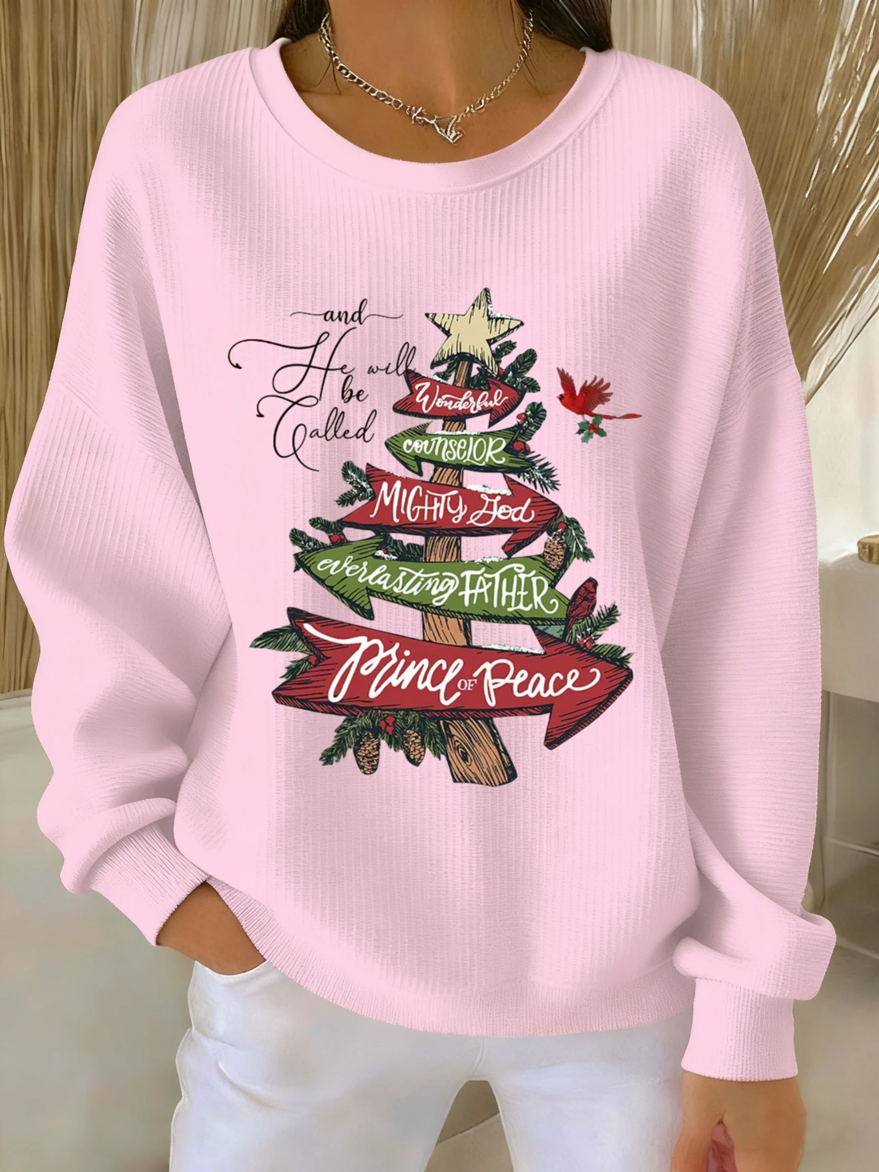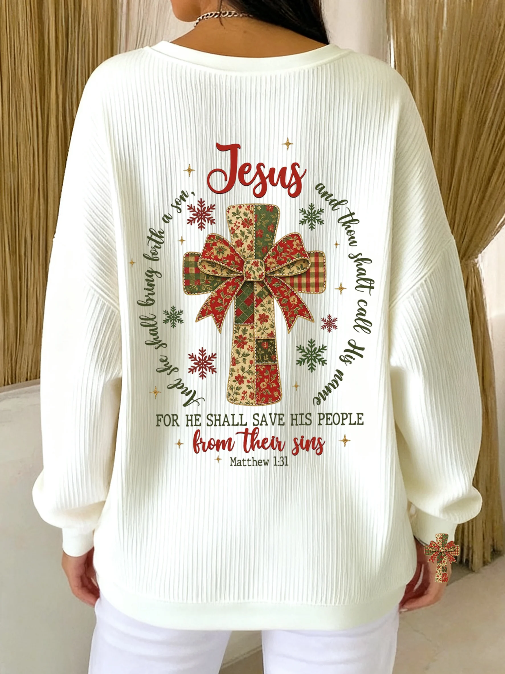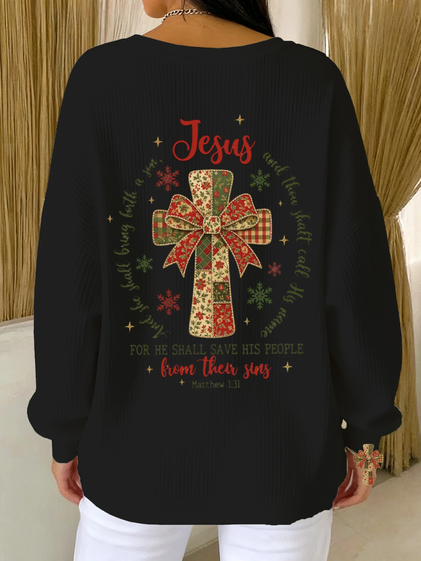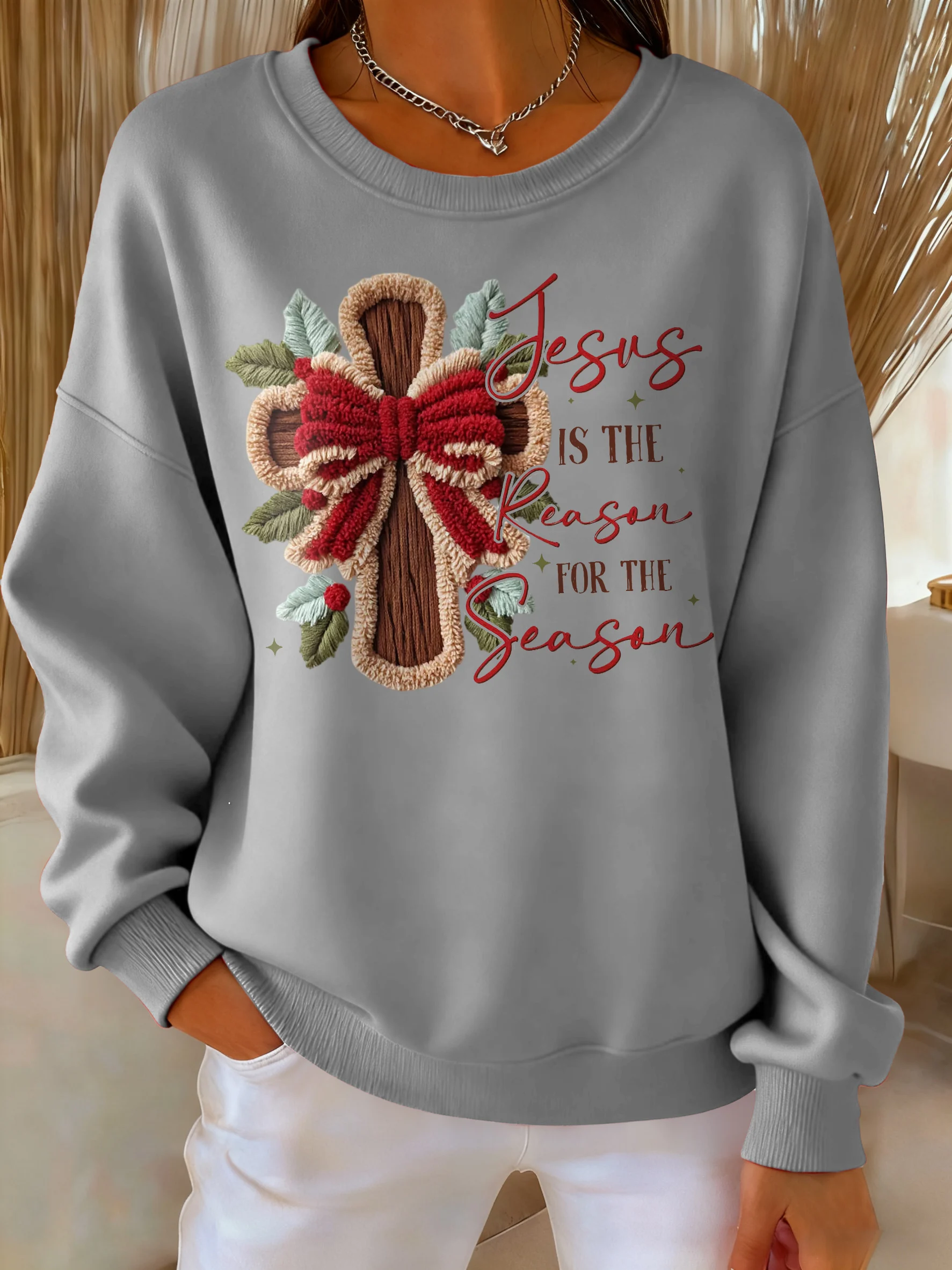 Cotton Women's Casual Christian Christmas Print Sweatshirt