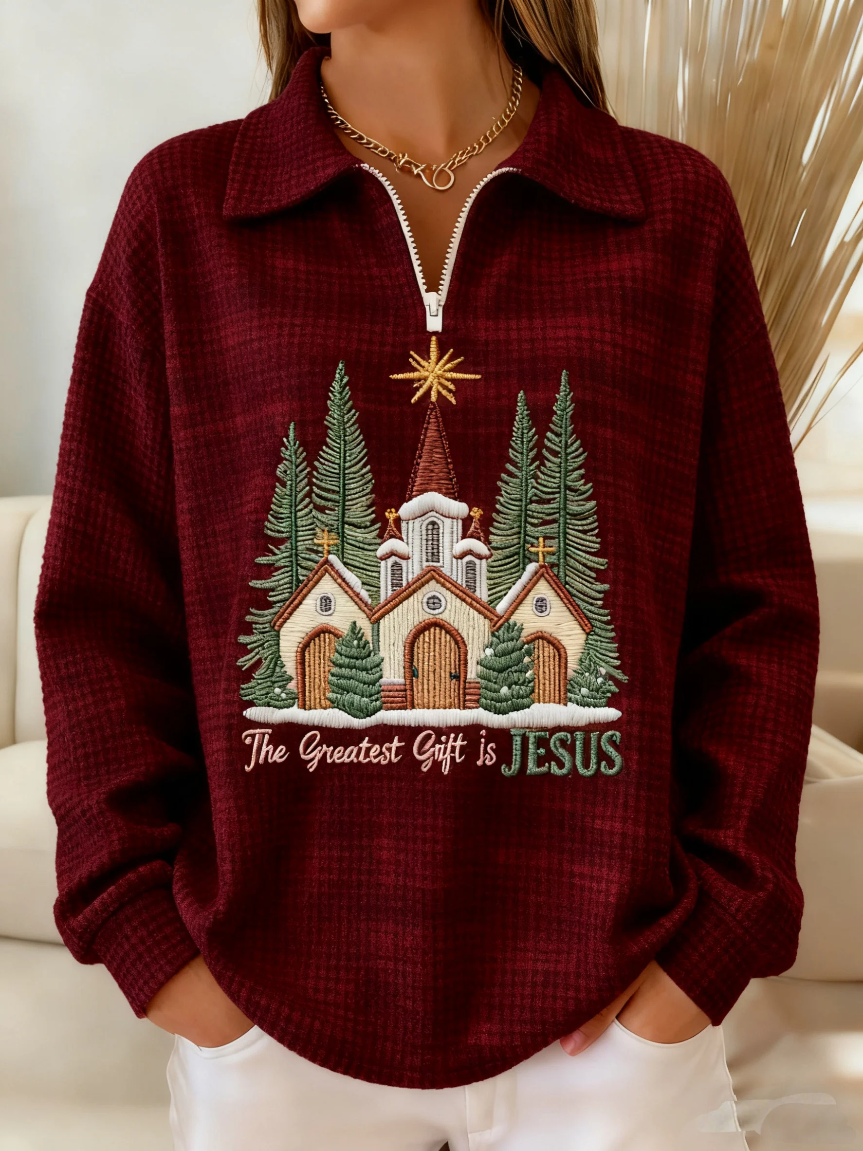 Women's Christmas Faith Jesus Church Printed Sweatshirt