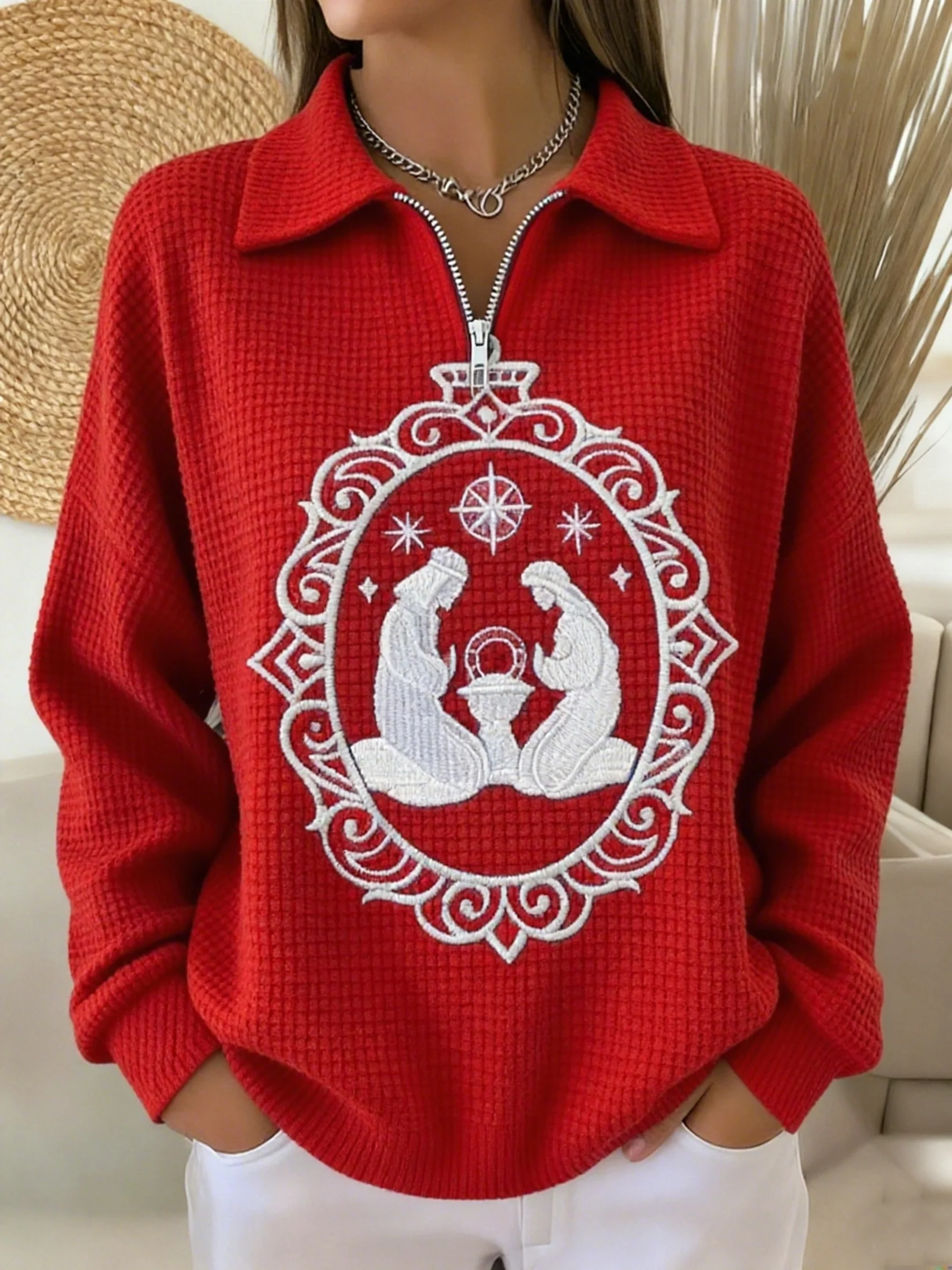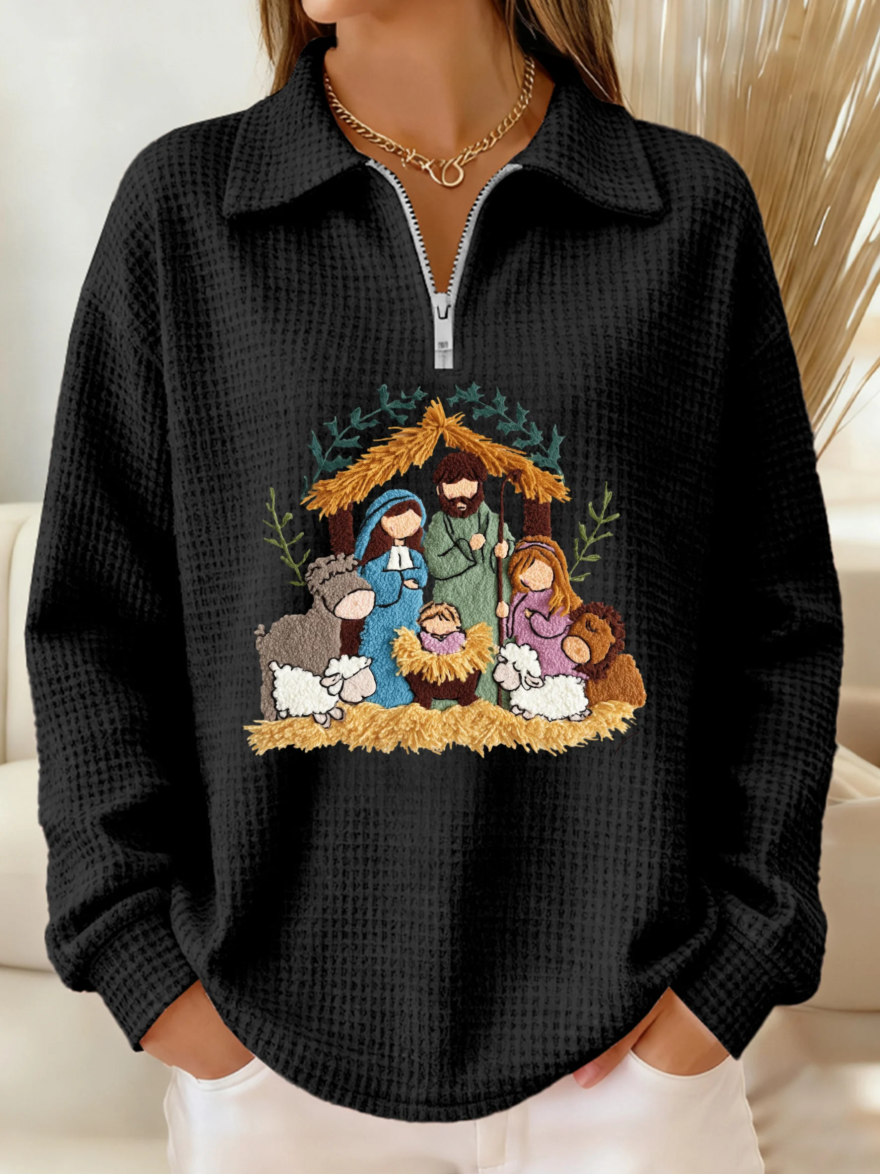 Women's Embroidery Nativity Scene Printed Sweatshirt