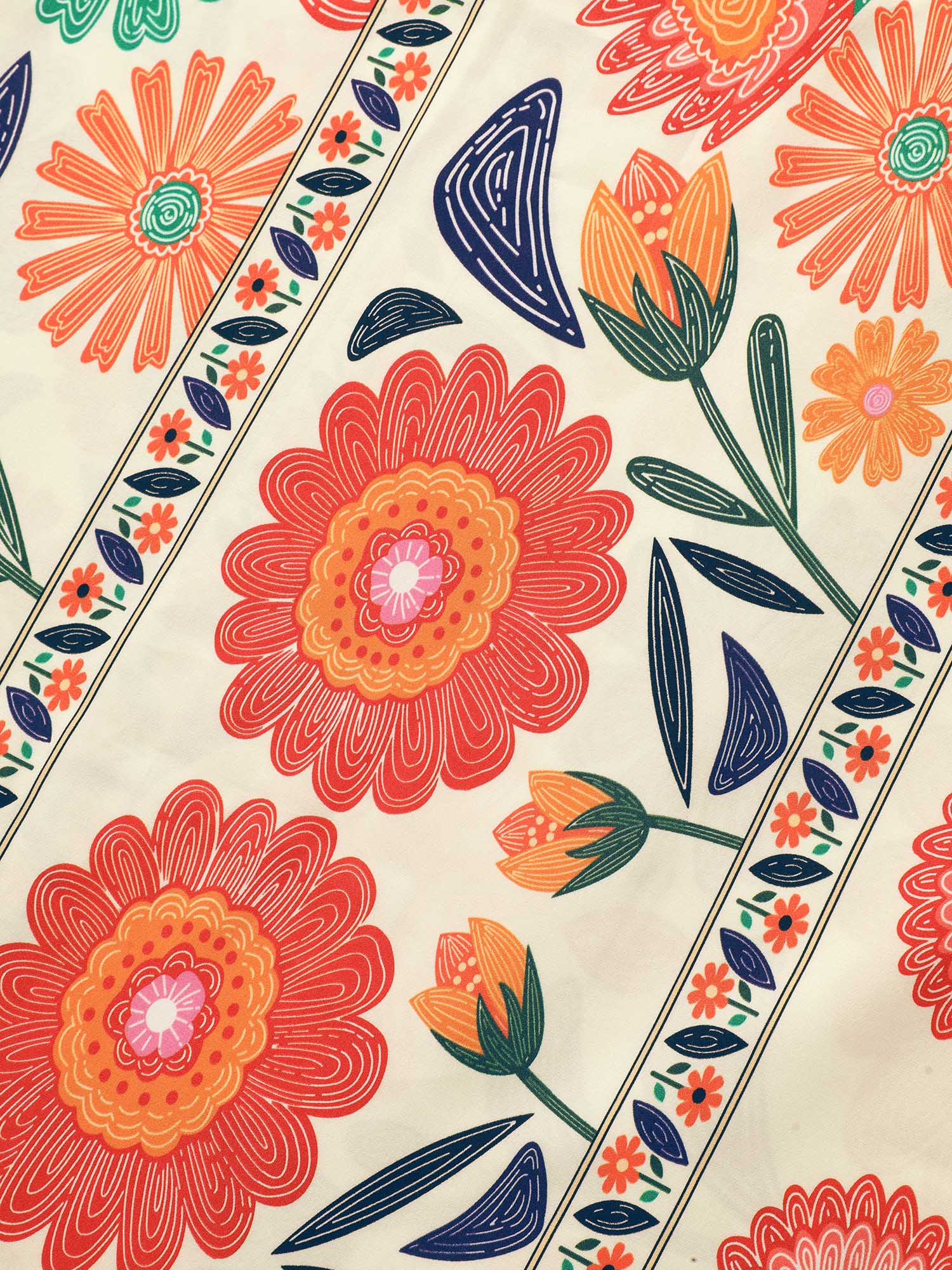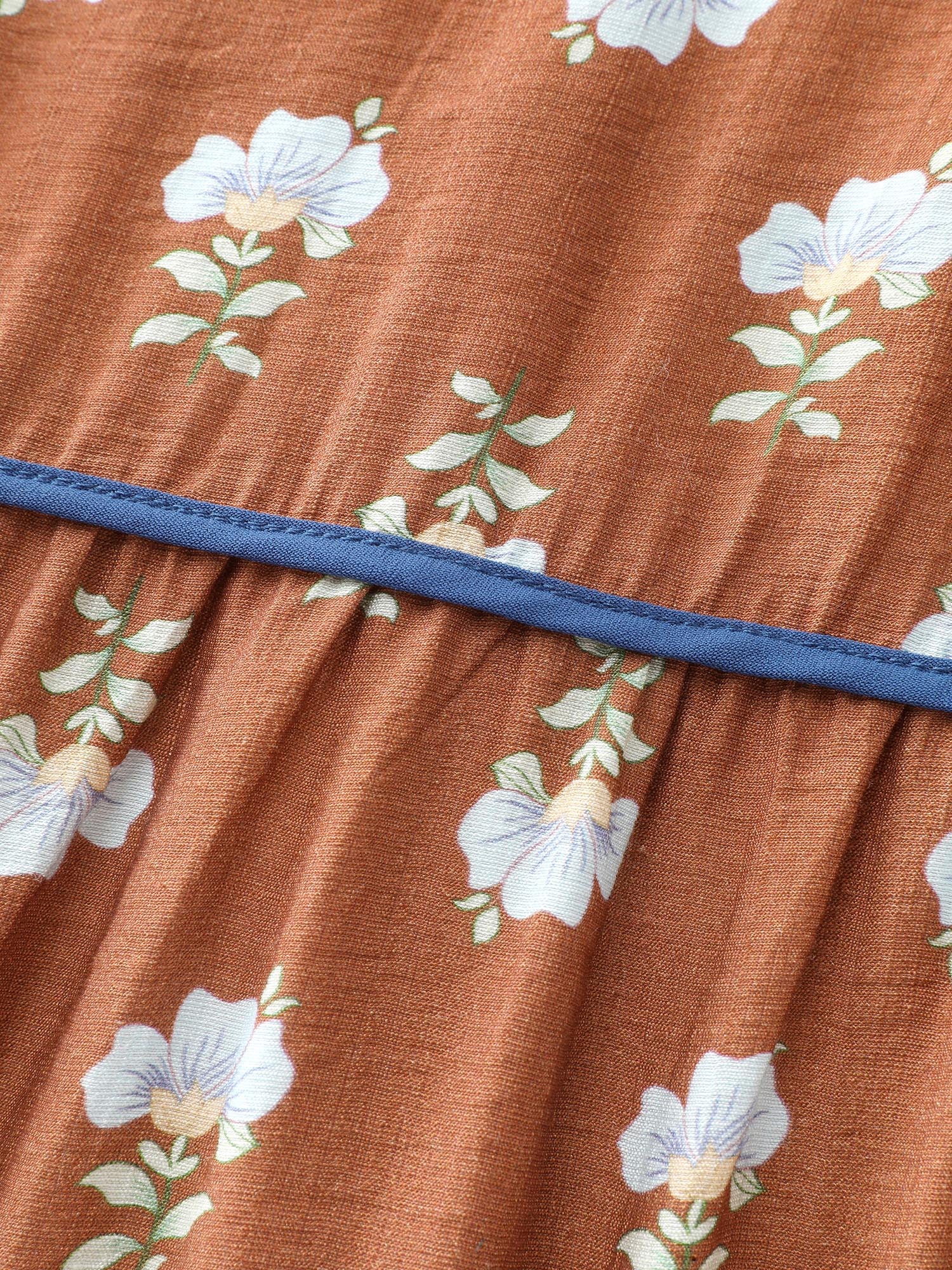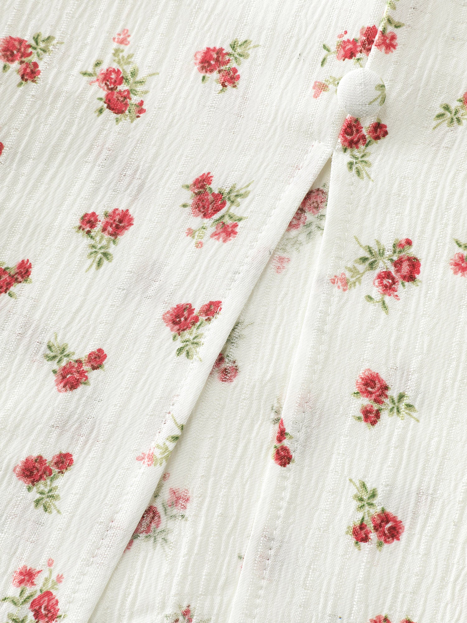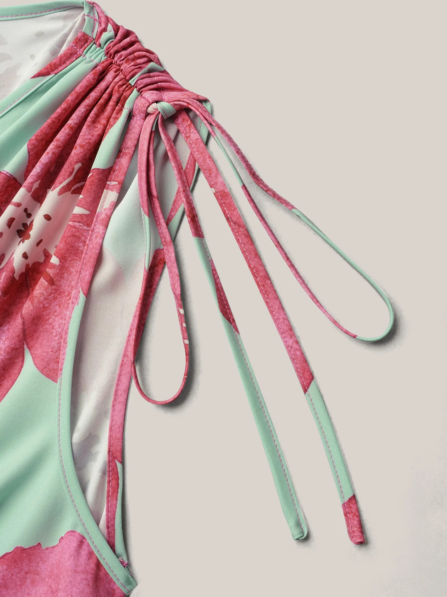 Colorful Rose Pattern Drawstring Neckline Midi Dress