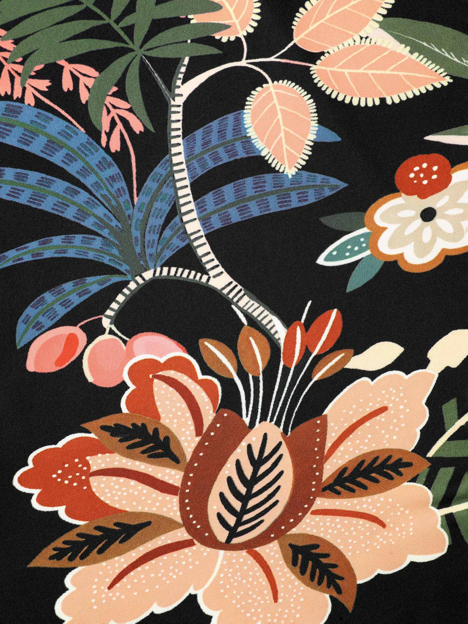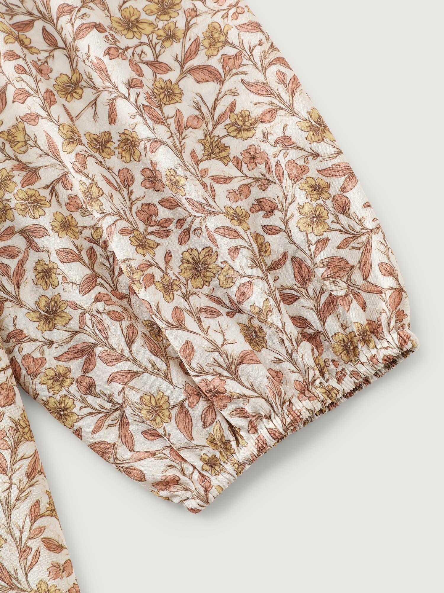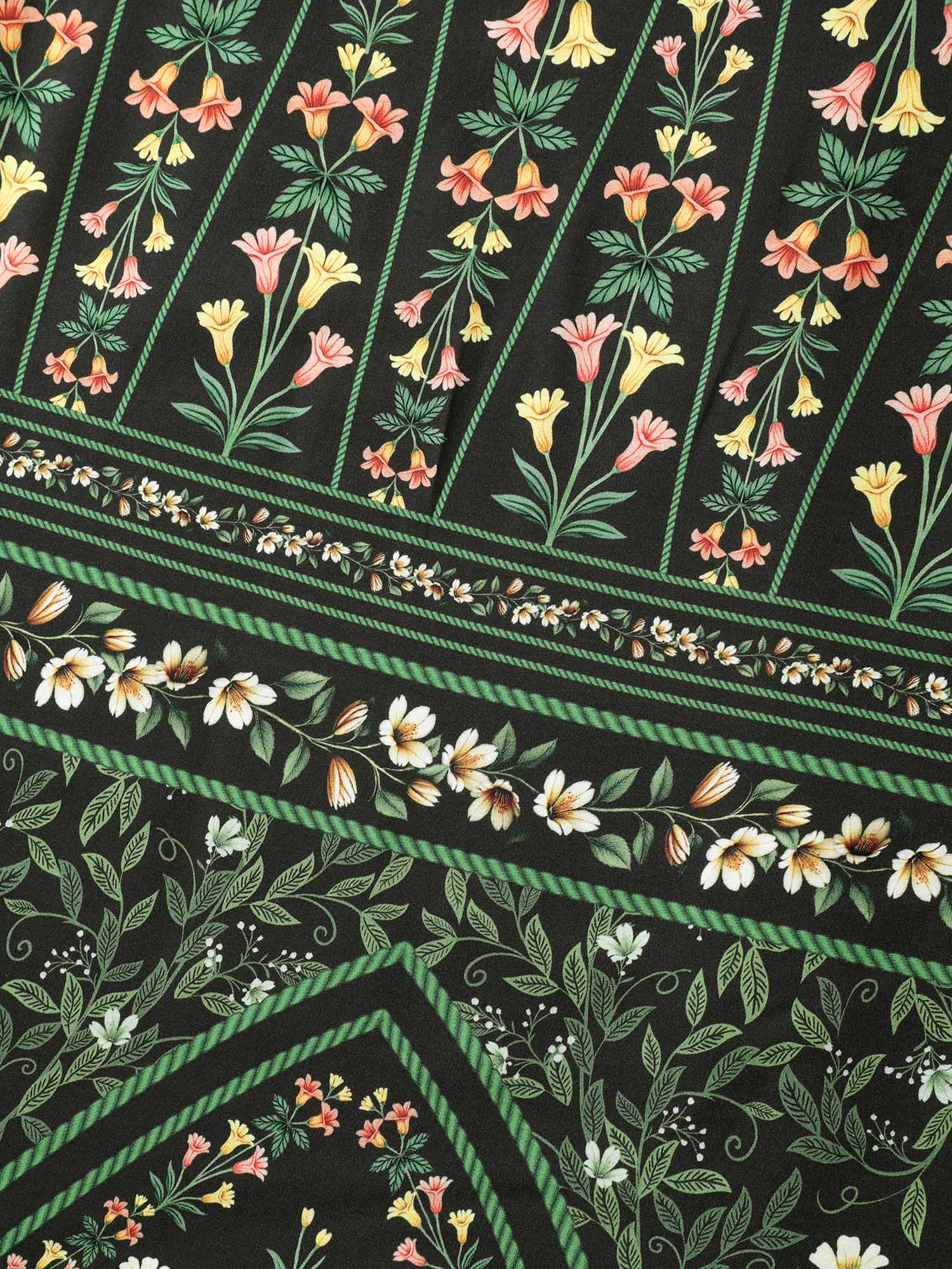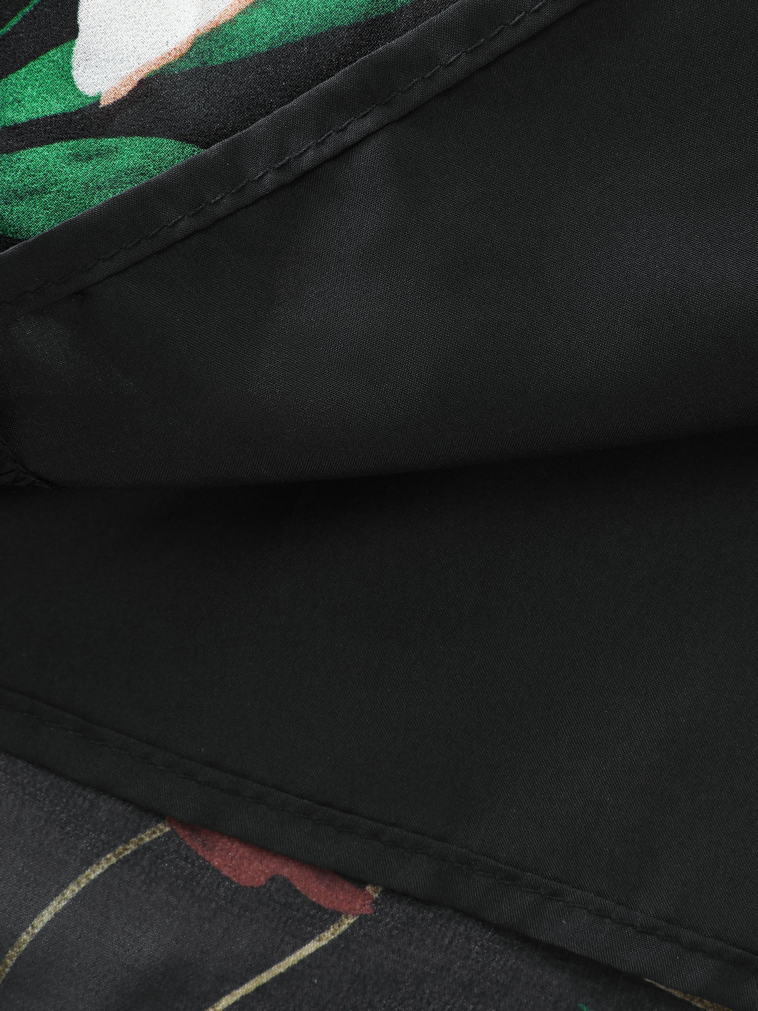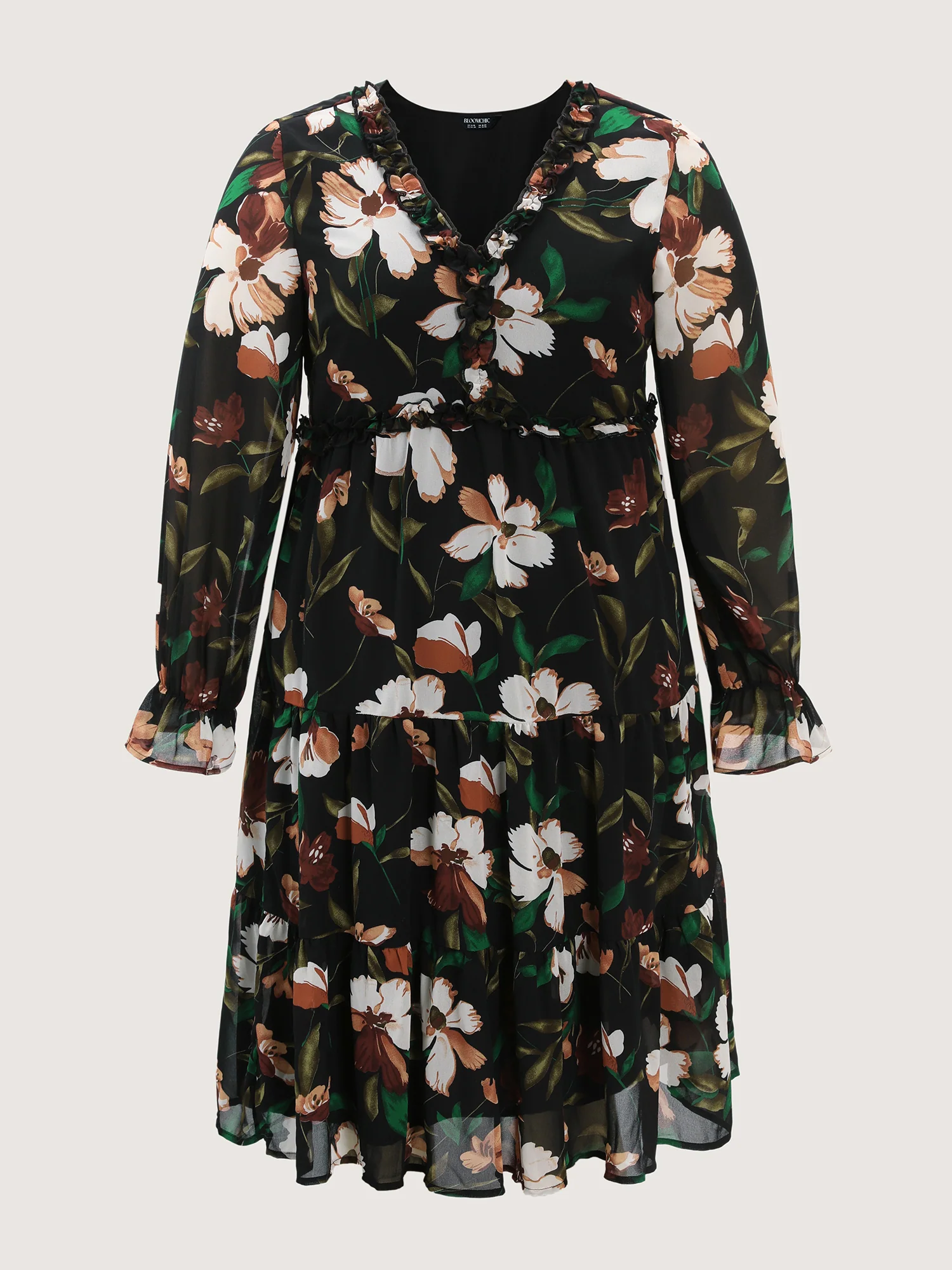 Tropical Floral Print Ruffled Neckline Midi Dress
