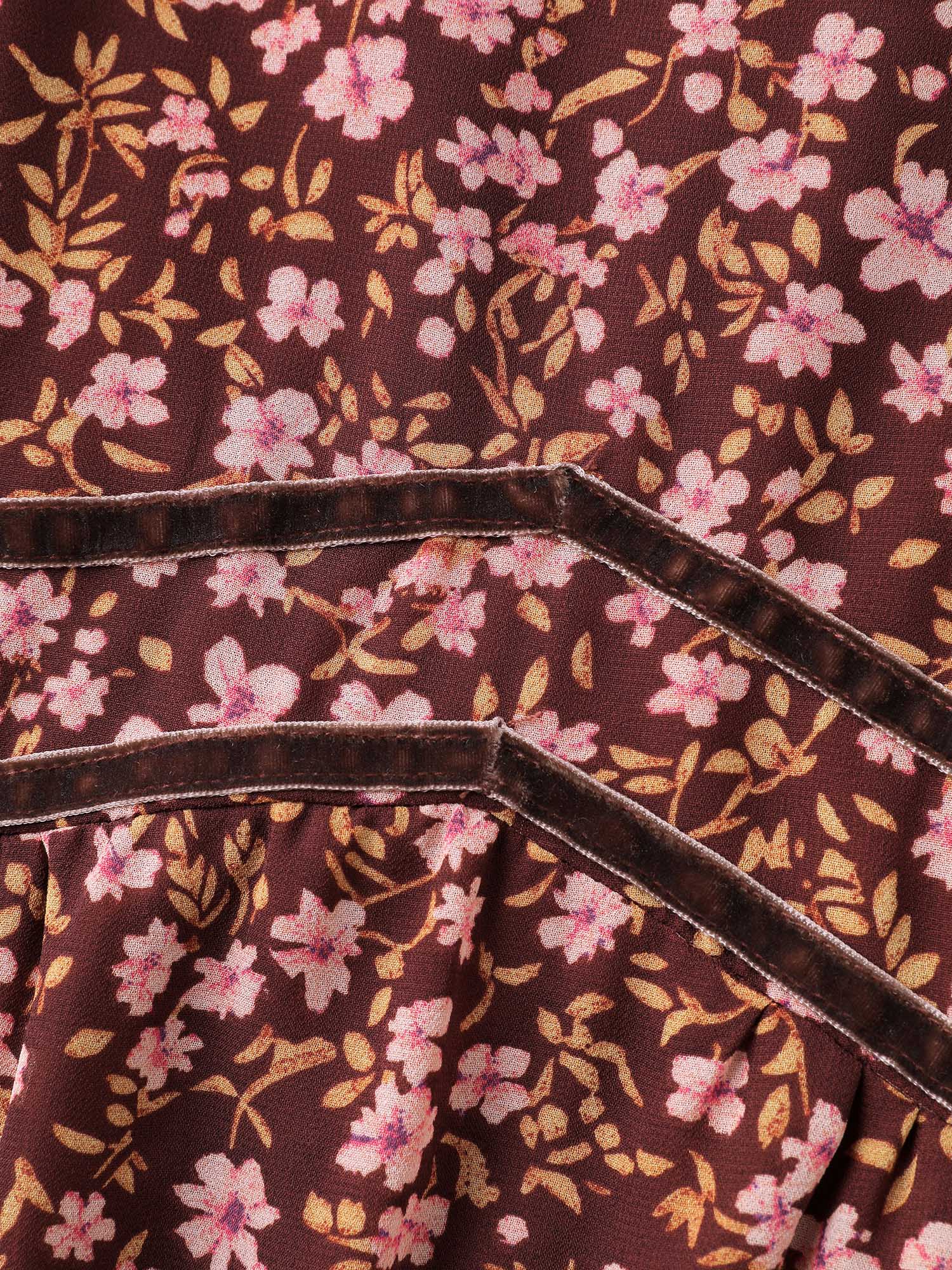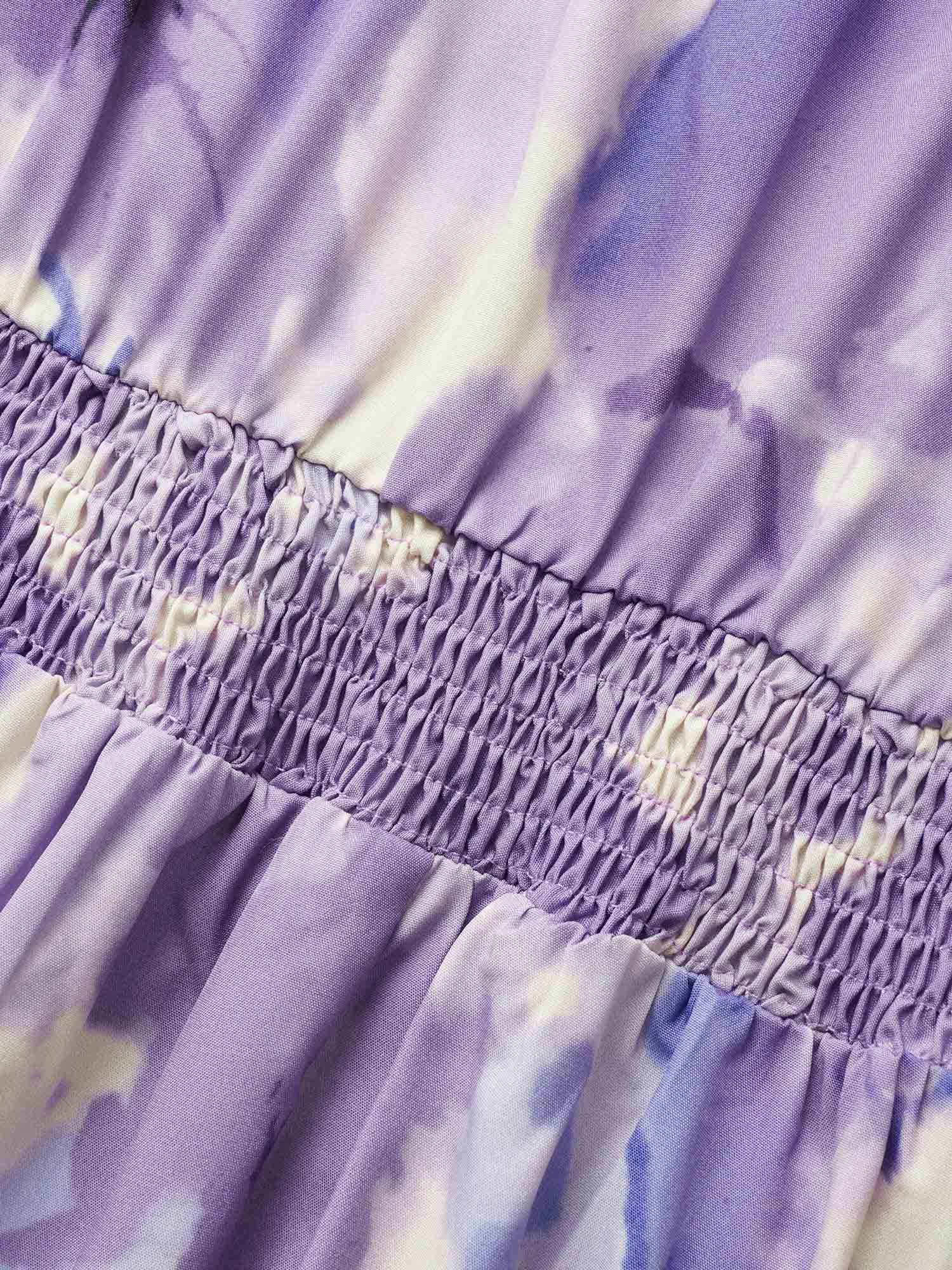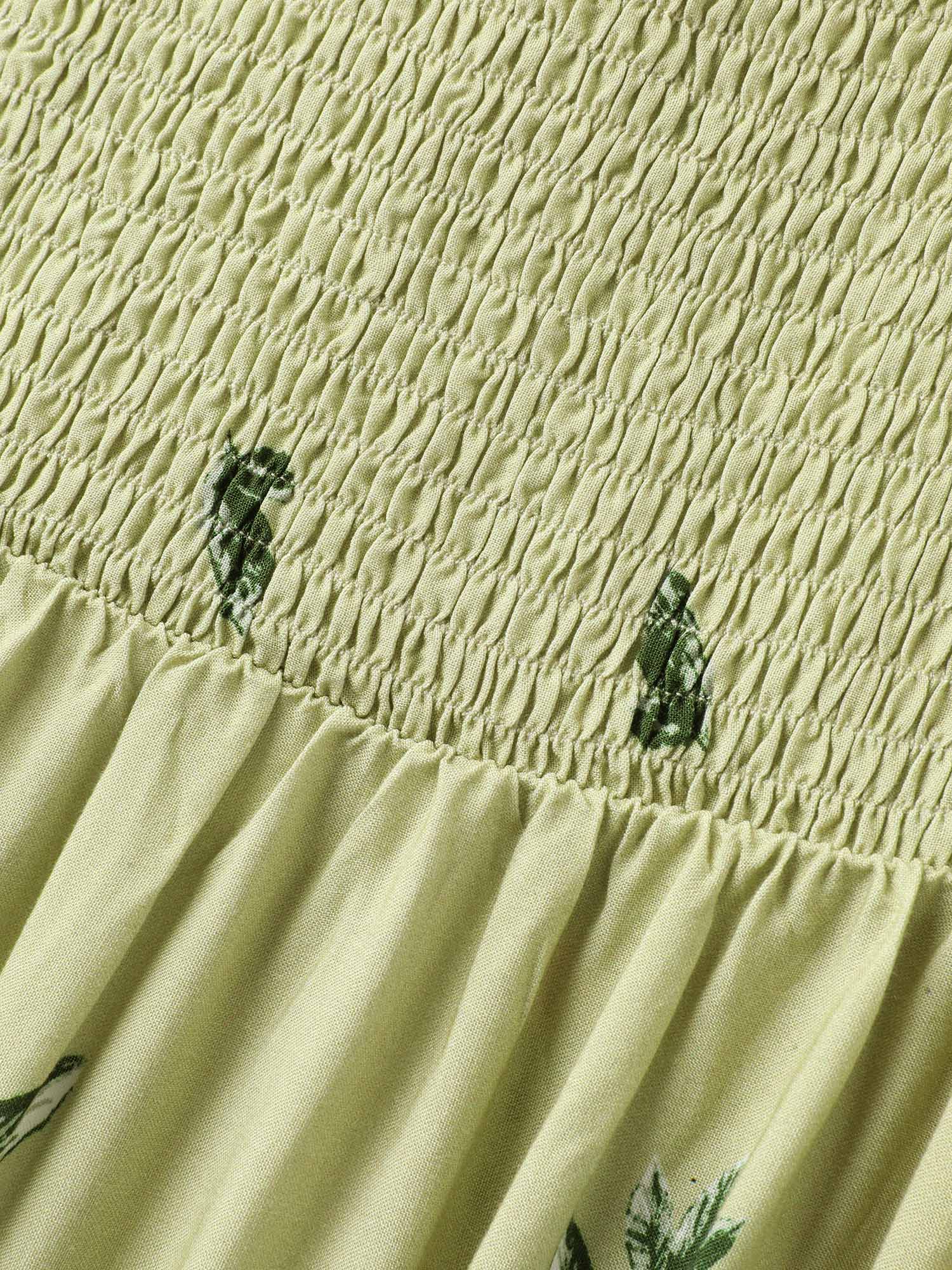 Floral Print Shirred Waist Ruffled Maxi Dress
