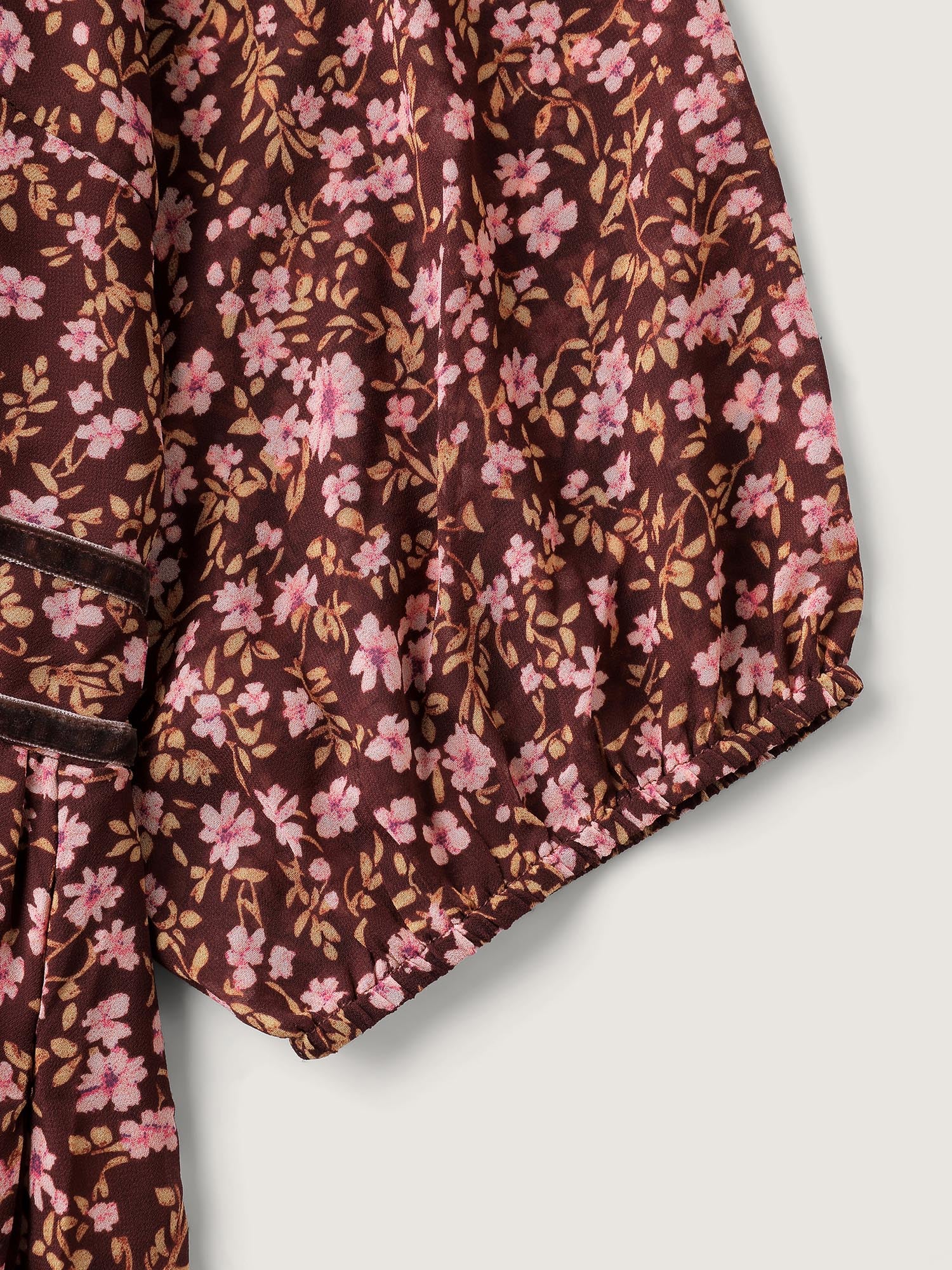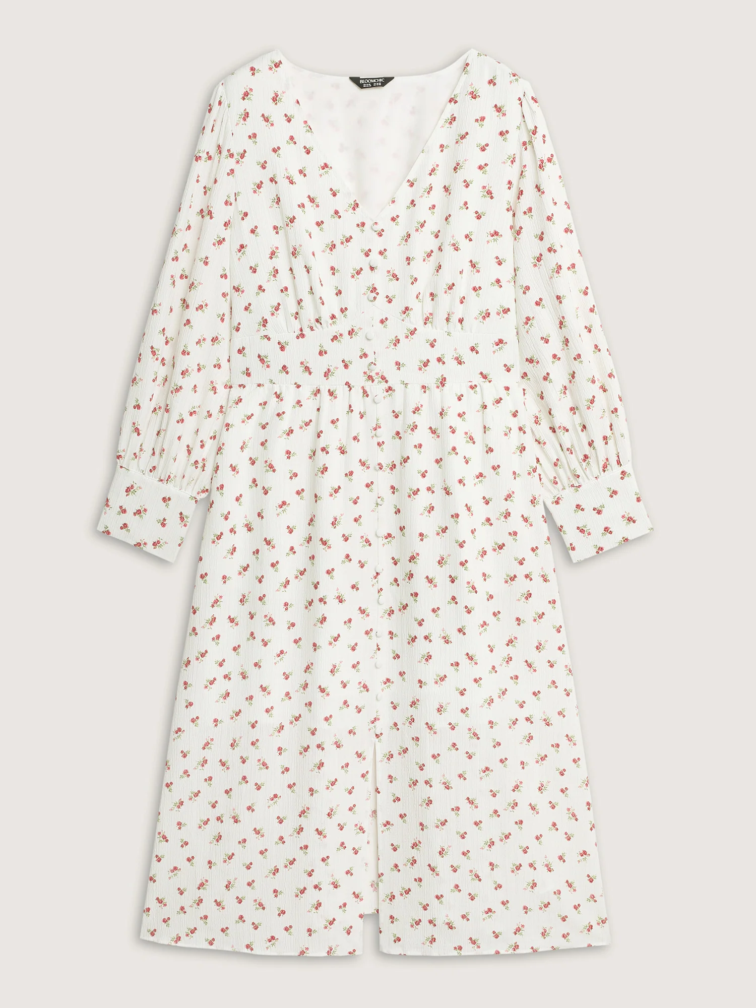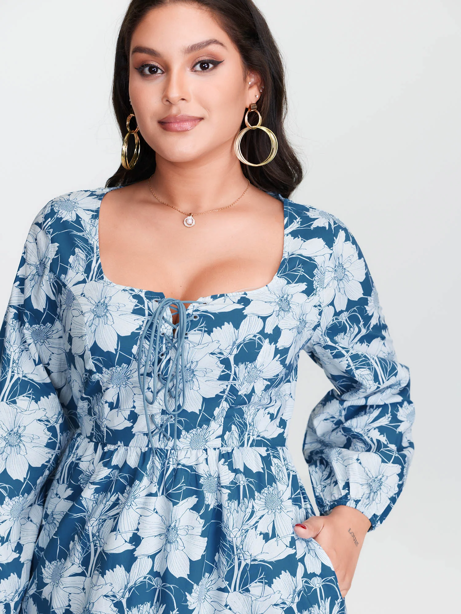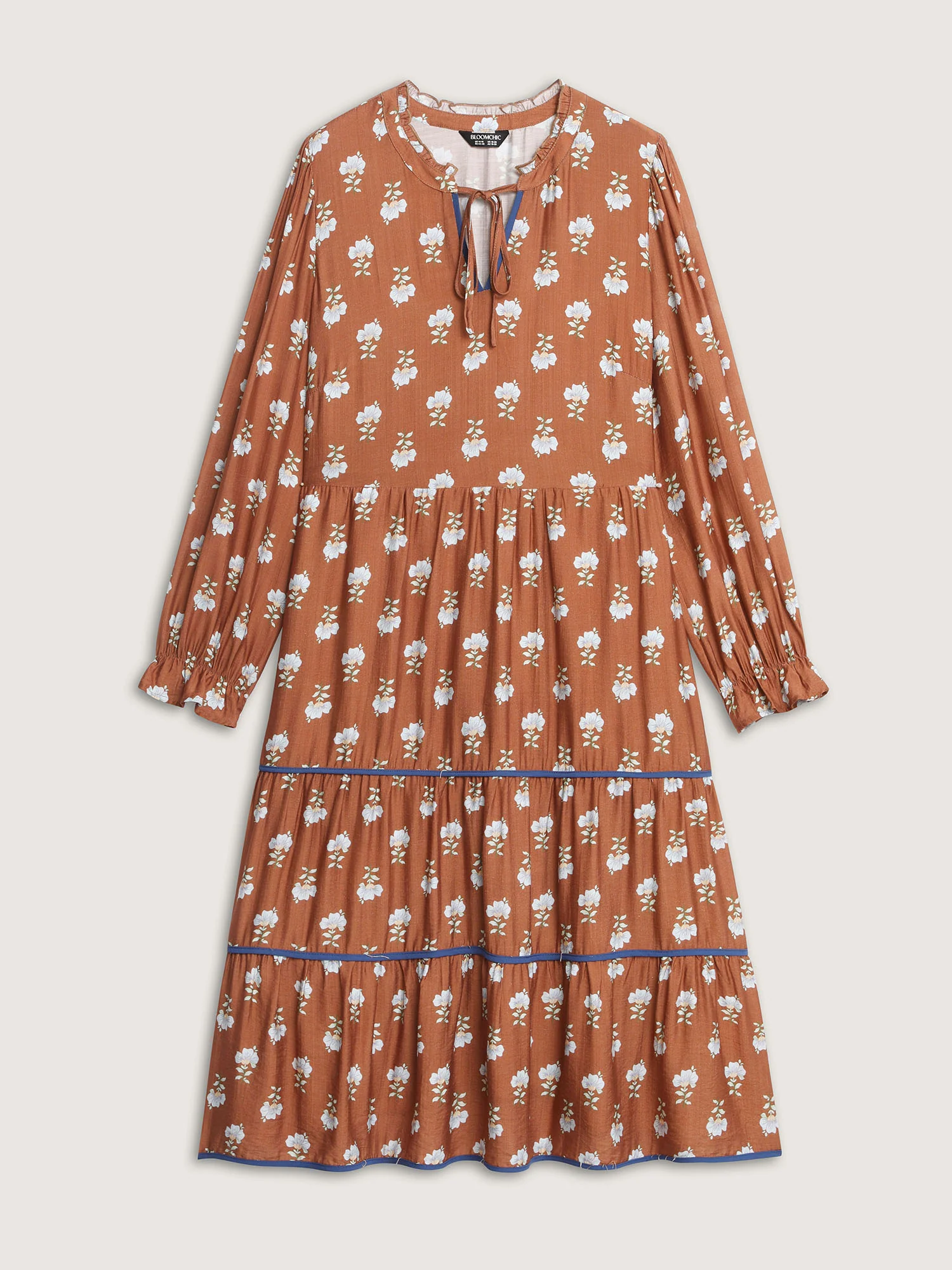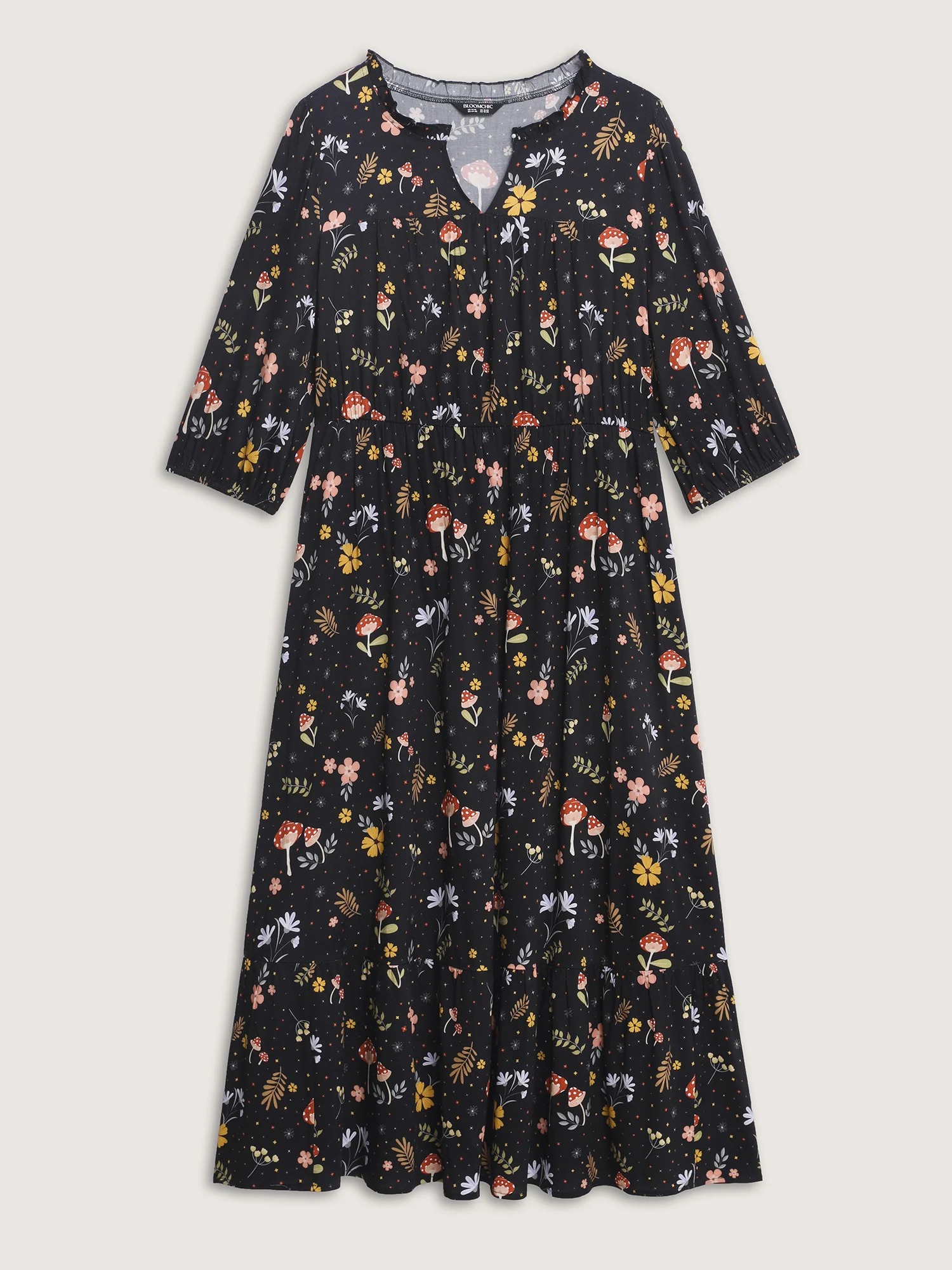 Supersoft Floral Print Drawstring Neckline Midi Dress