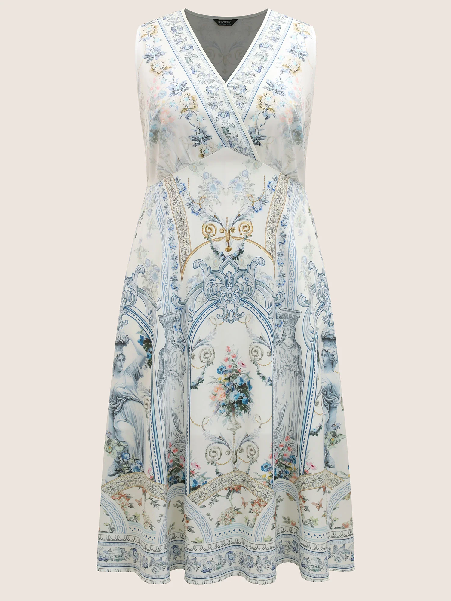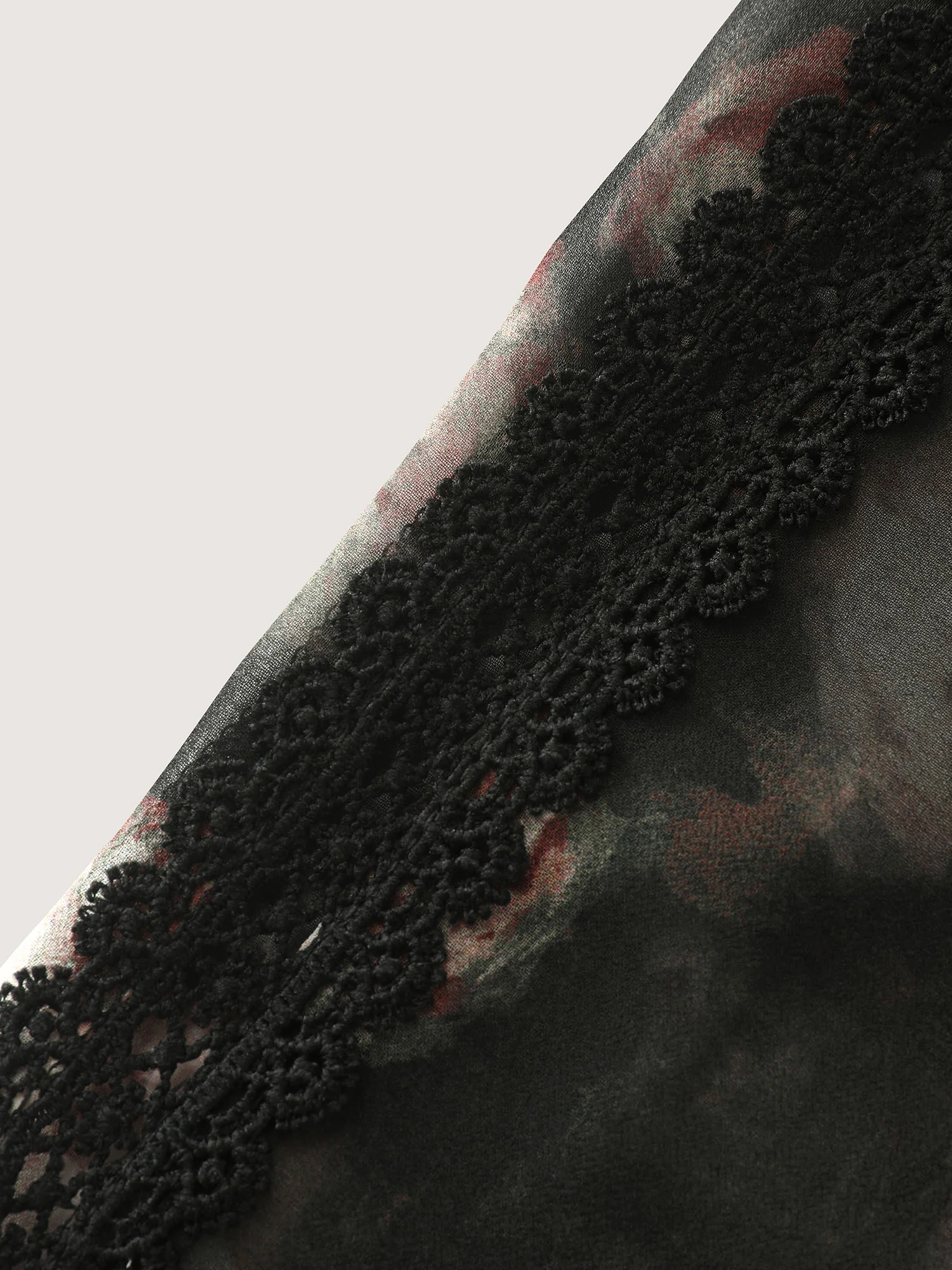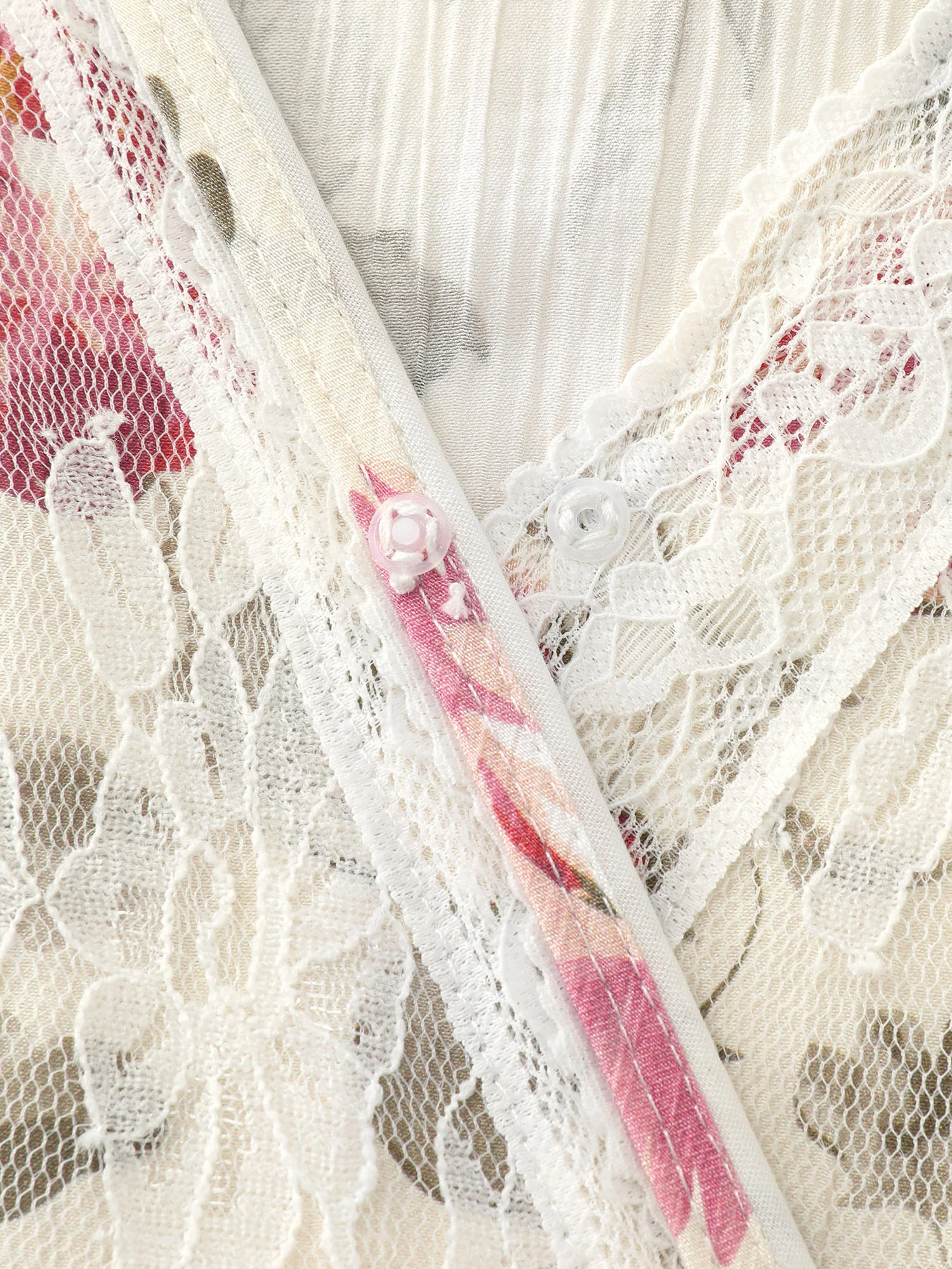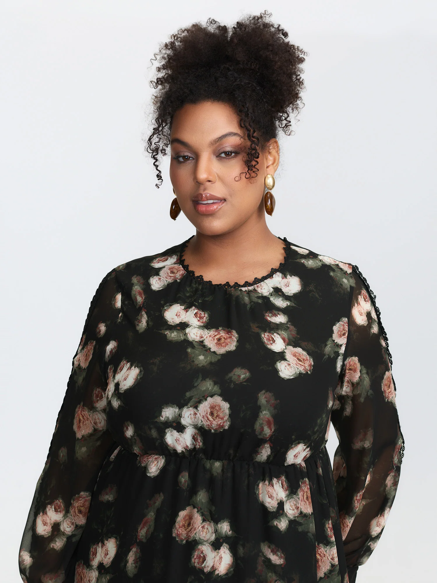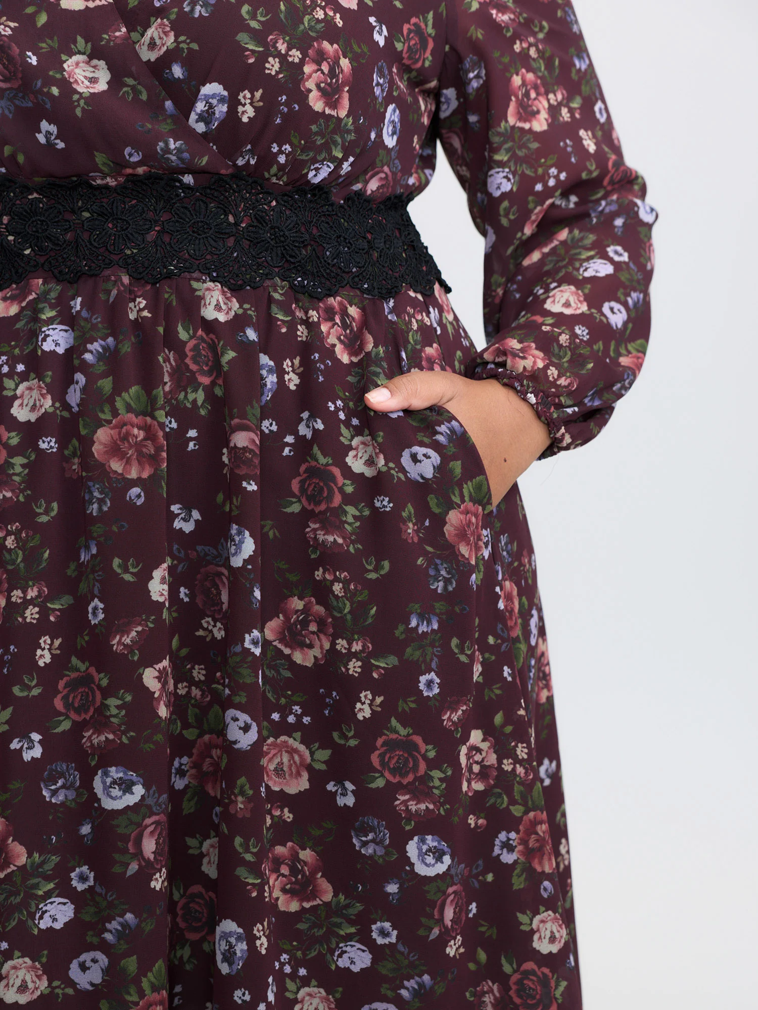 Supersoft Floral Print Lace Trim Knee-Length Dress