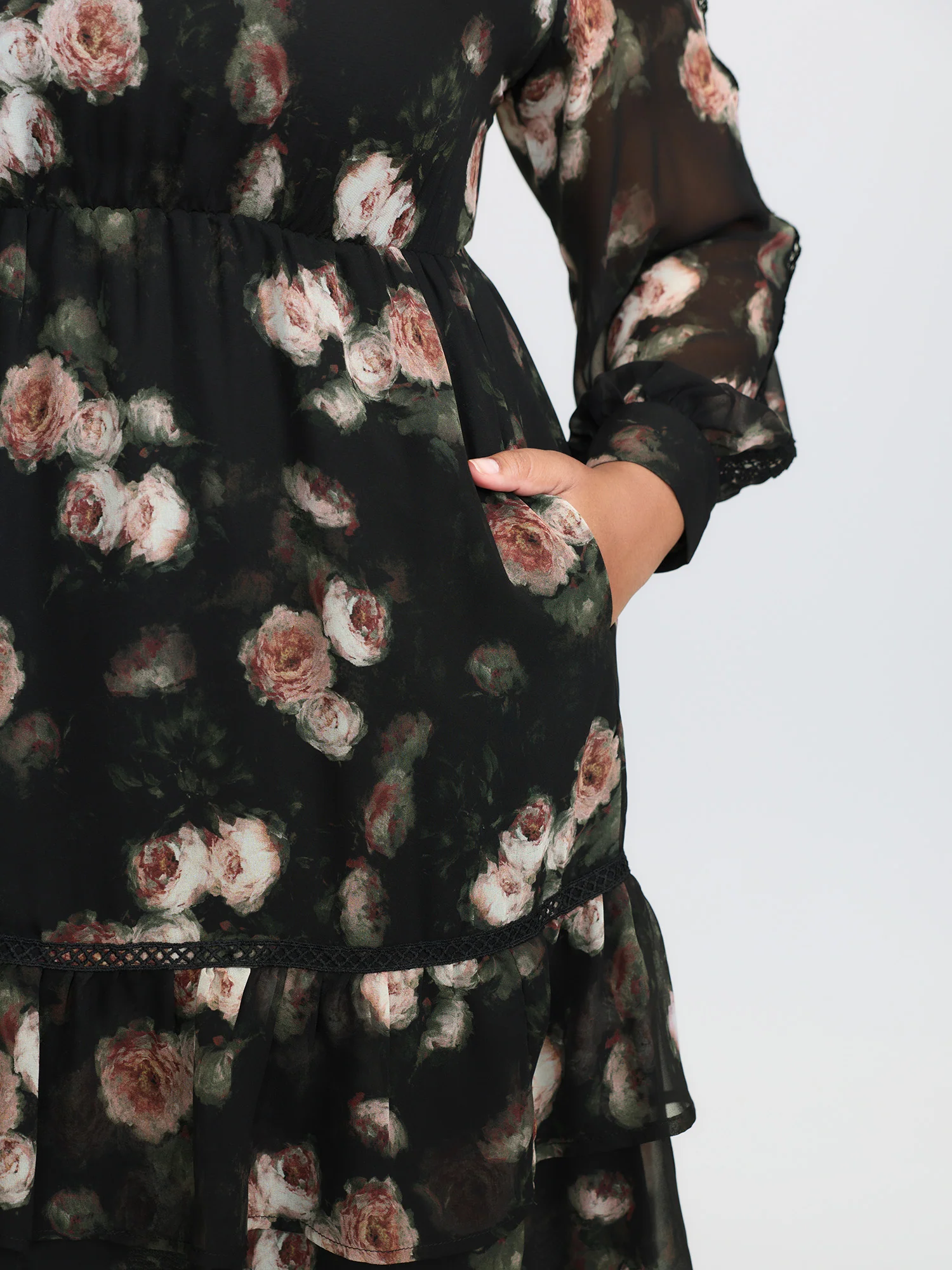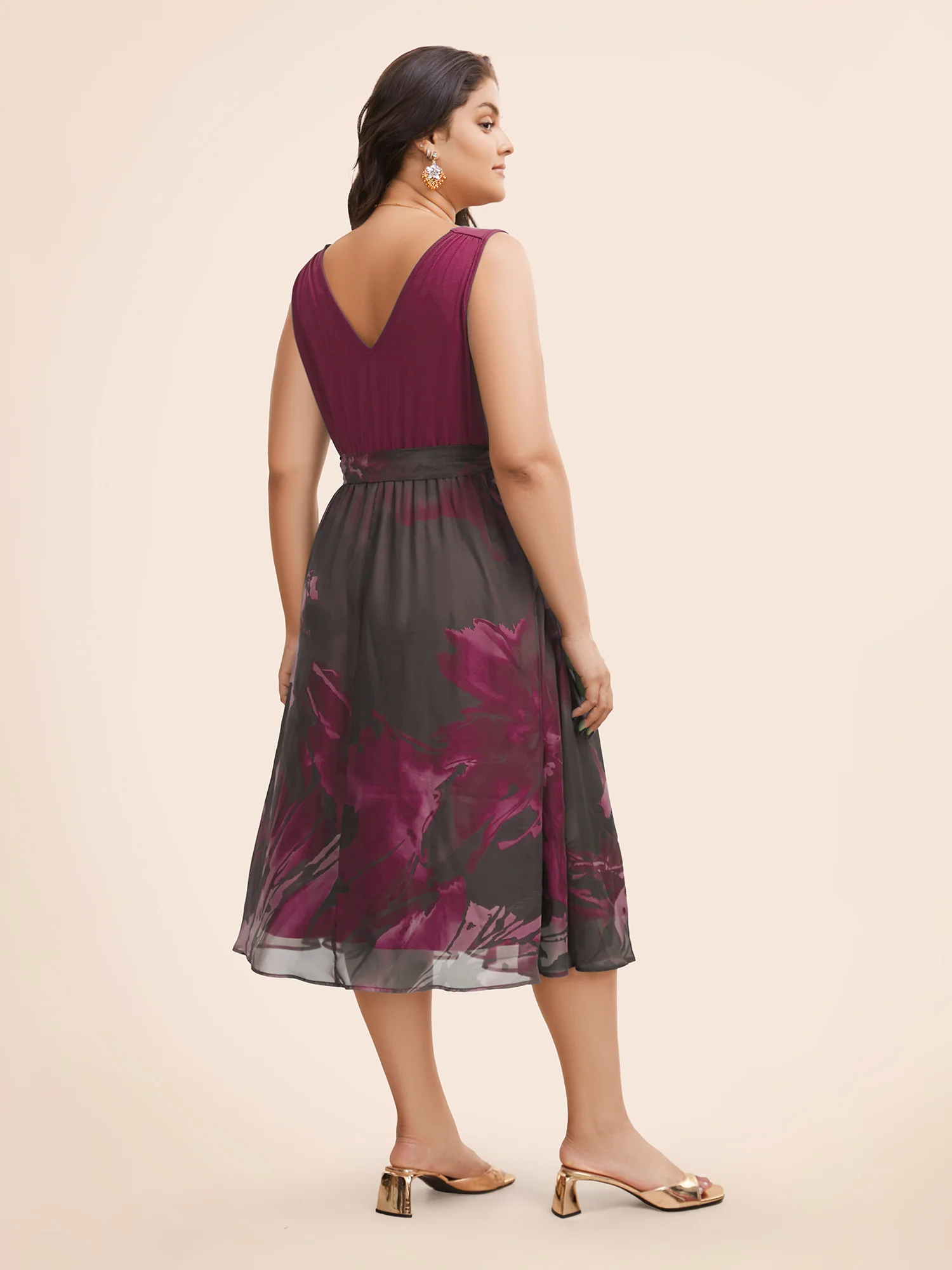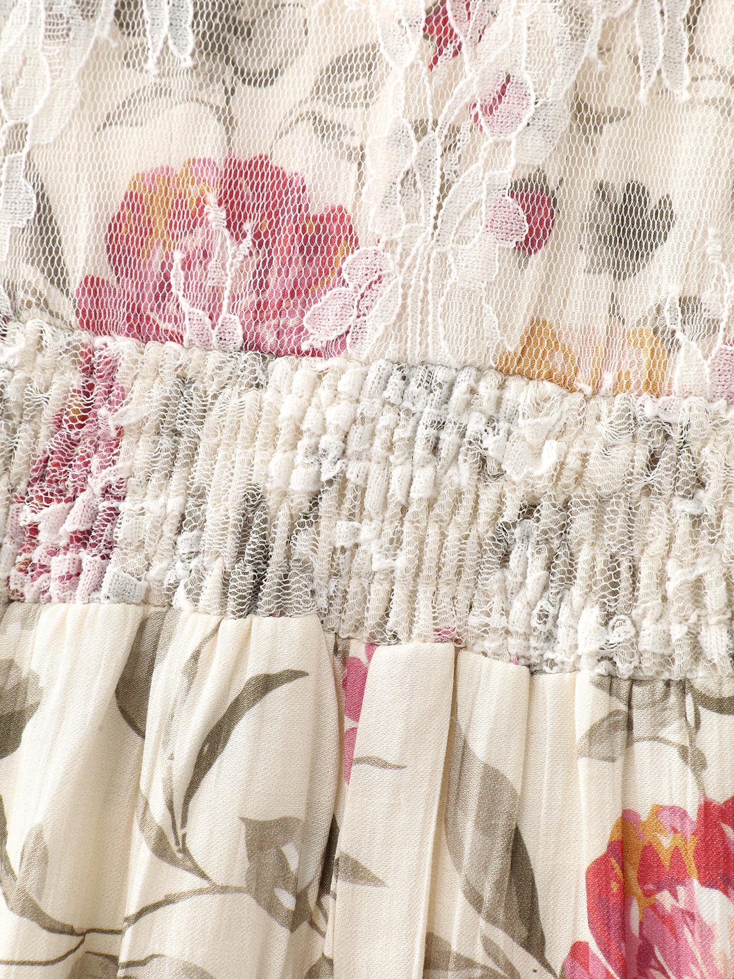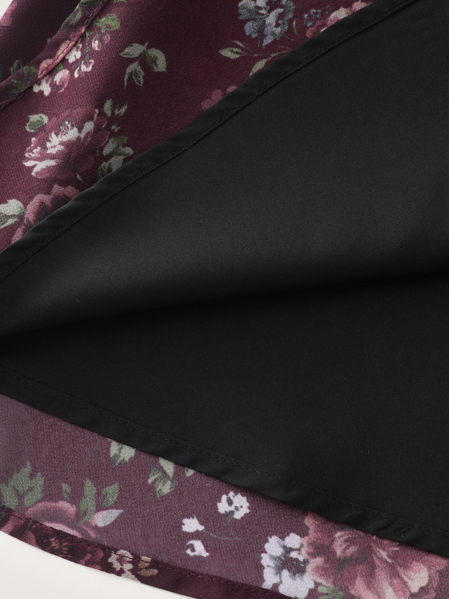 Floral Wrap Patchwork Ruffle Cap Sleeve Dress
