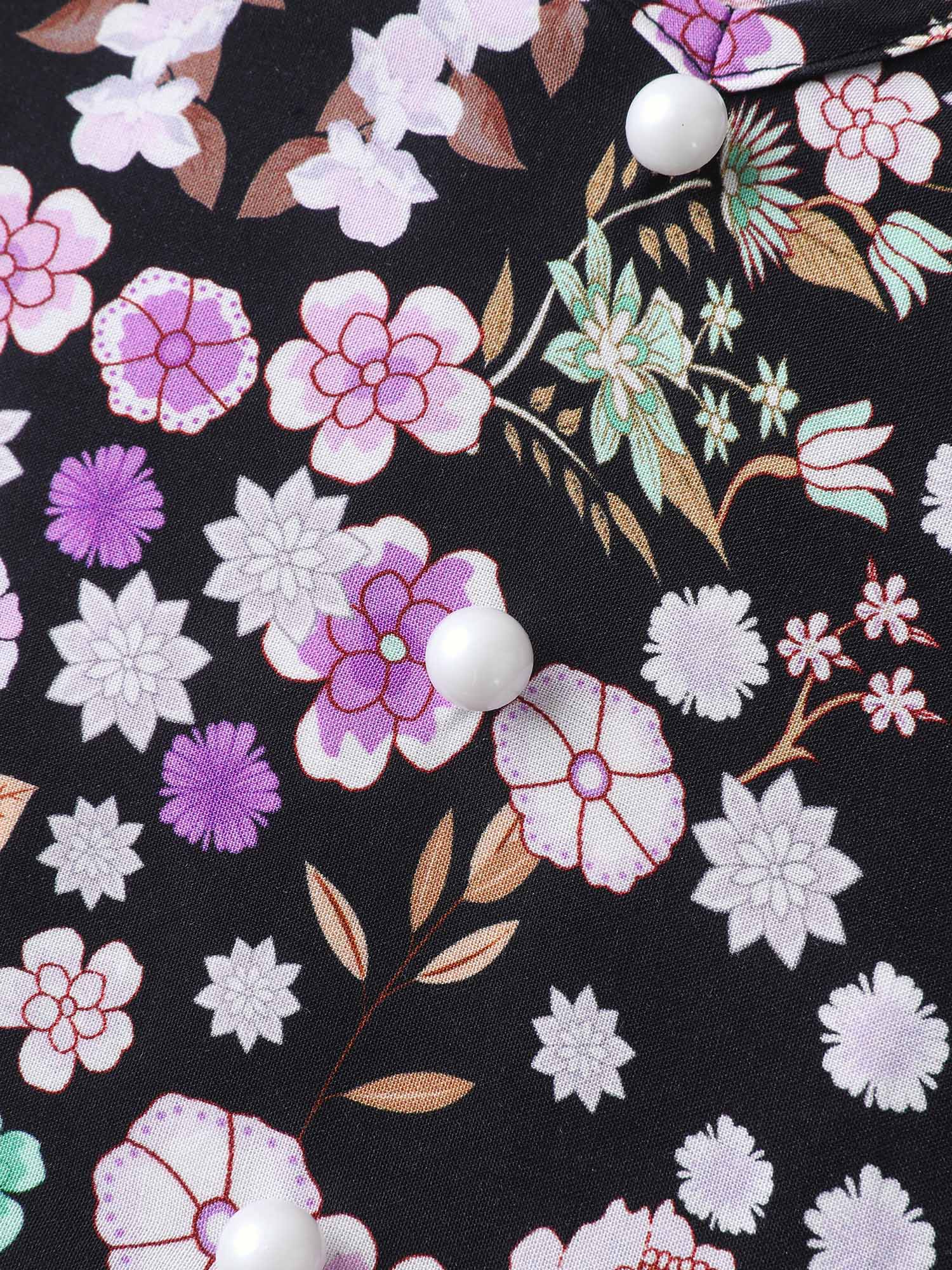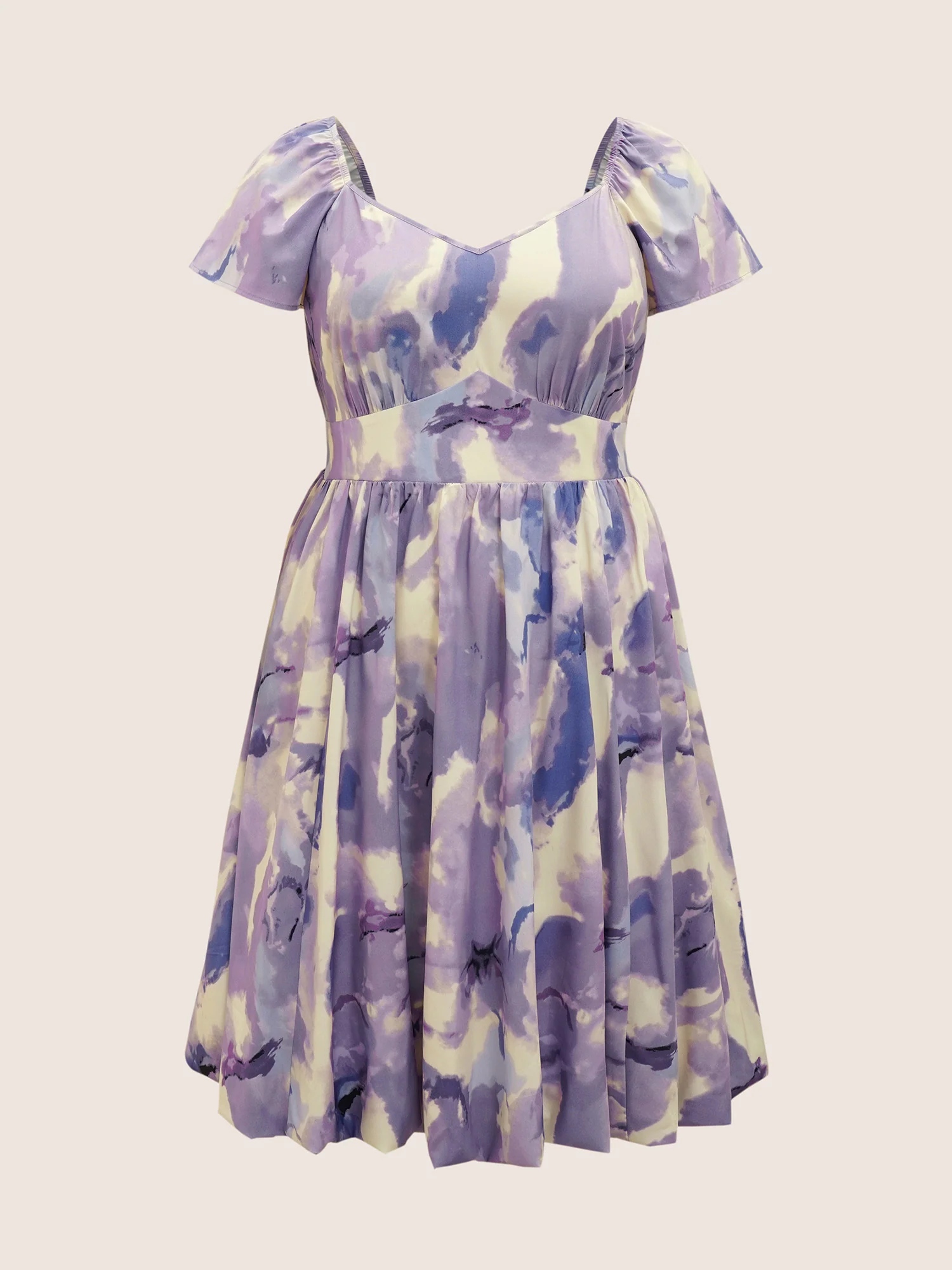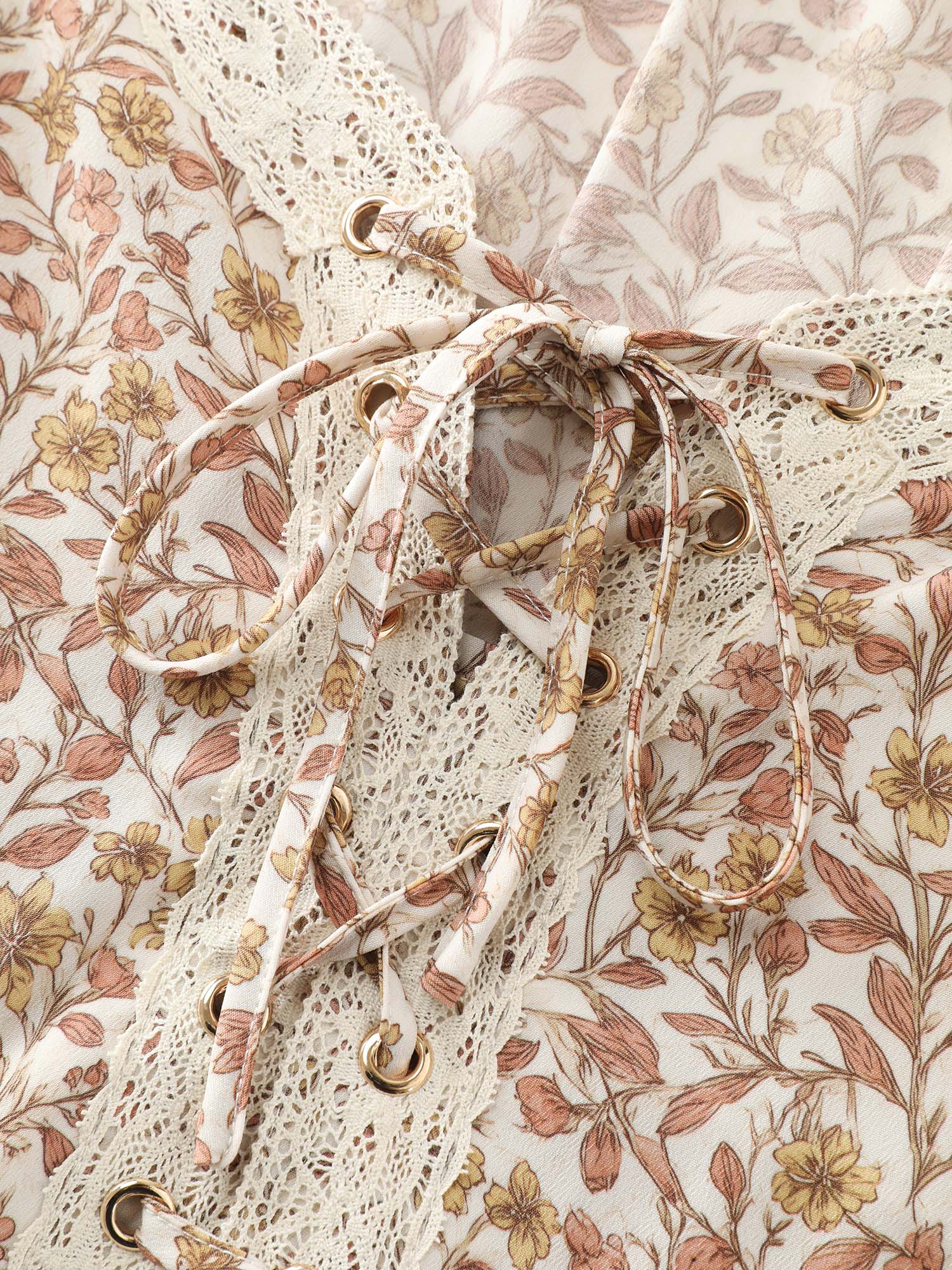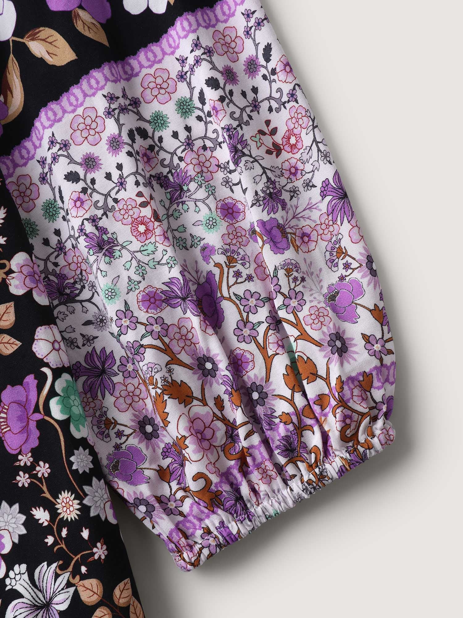 Floral Wrap Patchwork Ruffle Cap Sleeve Dress