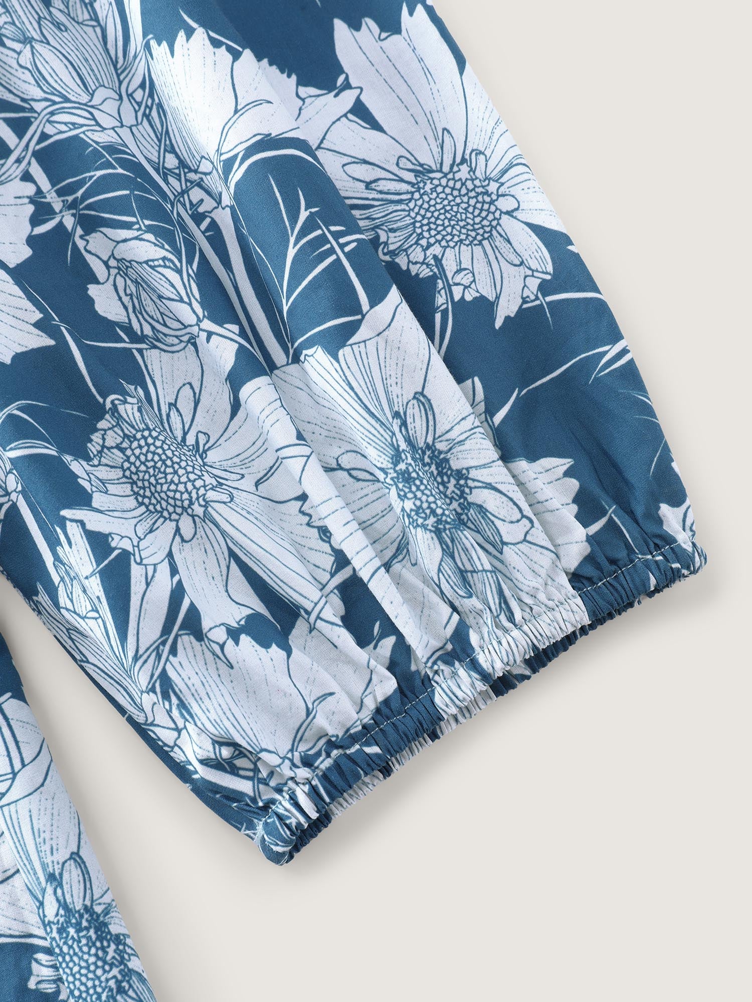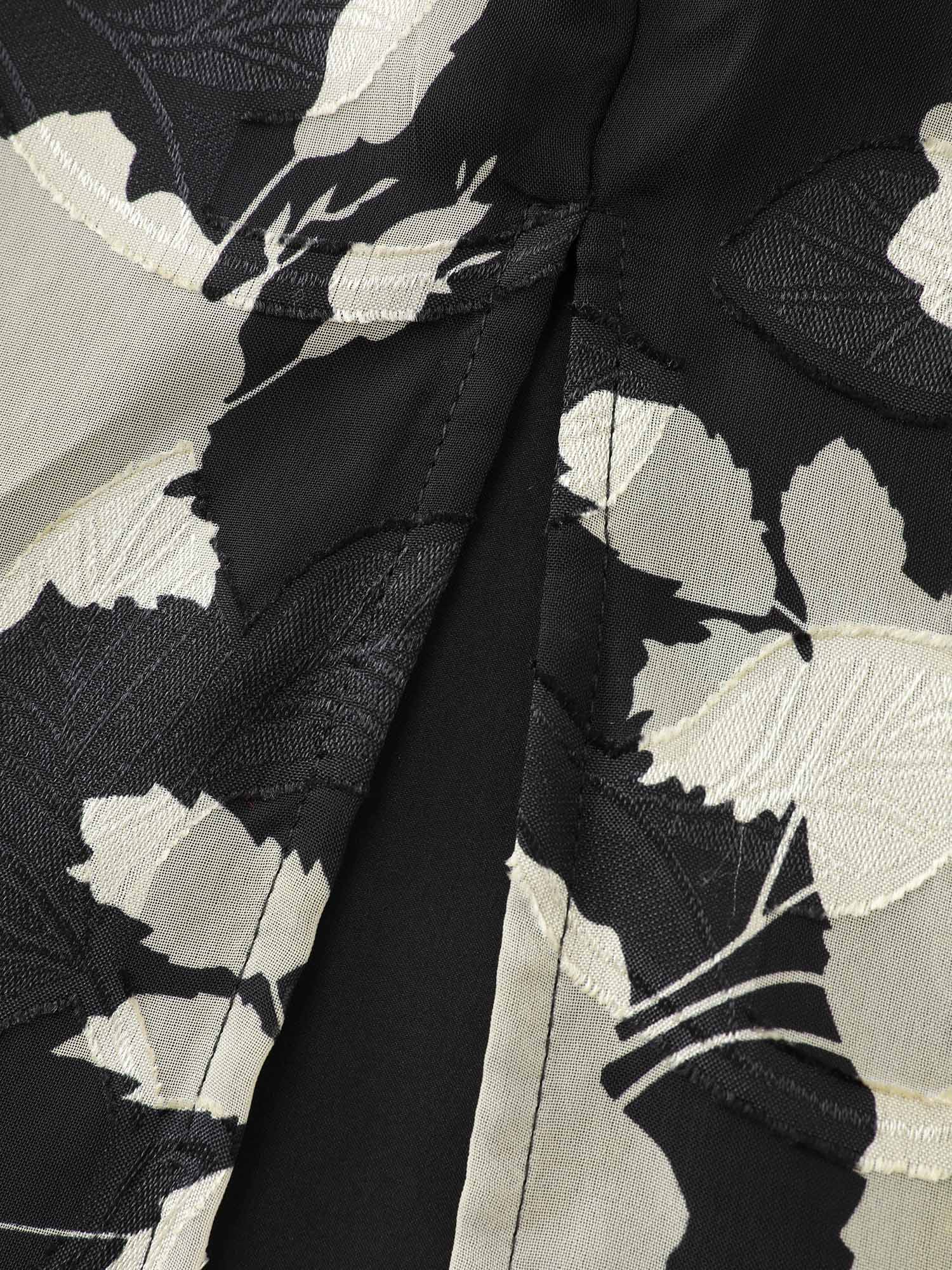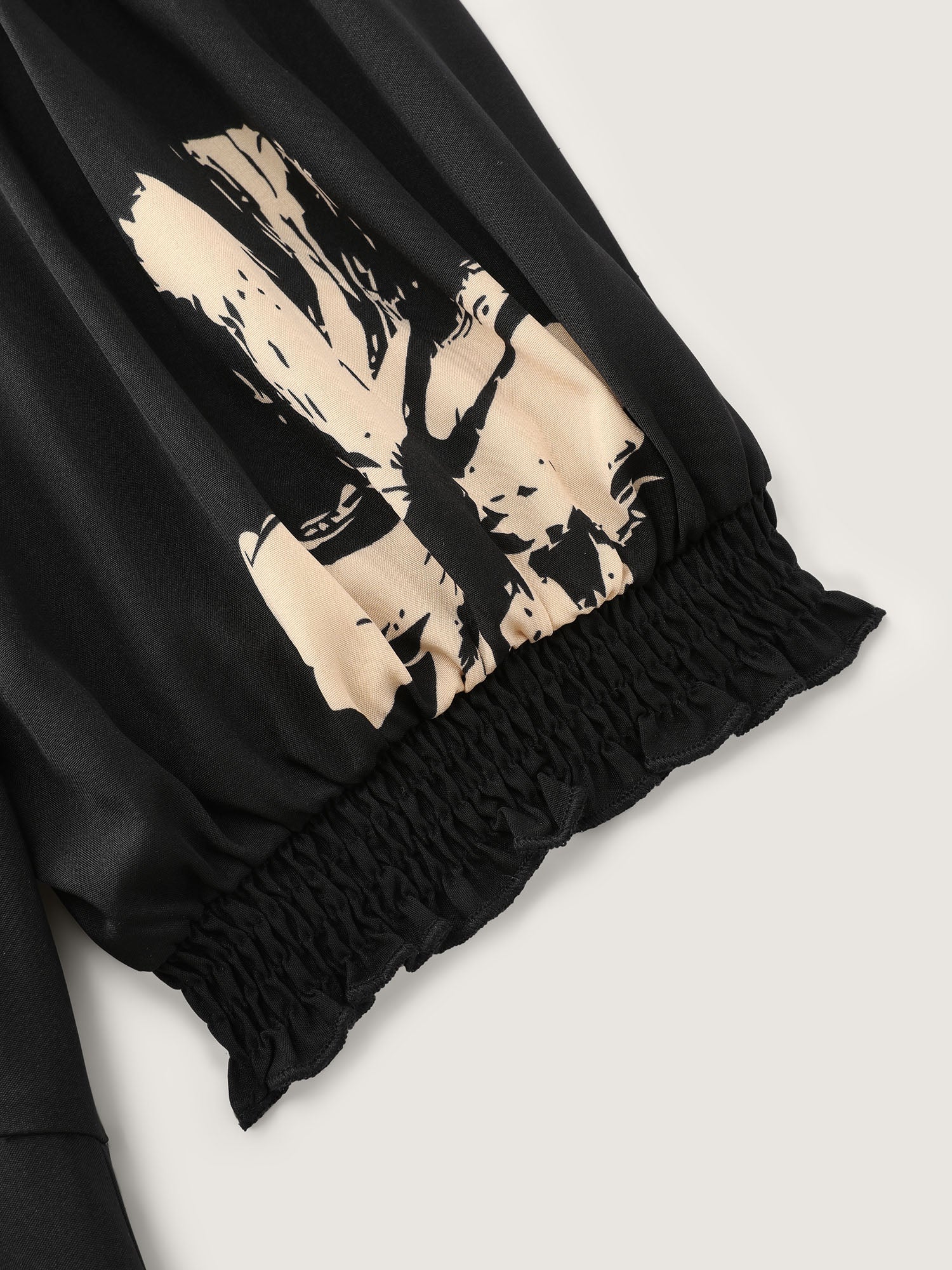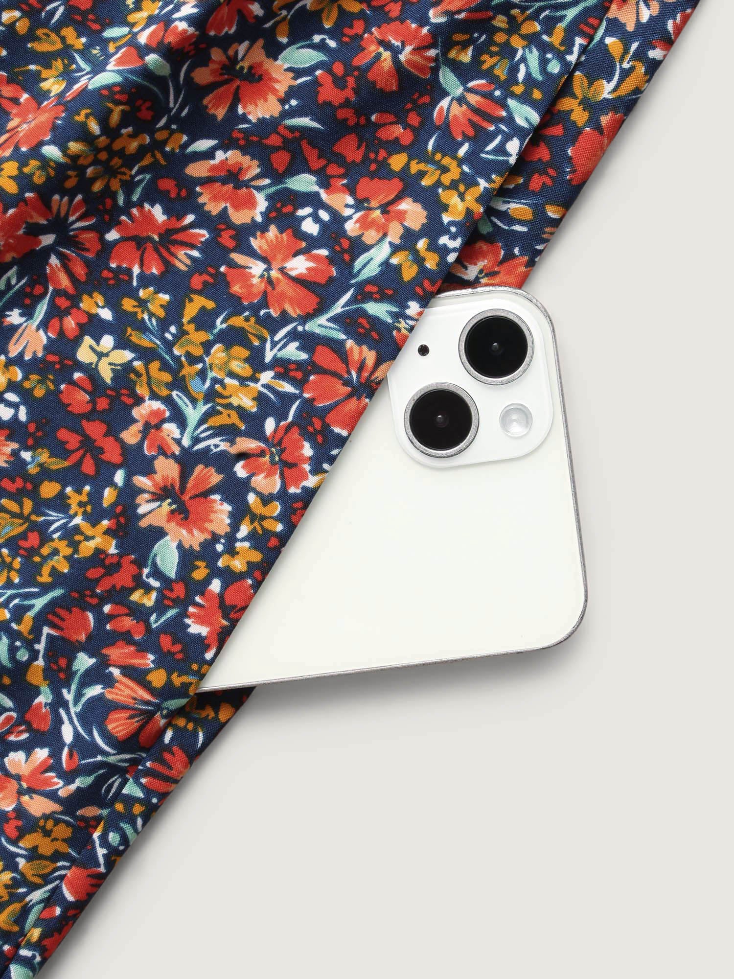 Silhouette Flower Print Shirred Pockets Midi Dress