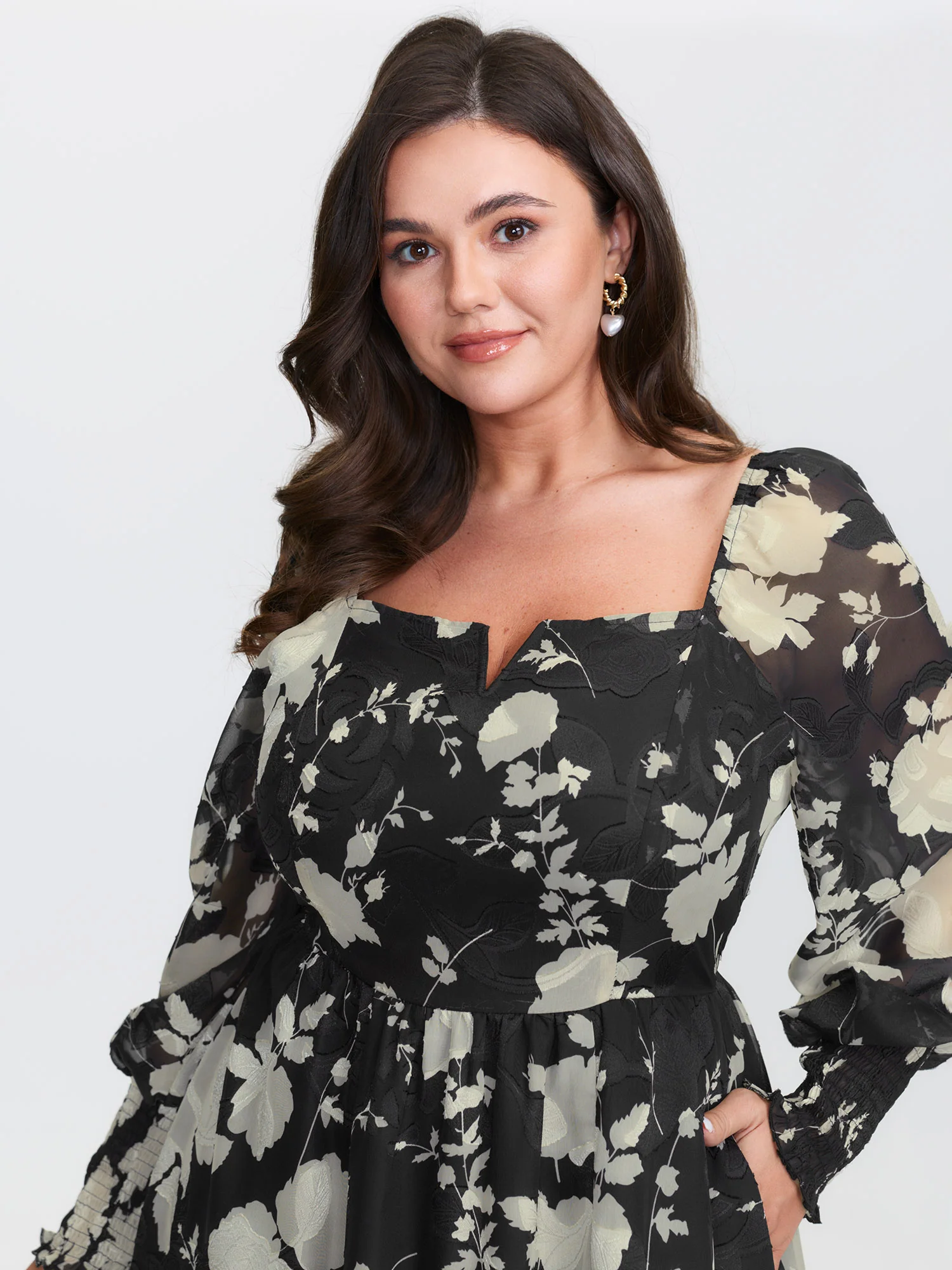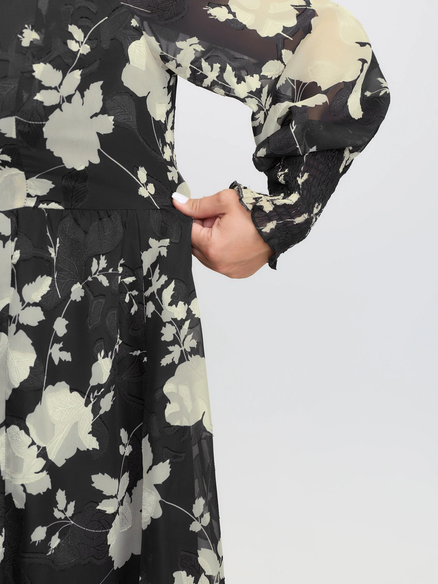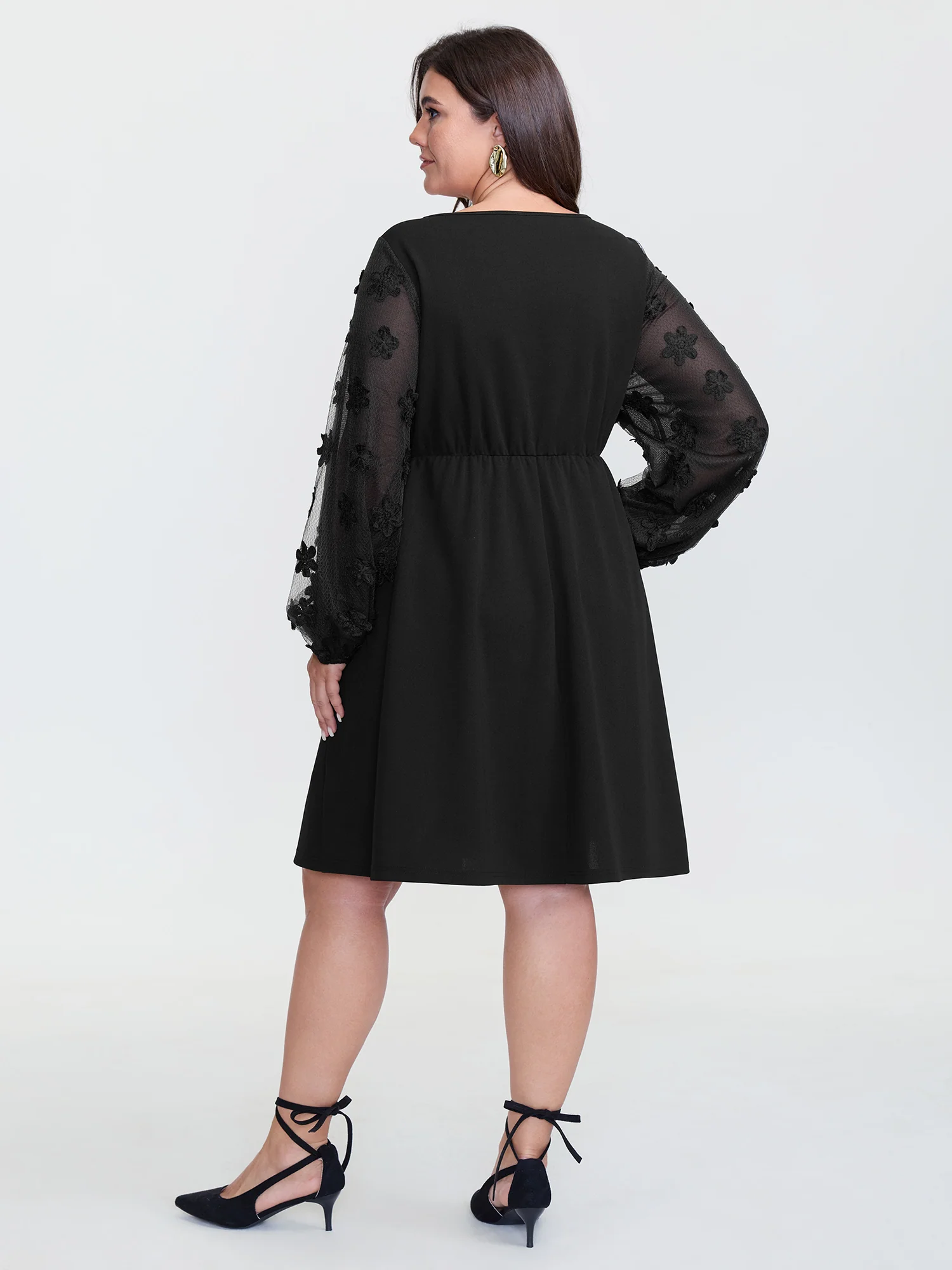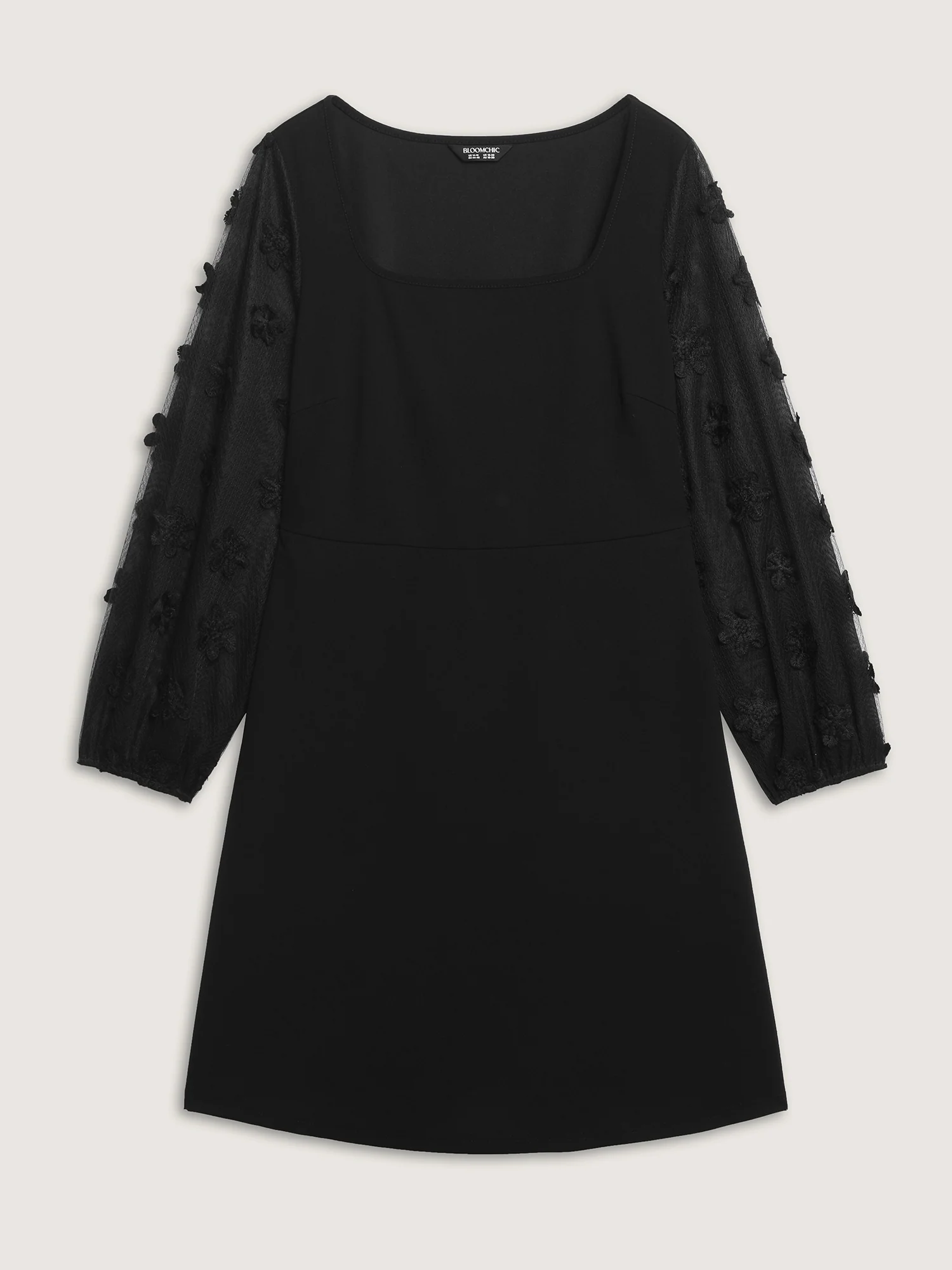 Sheer Sleeve 3D Floral Mesh Midi Dress