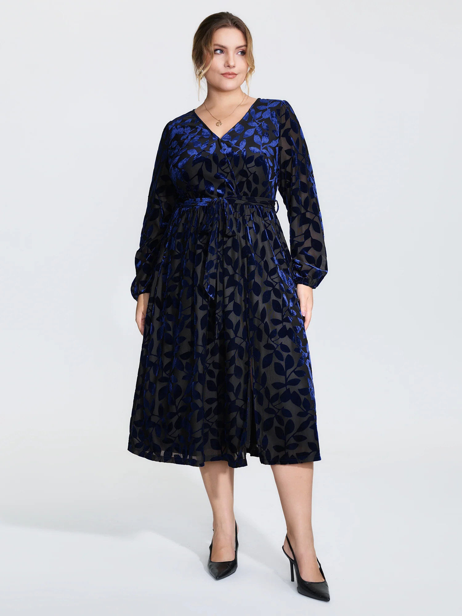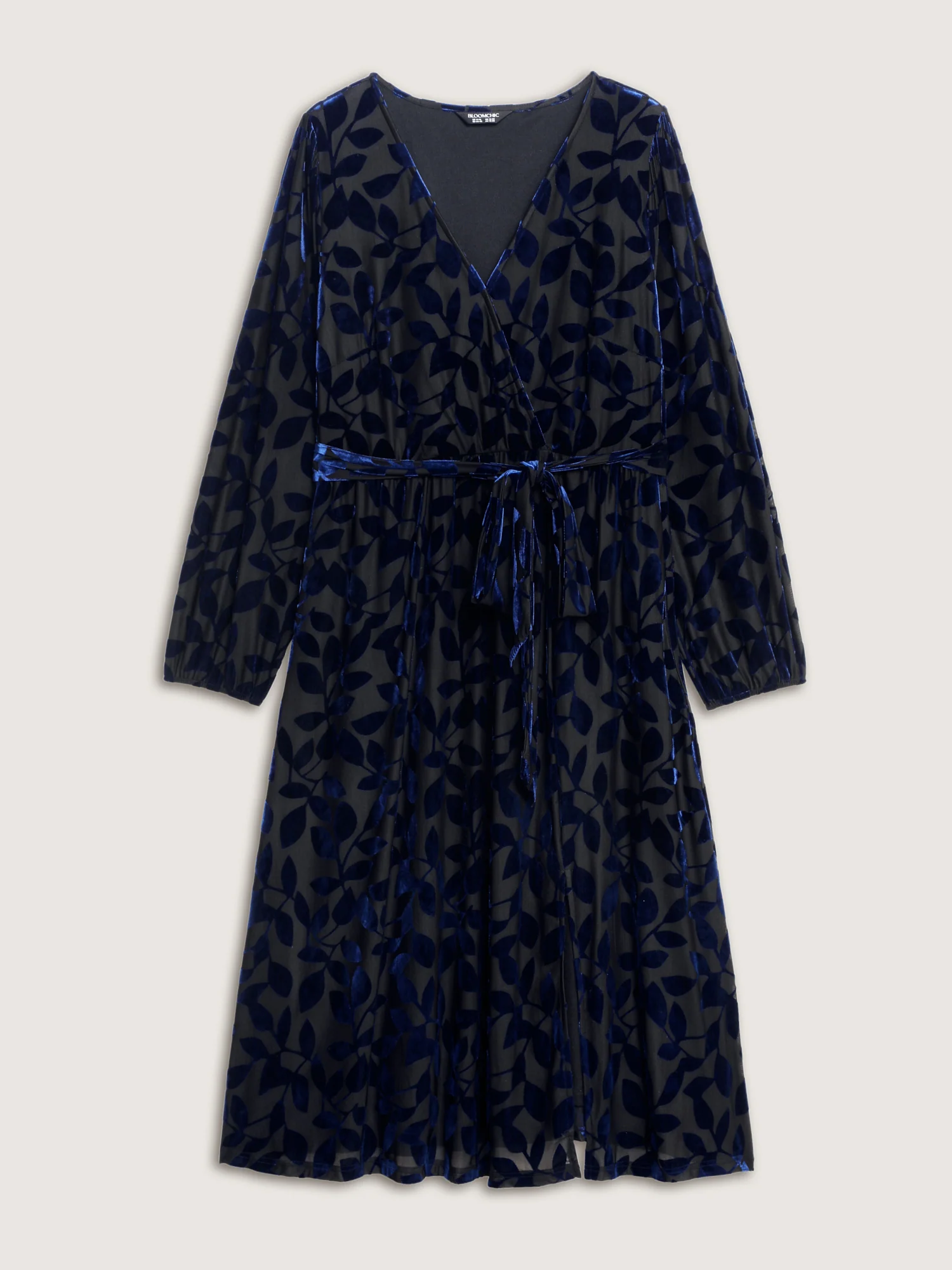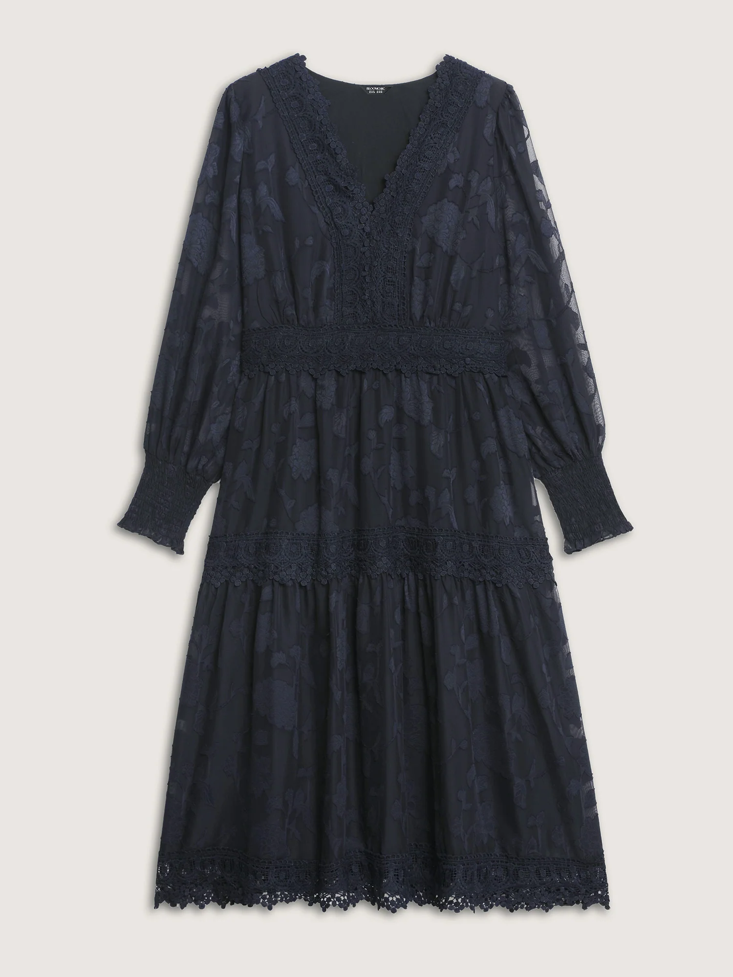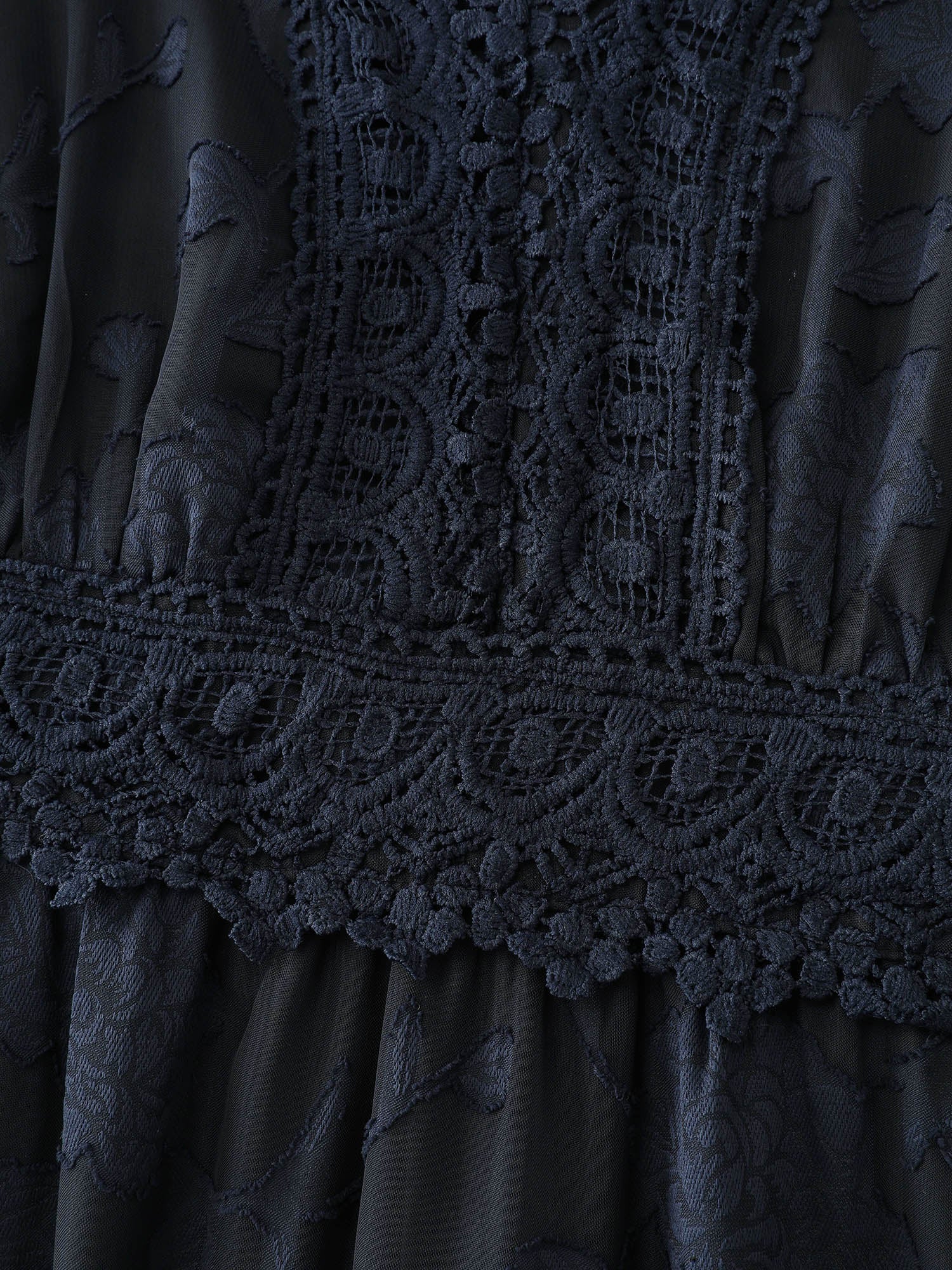 Sheer Sleeve 3D Floral Mesh Midi Dress