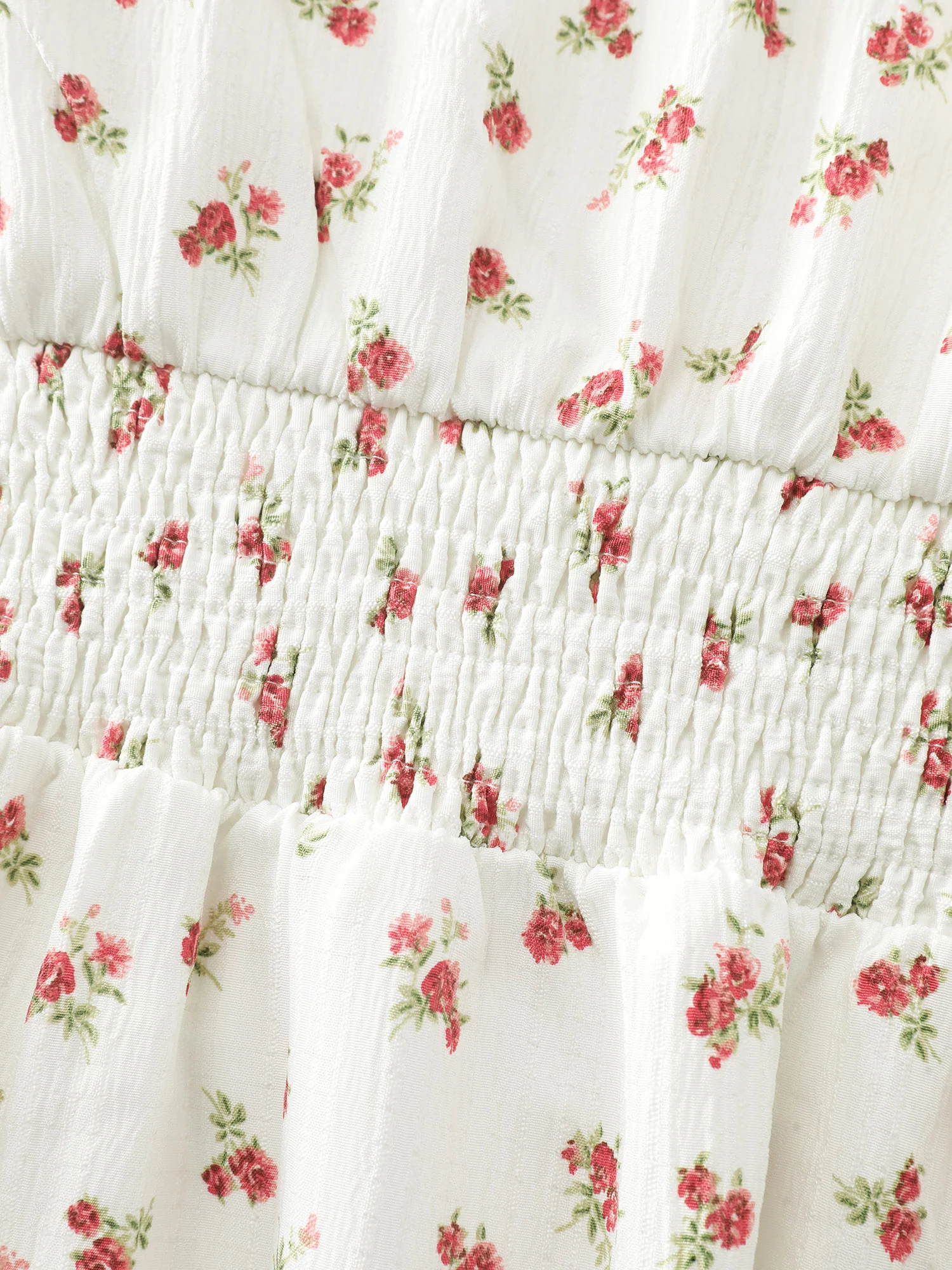 Ditsy Floral Adjustable Straps Elastic Waist Dress