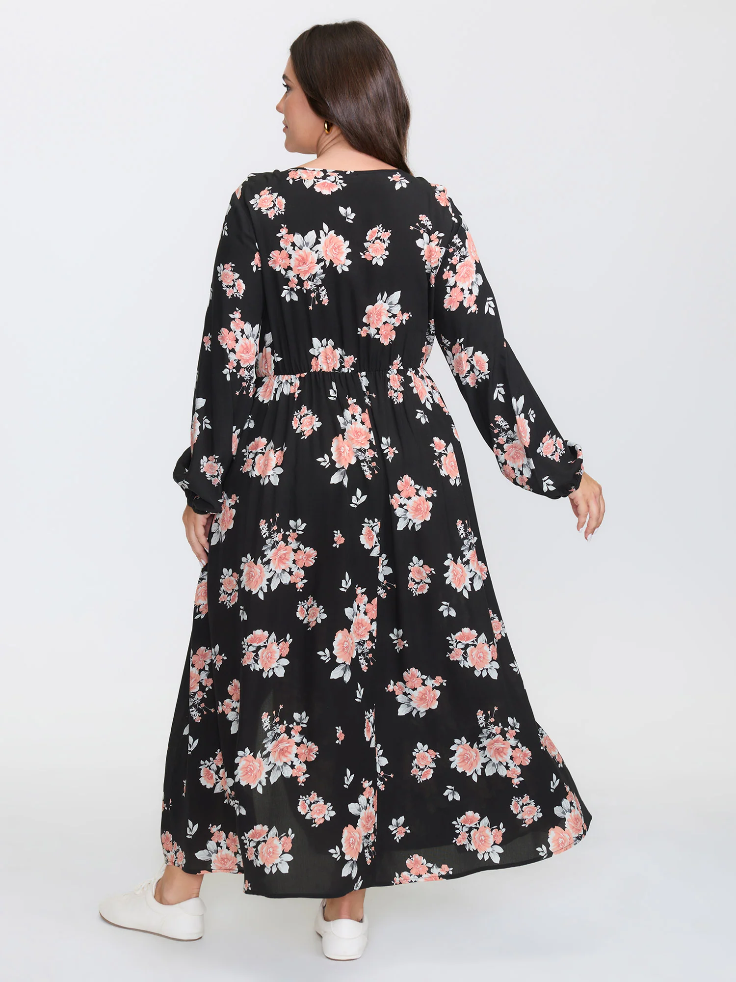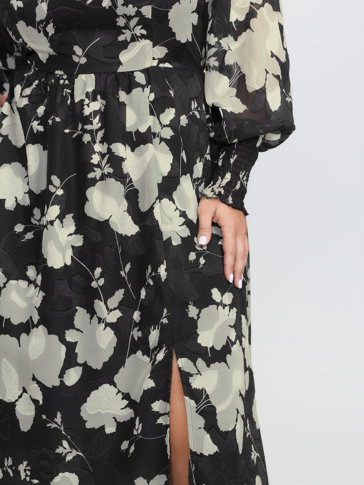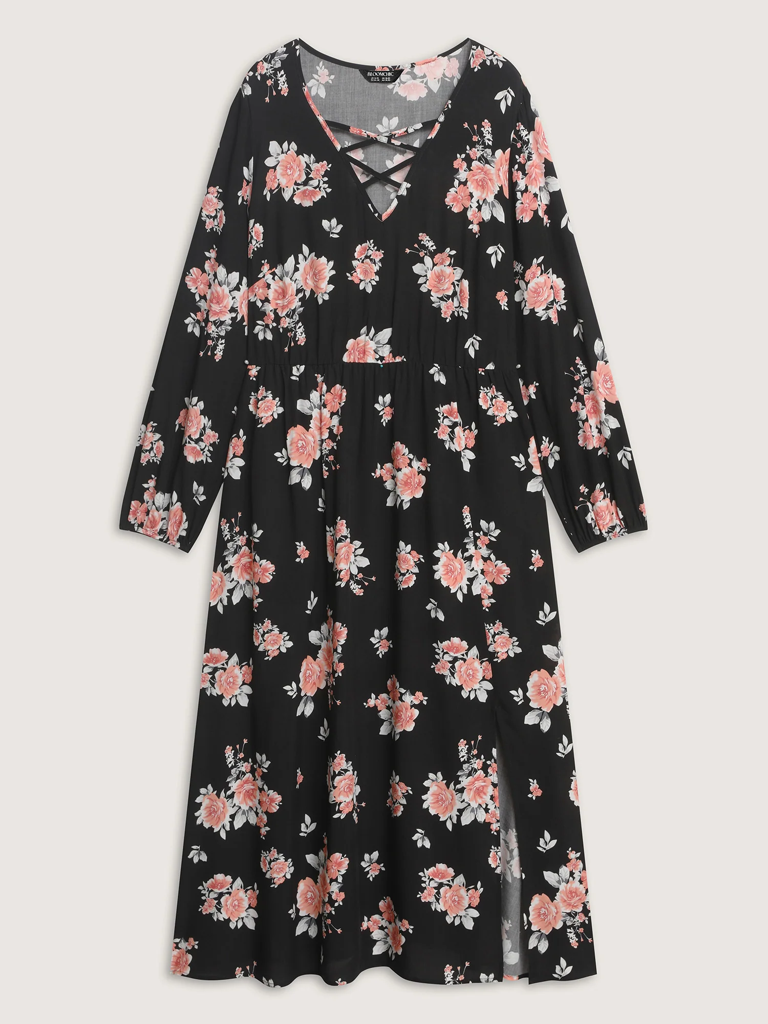 Floral Print Cut-Out Neck Slit Maxi Dress