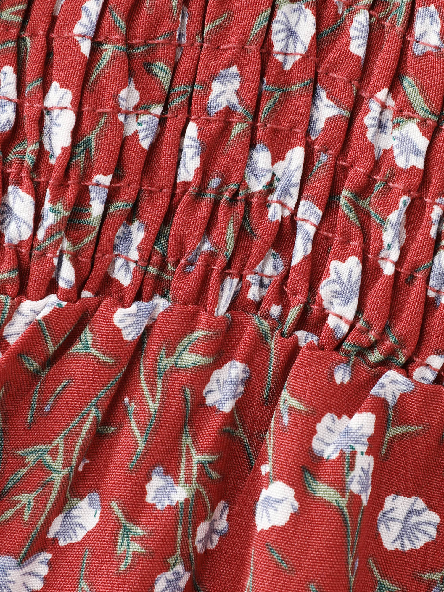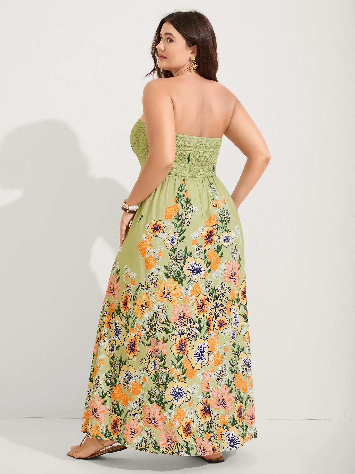 Shirred Off-Sleeve Floral Print Maxi Dress