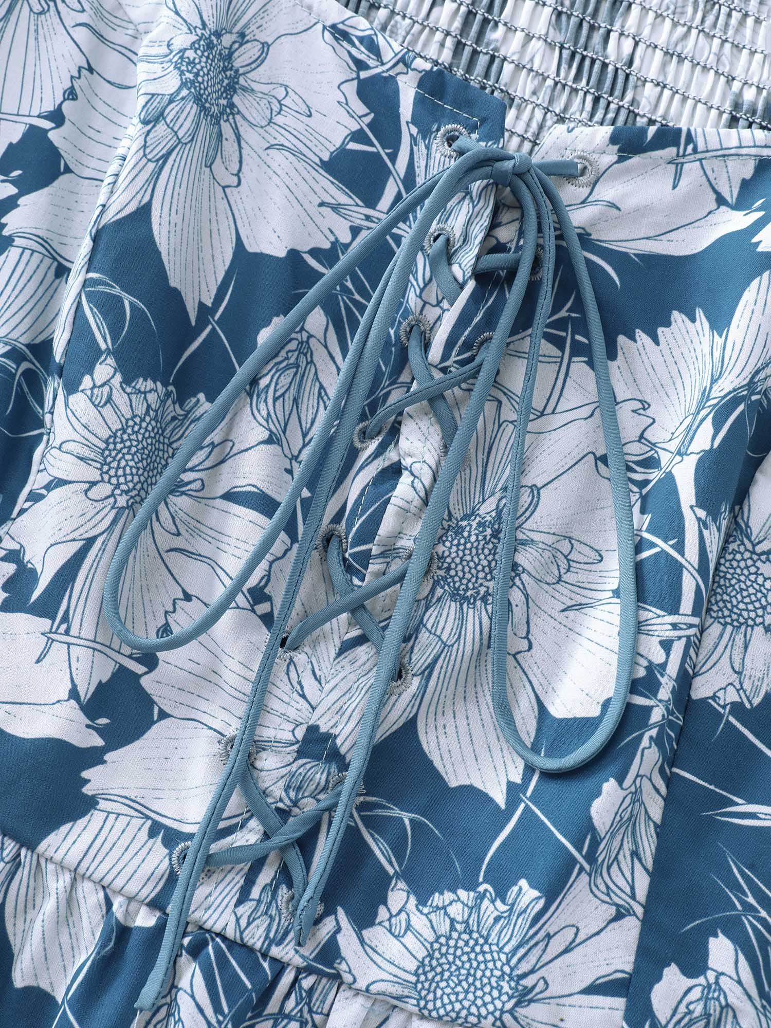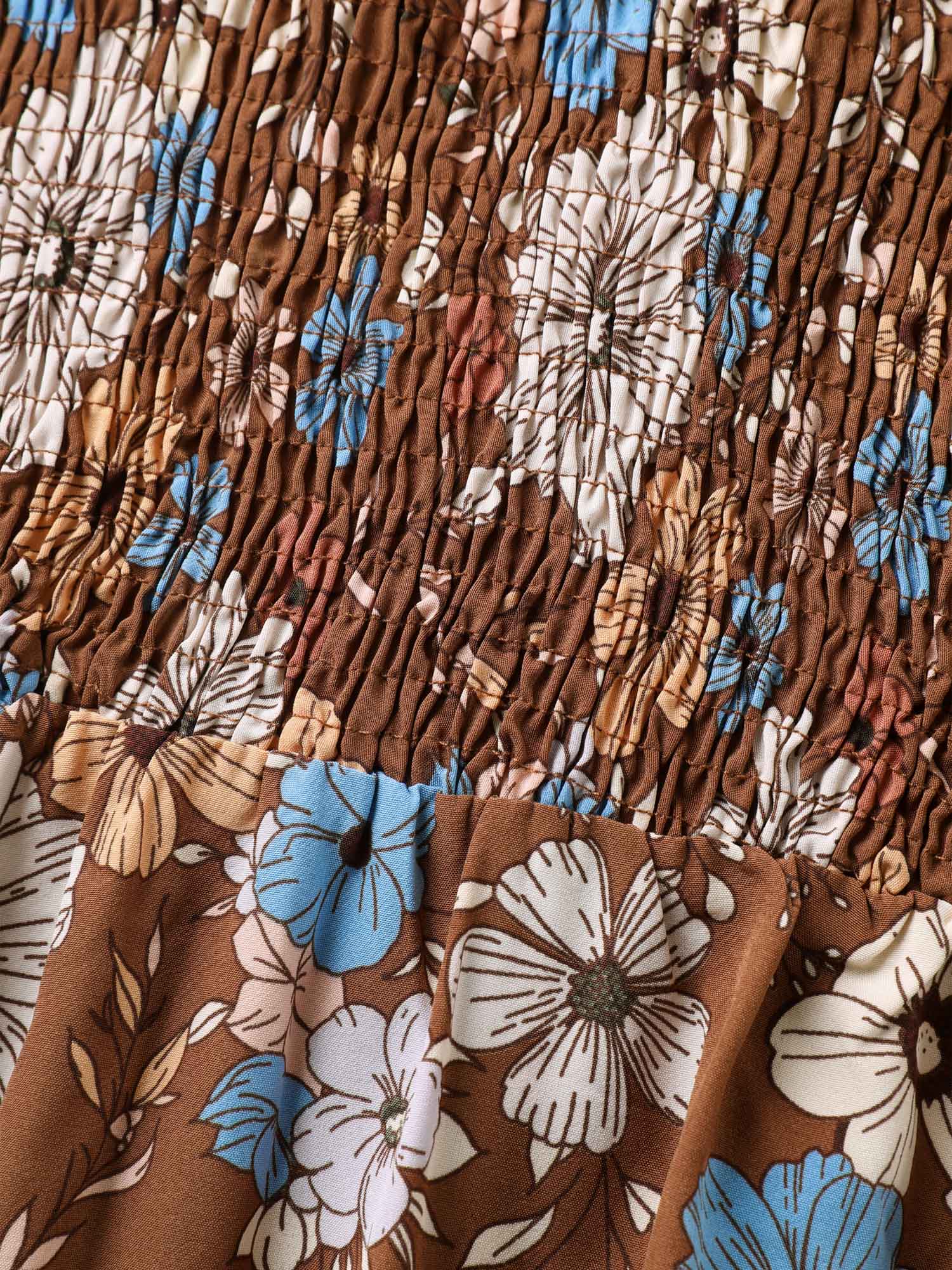 Smocked Waist Floral Ties Tiered Maxi Dress
