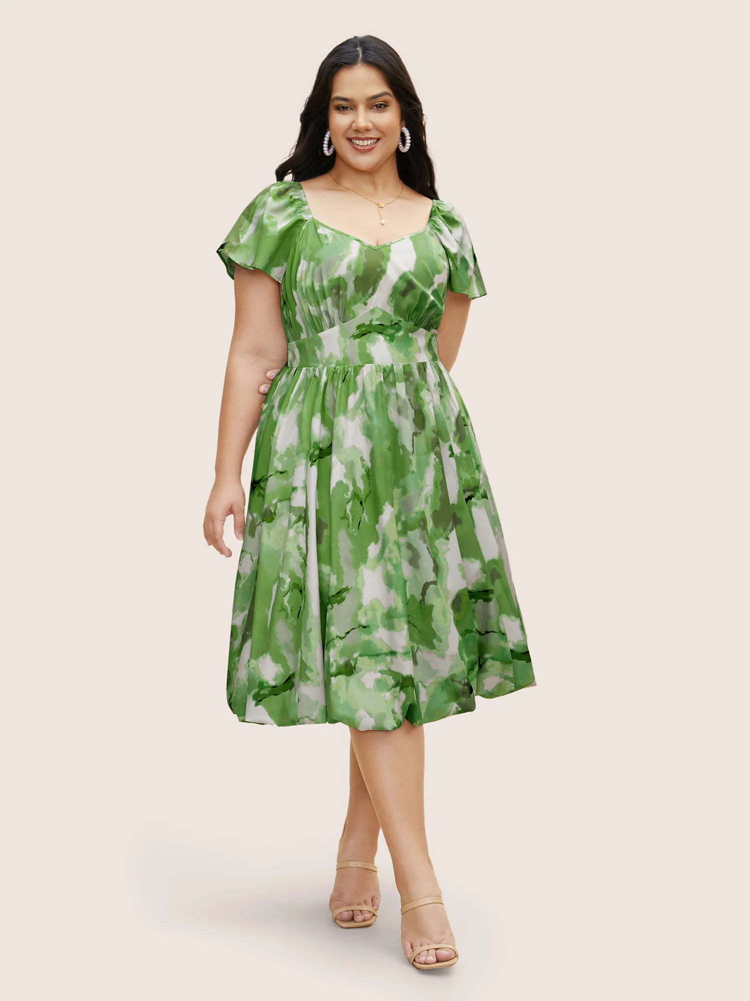 Rayon Garden Fresh Ruffled Sleeve Midi Dress
