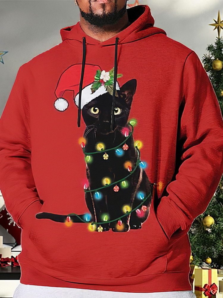 Christmas Kitten Lantern Print Hoodie