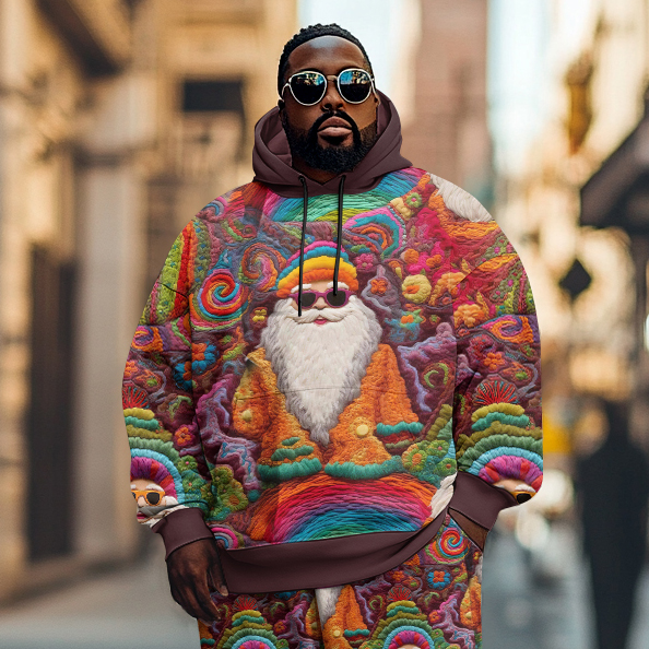 Men's Plus Size Christmas Santa Claus Graphic Casual Street Hoodie Trousers Two-Piece Set