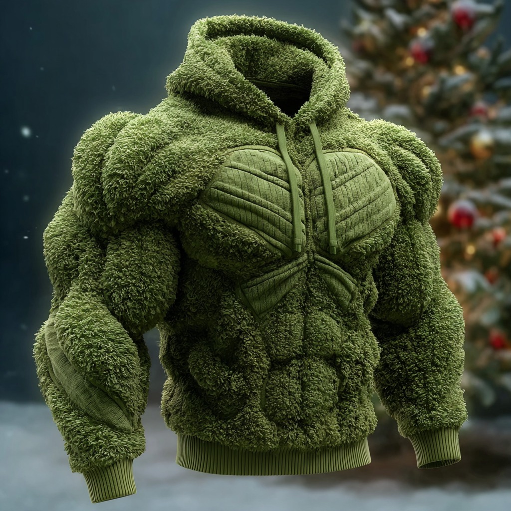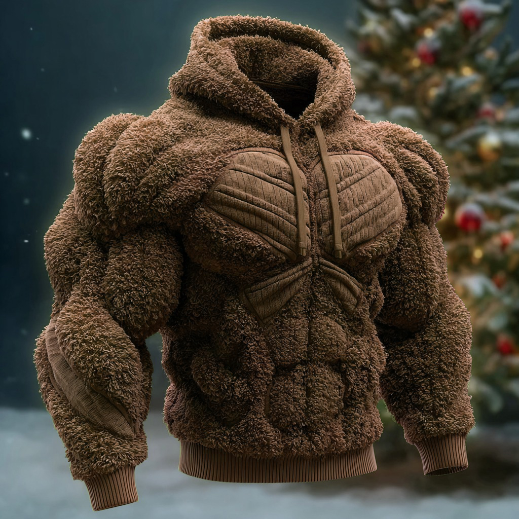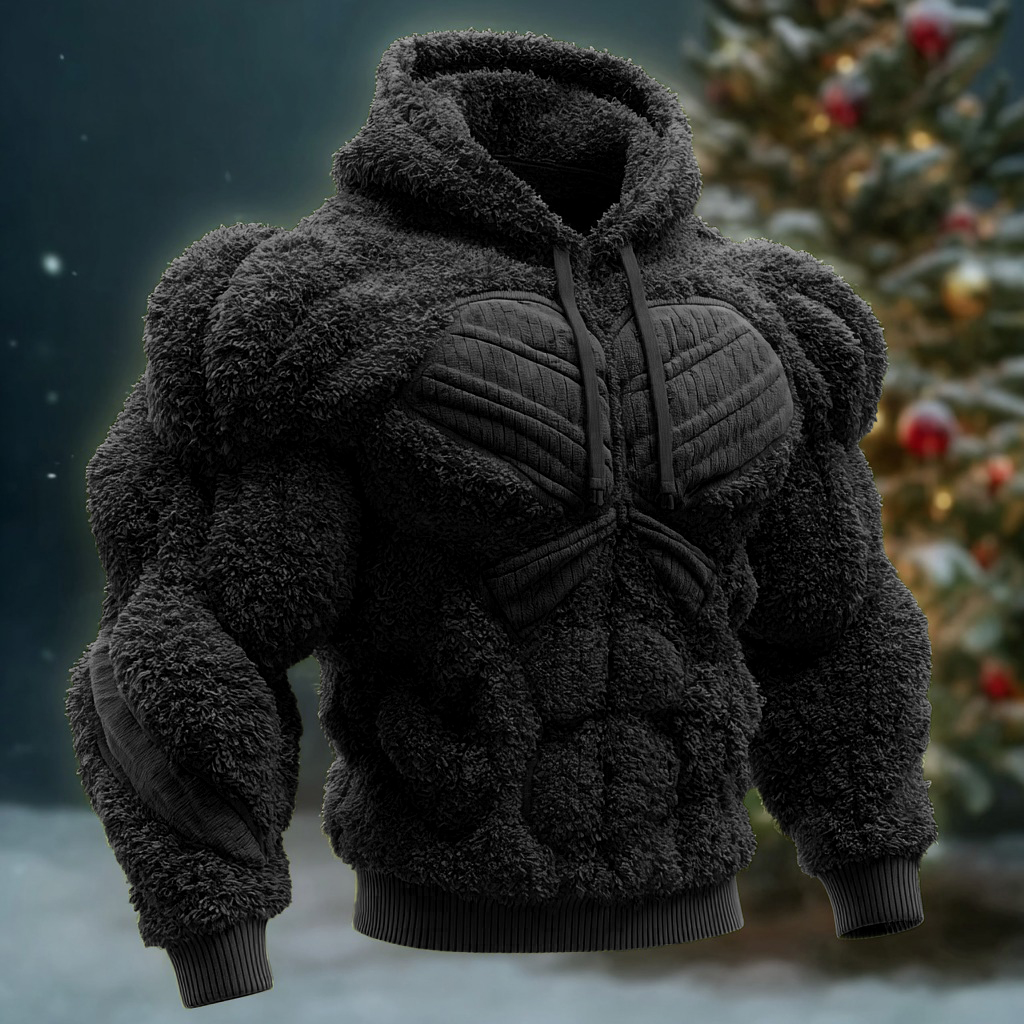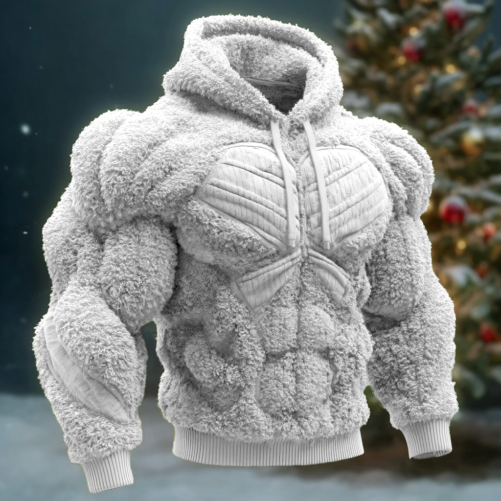 Muscle Line Art Plush Warm Crew Neck Pullover