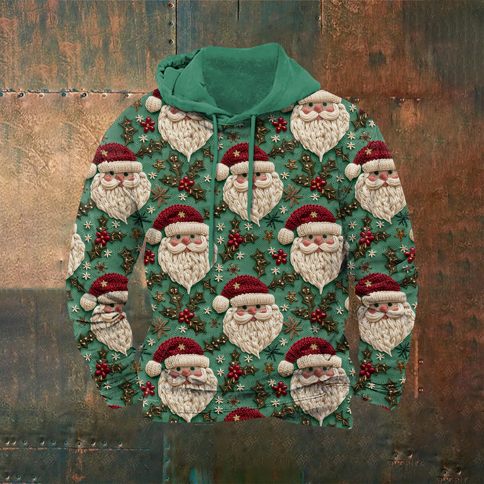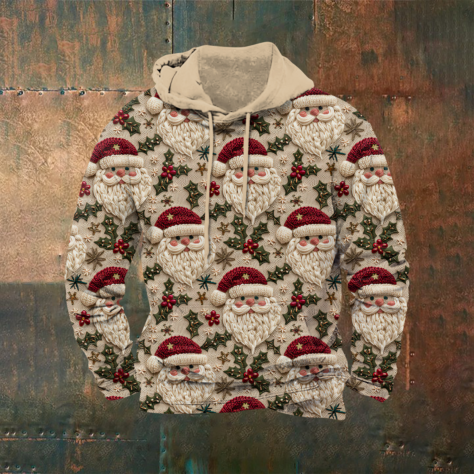 Men's Retro Christmas Santa Claus Printed Hoodie