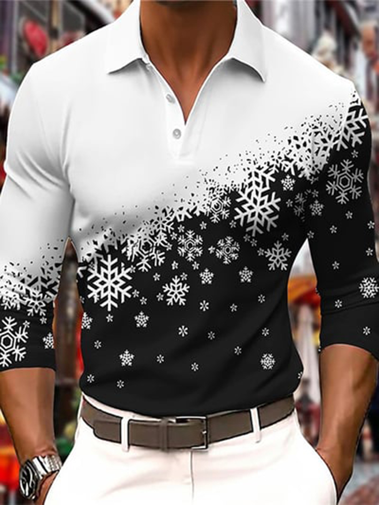 Men's Casual Christmas Printed Long Sleeve Polo Shirt