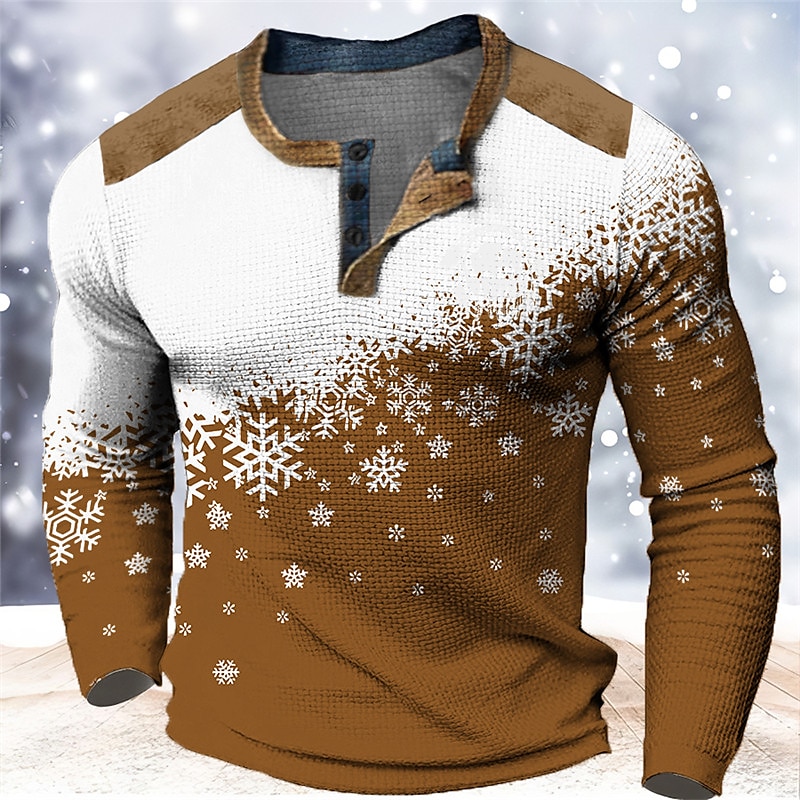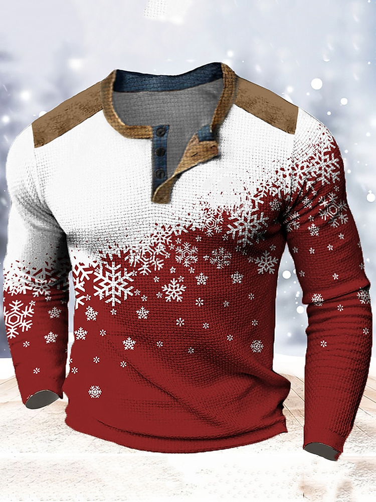 Men's Graphic Color Block Snowflake Print Long Sleeve T-Shirt