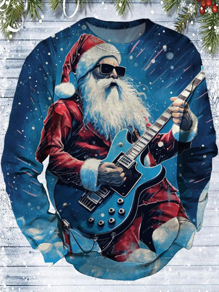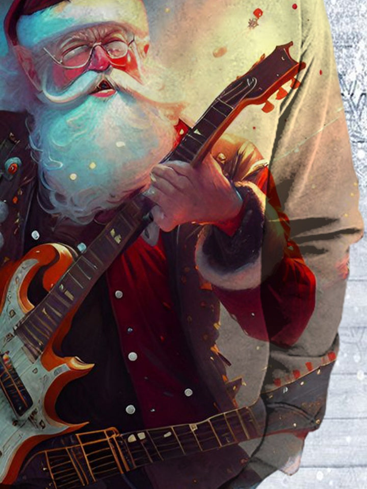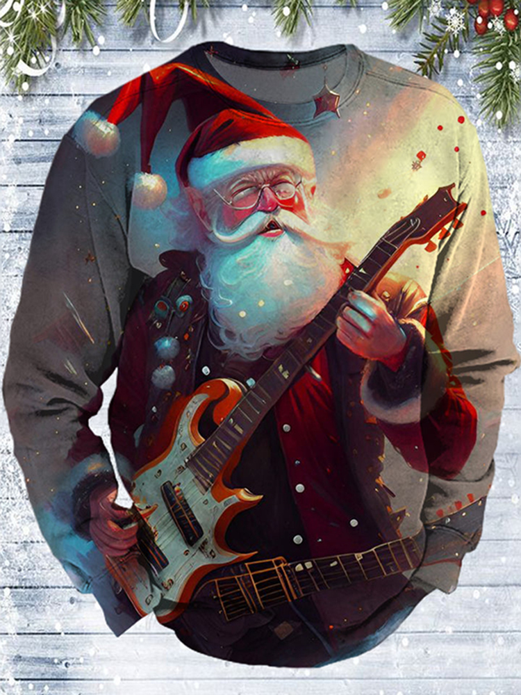 Santa Claus Playing Guitar Print Crew Neck Sweatshirt