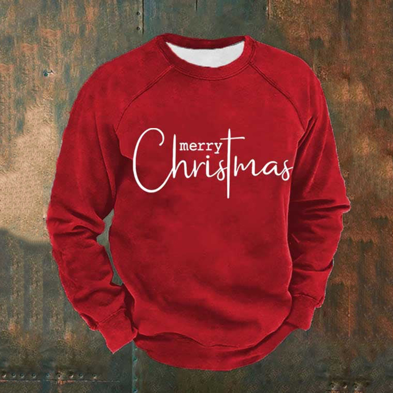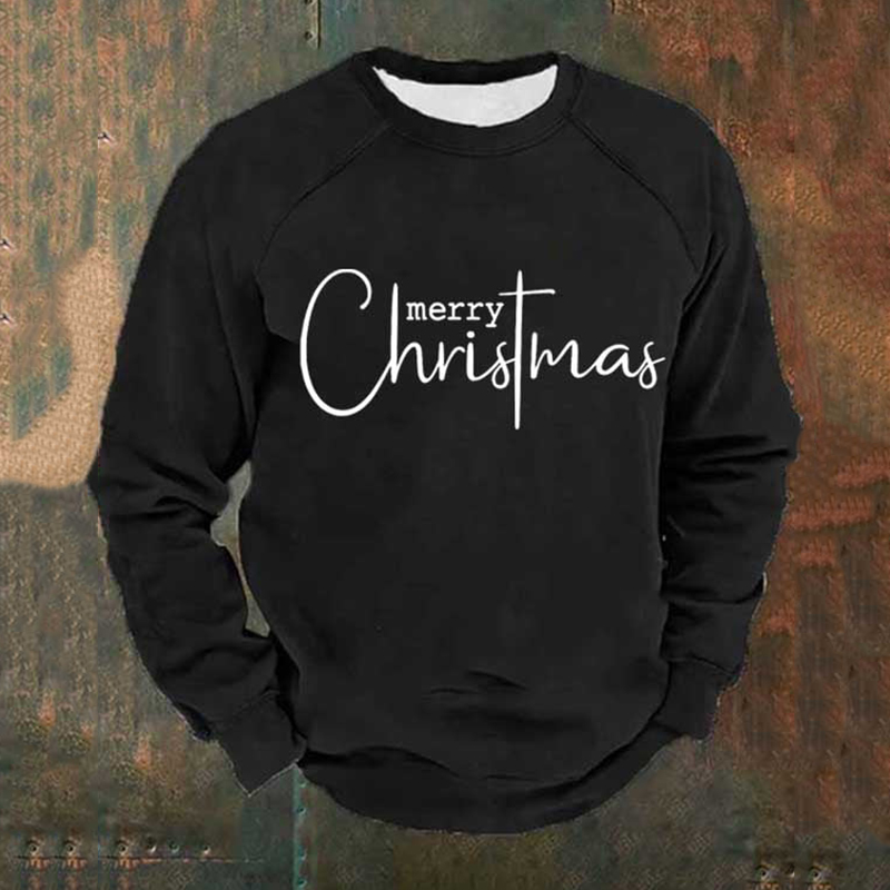 Man's Merry Christmas Print Casual Crew Neck Sweatershirt